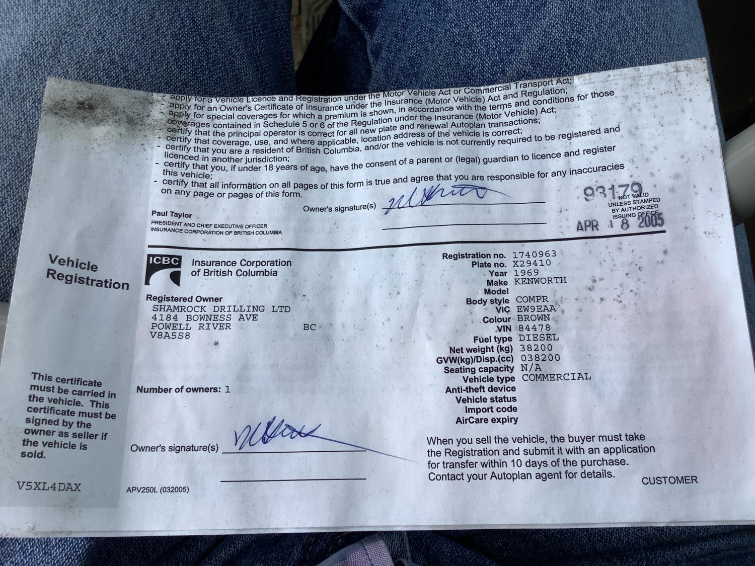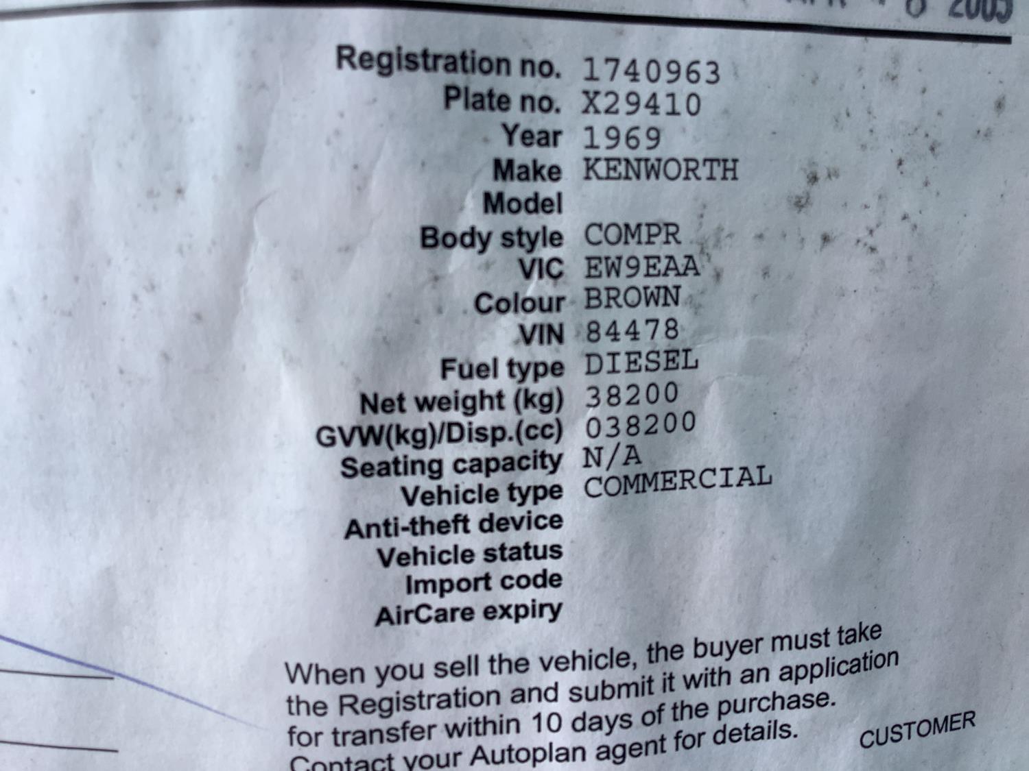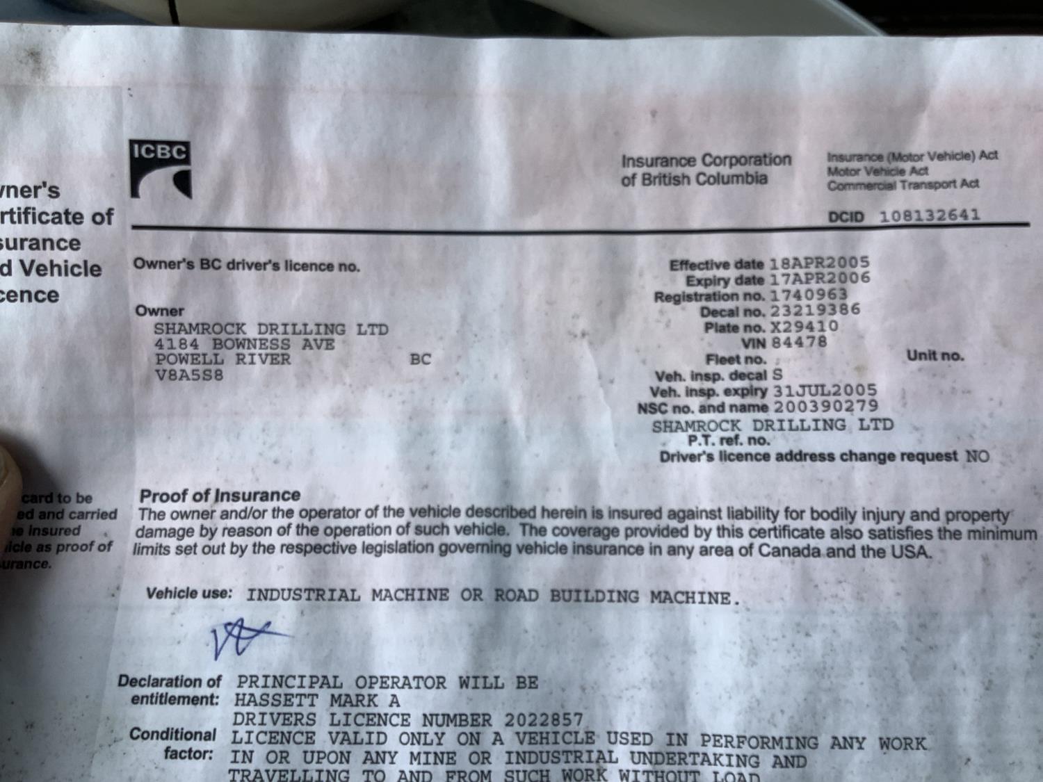 Copy of registration on hand. - Location: