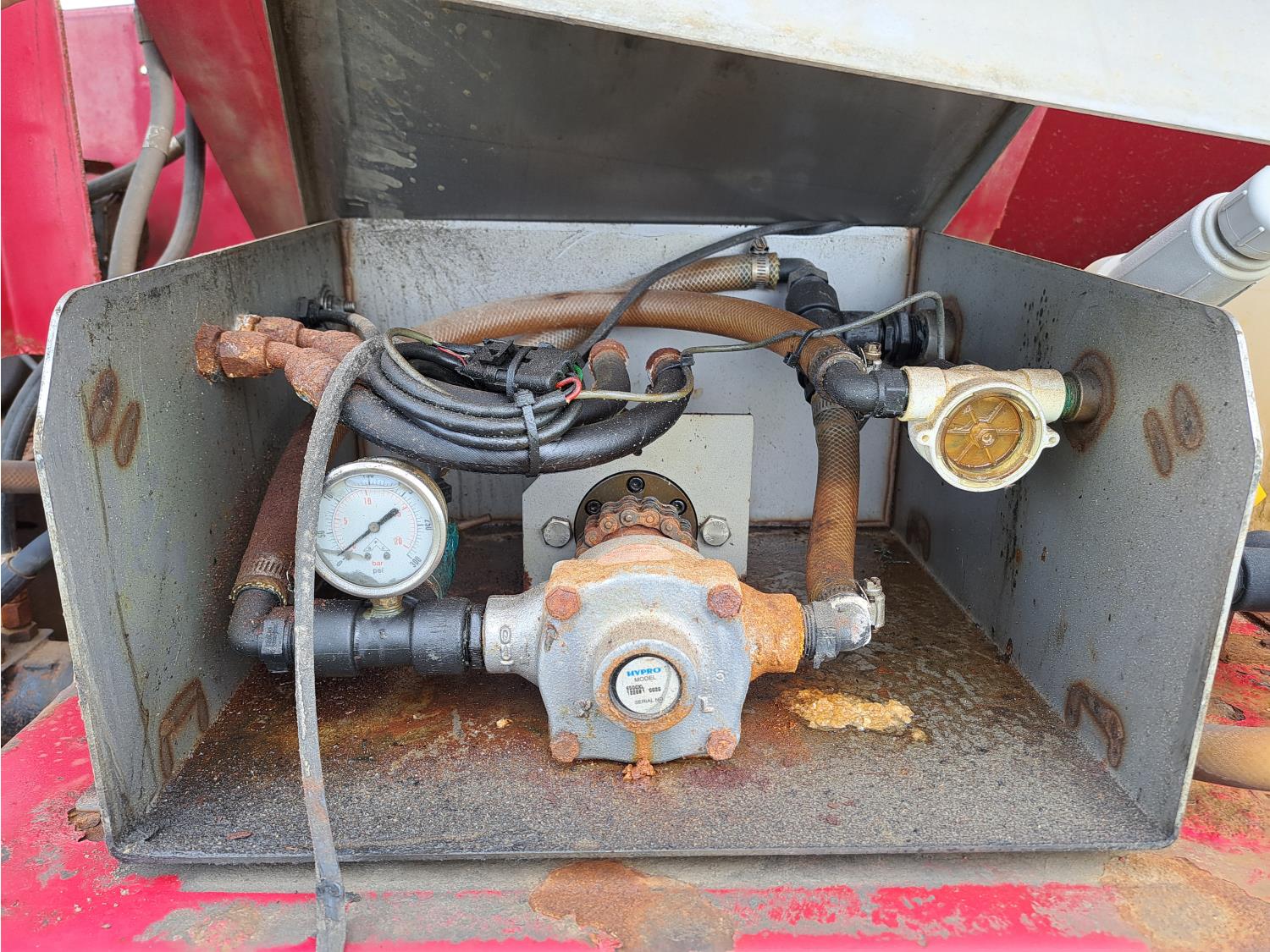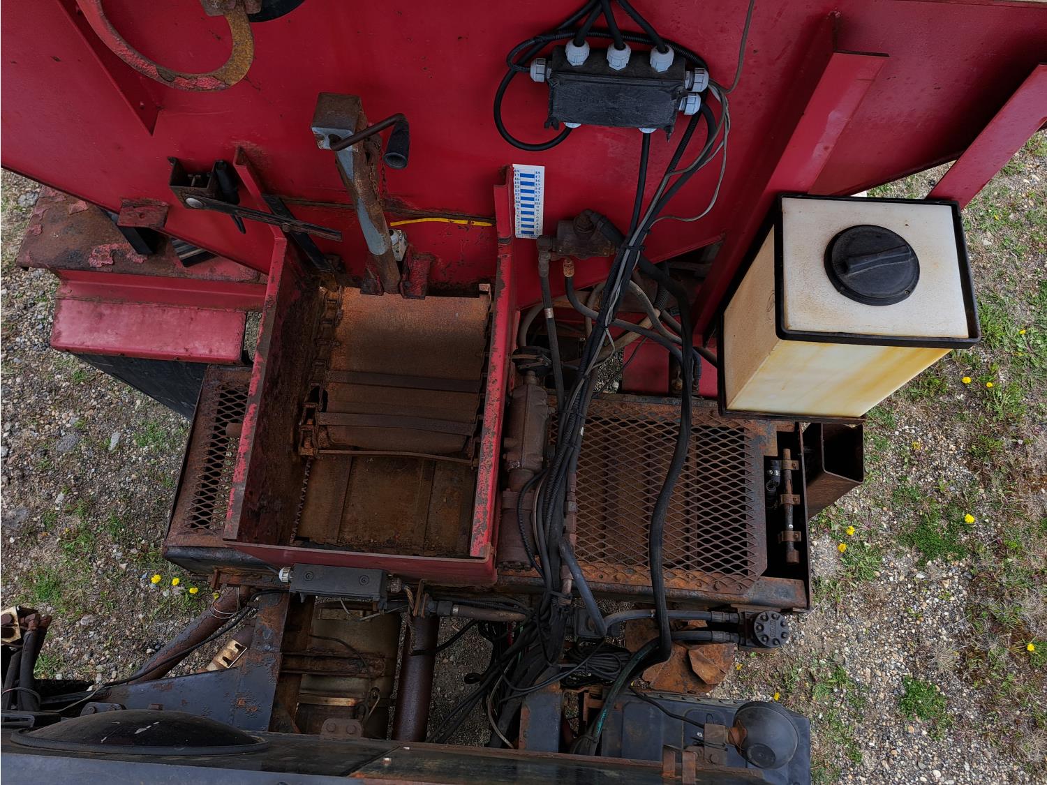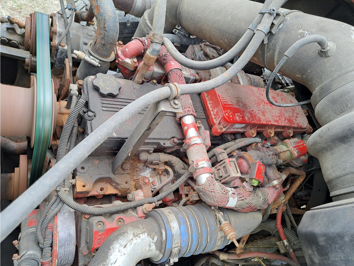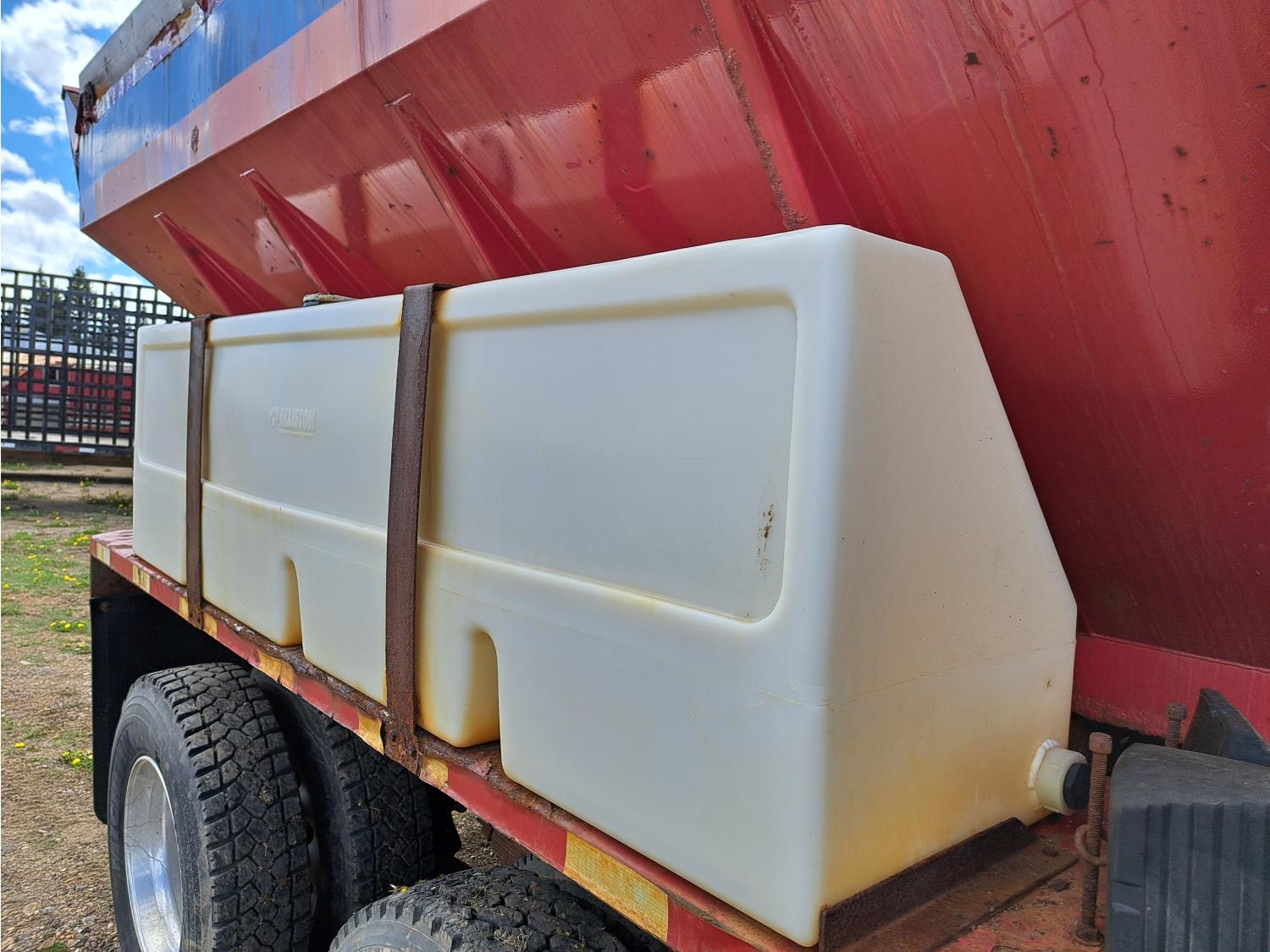 Cummins ISC300 8.3 L 6 cylinder 300 HP diesel engine, engine brake, Eaton Fuller RT8908LL 18 speed manual transmission, A/C, cruise control, air ride driver seat, hydraulic wet kit, beacons, Alliston 12ft x 8ft sloped bottom sand box, side mount sand spreader, poly side tanks with pump, spring suspension, 22,000 lb front axle, 40,000 lb rear axles, 3 way diff locks, 202 inch WB, all aluminum wheels, 425/65R22.5 front tires, 11R22.5 rear tires