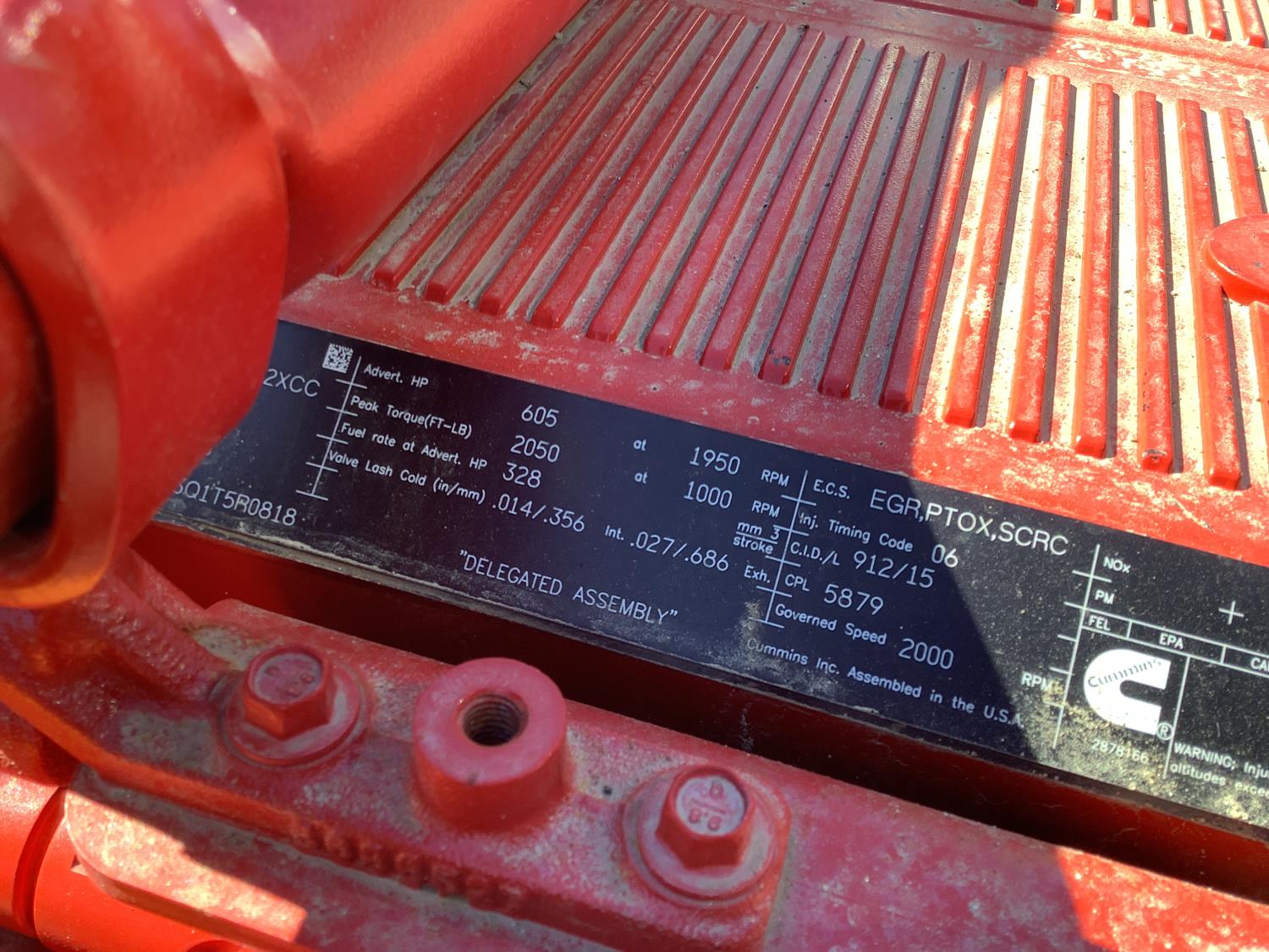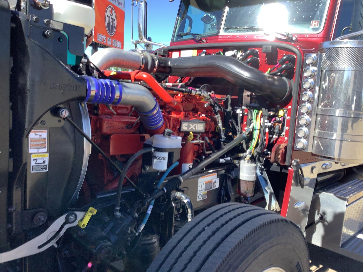Cummins X15 605 HP engine, engine brake, Eaton 18-SP ULTRA SHIFT PLUS 18 speed auto shift transmission, 3.91 gear ratio, fridge, A/C, leather interior, air ride seats, 58" low roof sleeper with walk-in platinum interior, air ride cab, air ride suspension, 12,500 lb front axle, full lockers, 244 inch WB, super 40,000lb rear axles, disc brakes, dual stacks and air breathers, truck is only 9 months old. Comes with factory 5 year or 200,000 km warranty., all aluminum wheels, 11R24.5 front tires