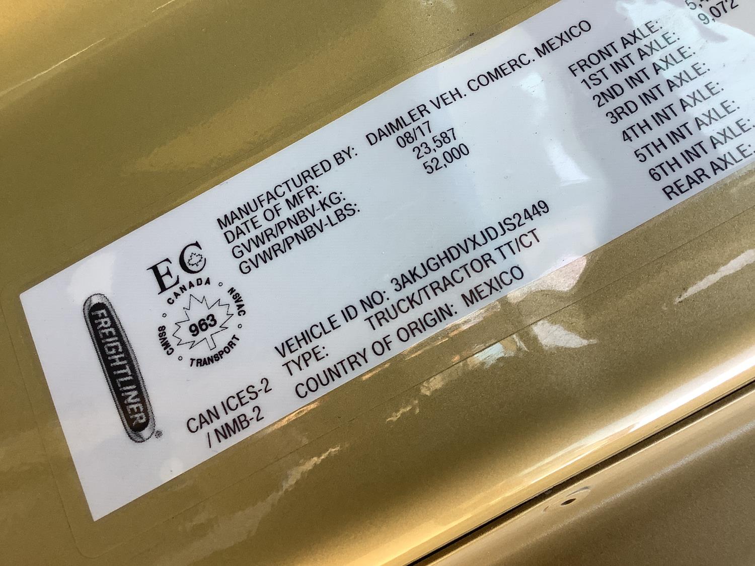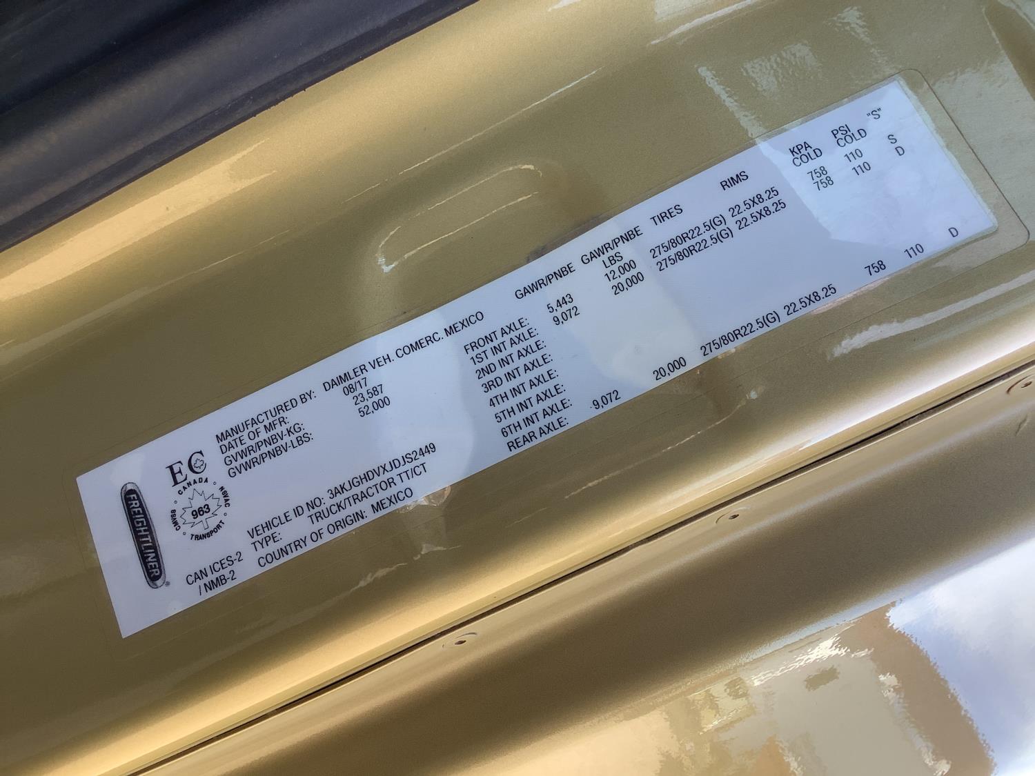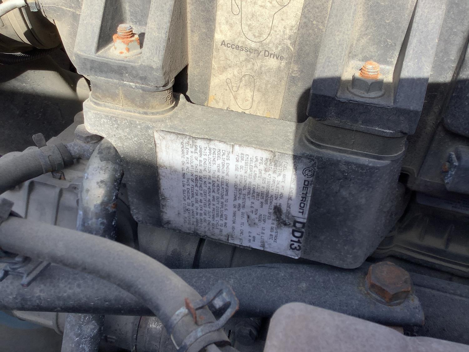 Detroit DD13 12.8 L 6 cylinder 525 HP engine, DEF required, 12 speed auto shift transmission, integral double bunk, sleeper, fridge, air ride seats, power invertor, air ride suspension, 3 way diff locks, all aluminum wheels, 11R22.5 tires