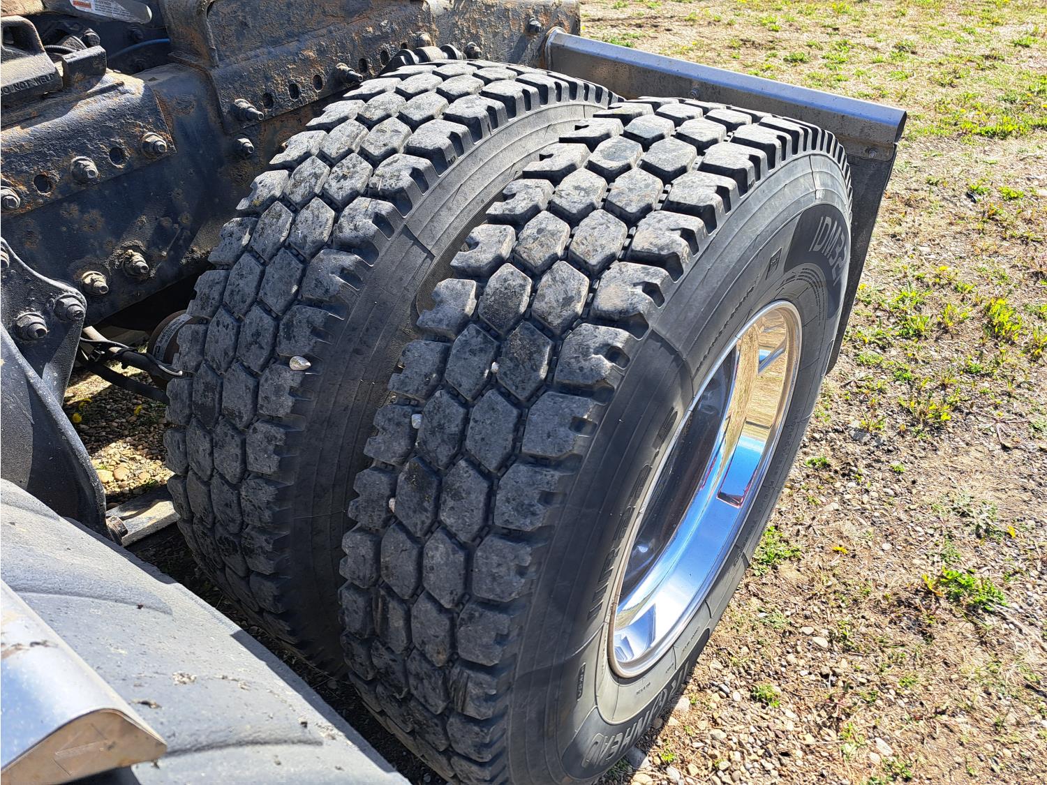 Detroit DD15 14.8 L 6 cylinder 505 HP diesel engine, DEF deleted, engine heater, engine brake, emissions deleted, Detroit DT12 12 speed auto shift transmission, HUX power unit will require alternator, mid rise 84 inch sleeper, fridge, A/C, cruise control, air ride seats, radio, CB radio, stereo, Herd aluminum moose bumper, Airliner air ride suspension, 13,300 lb front axle, 40,000 lb rear axles, full lockers, 3.31 ratio, 244 inch WB, tire chains, all aluminum wheels, 11R22.5 tires