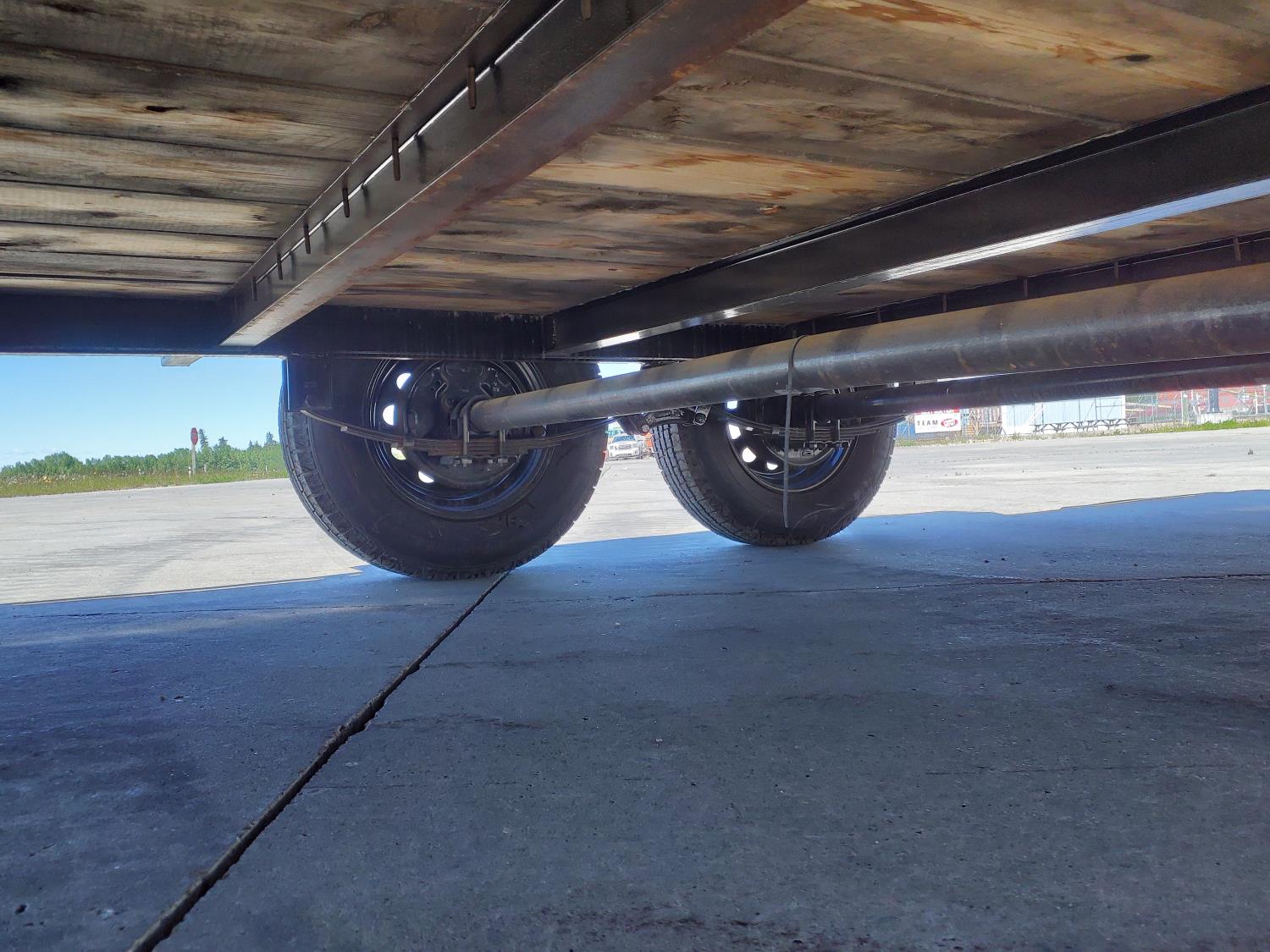 84 inch wide deck, wood deck, slide in ramps, spring suspension, ball hitch, rub rails, stake pockets, 3500 lb axles, 205/75R15 tires