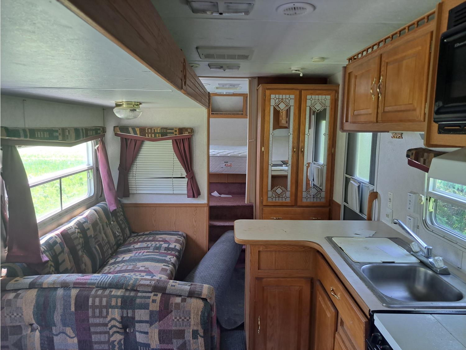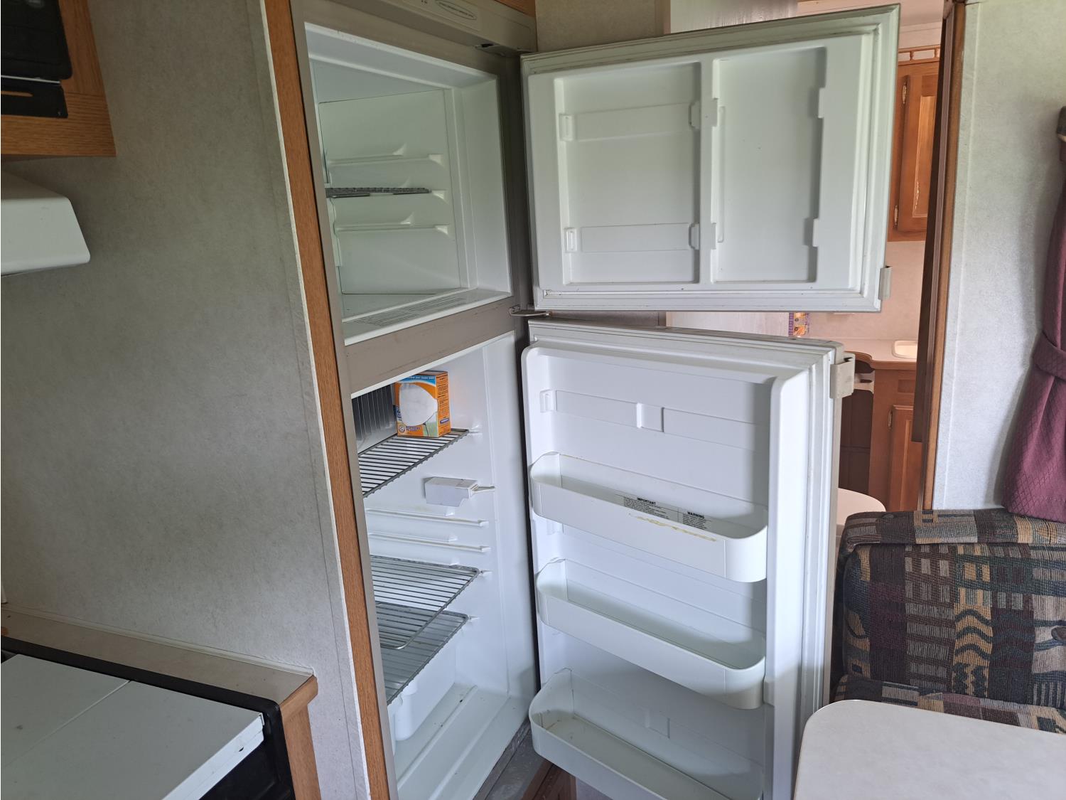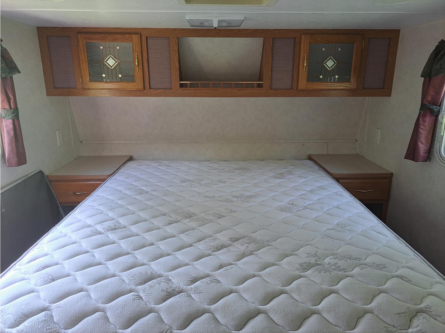 Sleeps 8, stove, fridge, microwave, full bath, master bedroom, bunk beds, 1 slide, manual awning, spring suspension, 225/75R15 tires