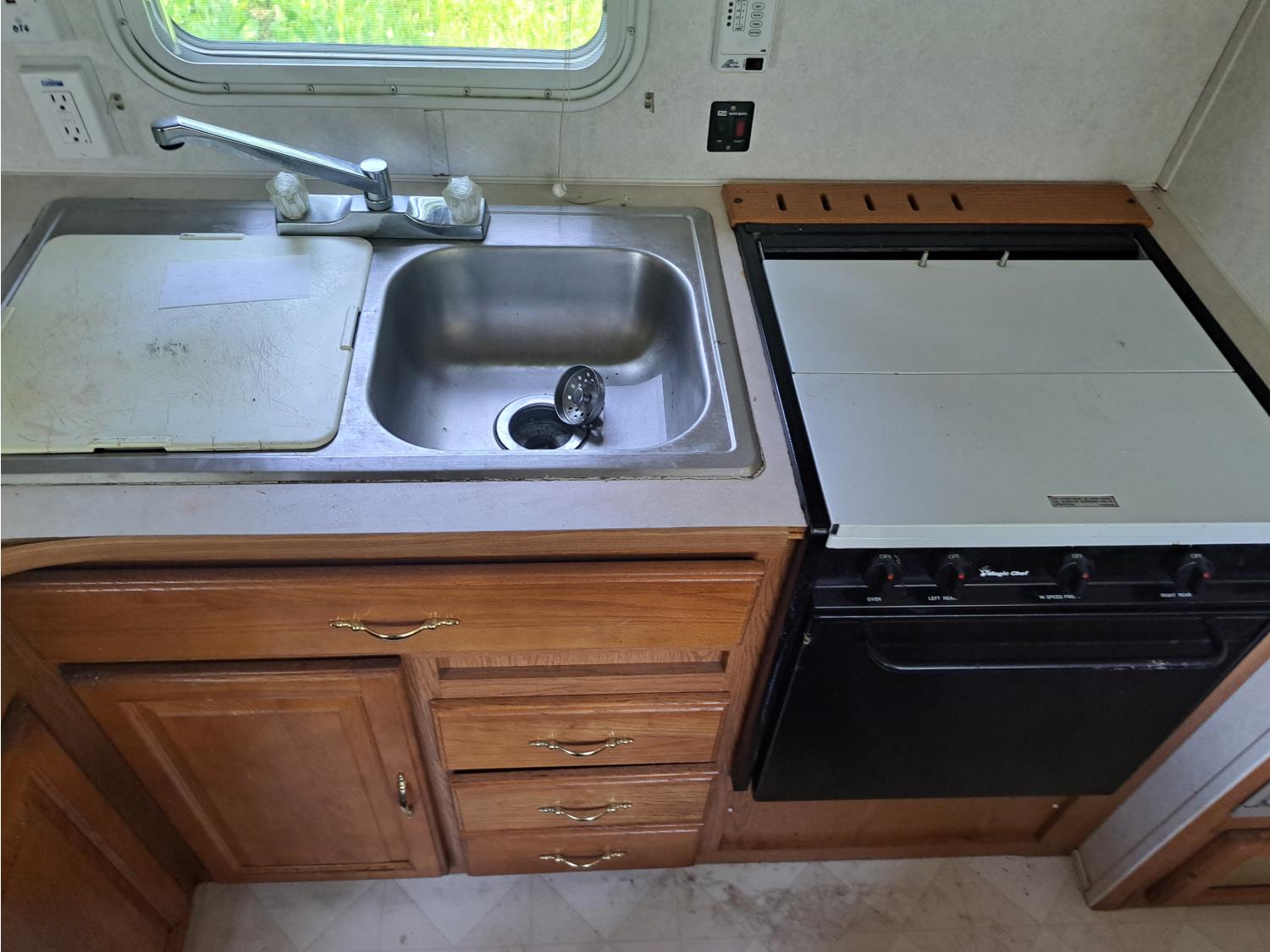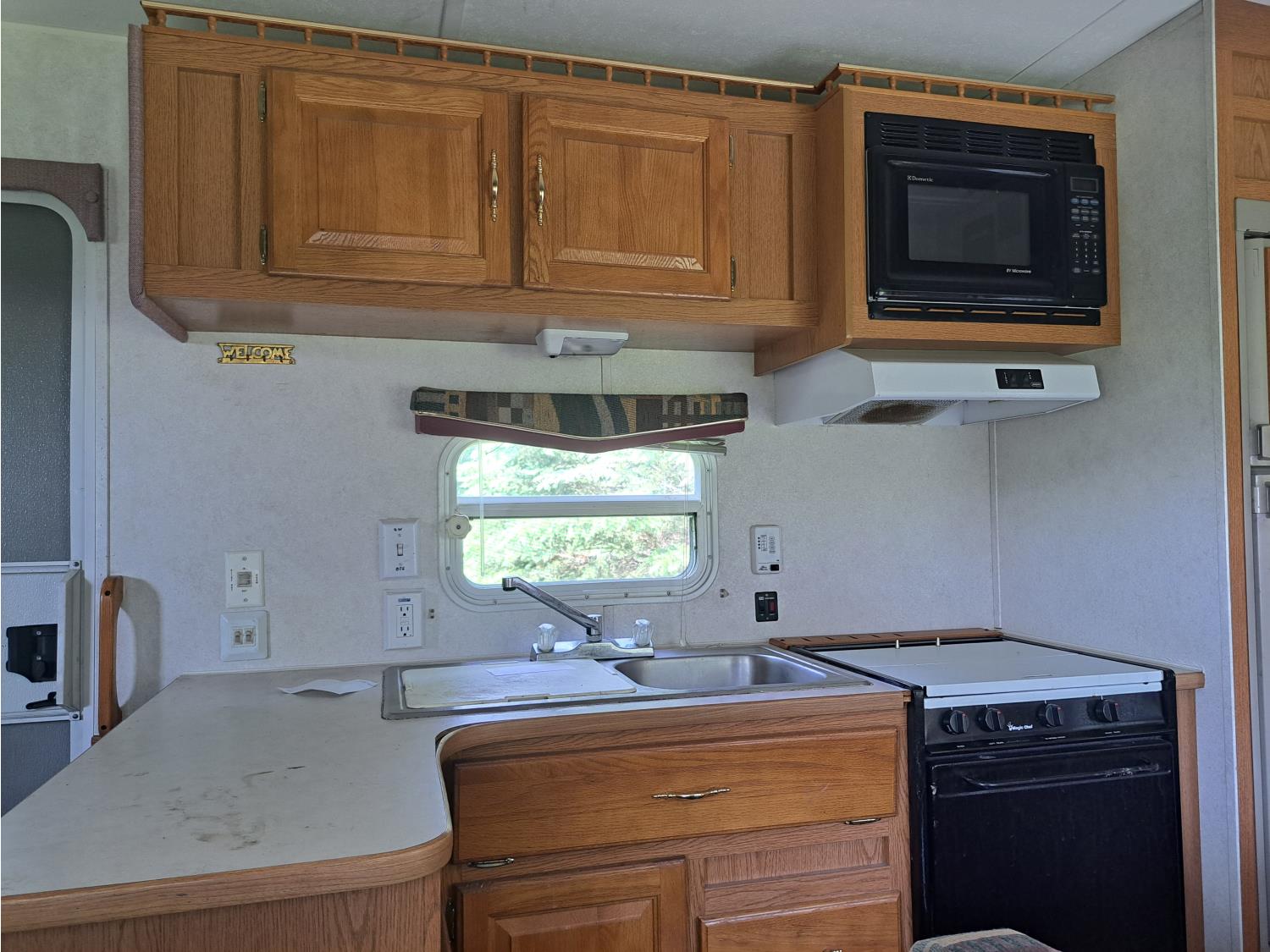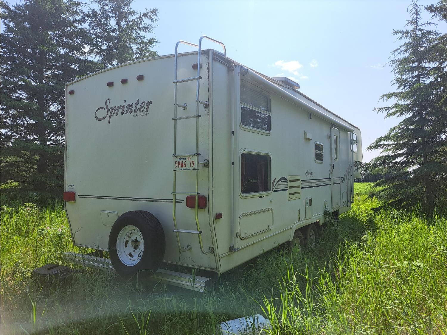 Sleeps 8, stove, fridge, microwave, full bath, master bedroom, bunk beds, 1 slide, manual awning, spring suspension, 225/75R15 tires