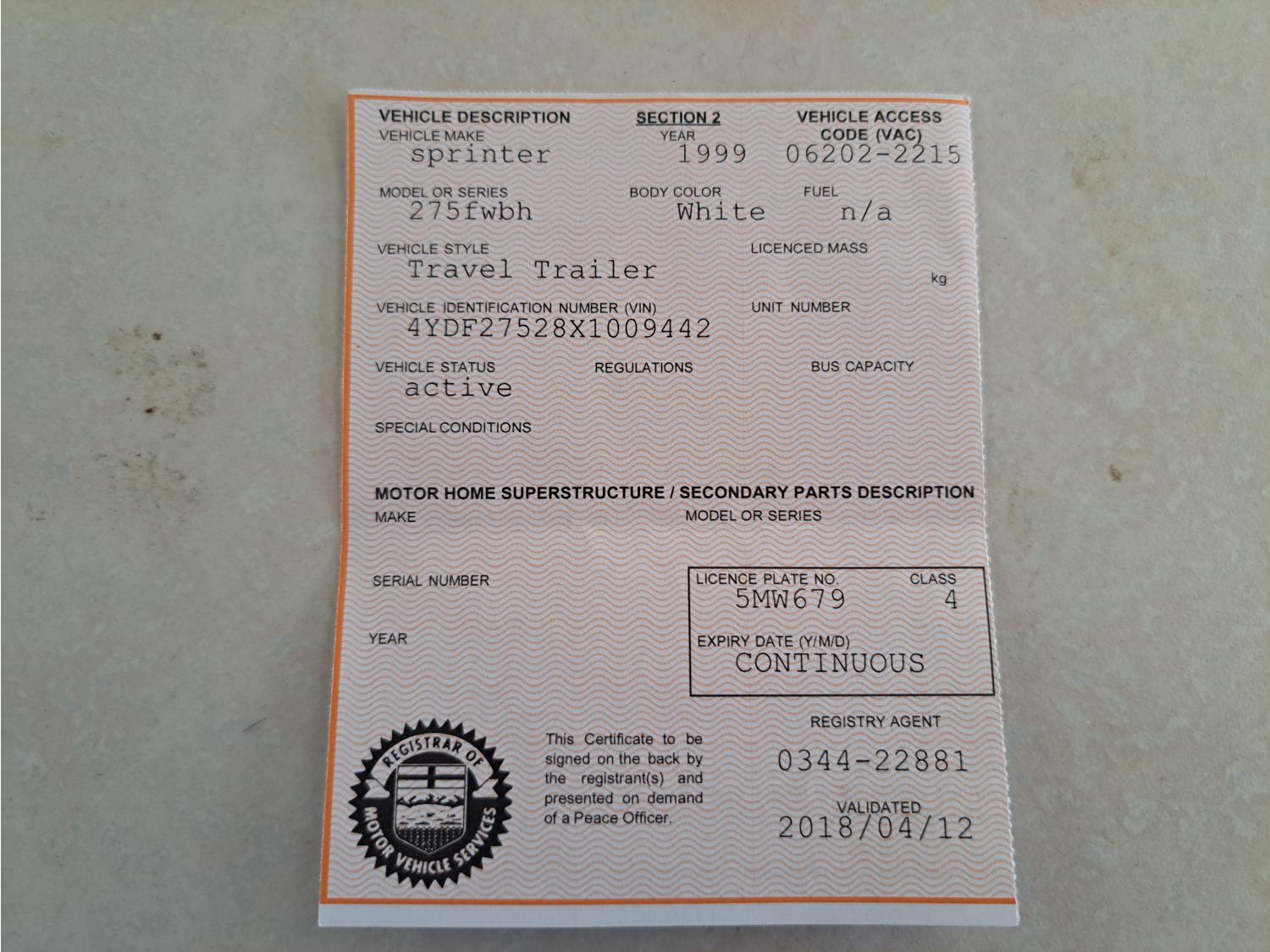 - Copy of registration on hand.