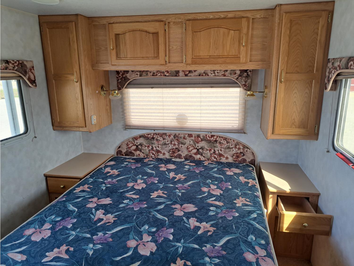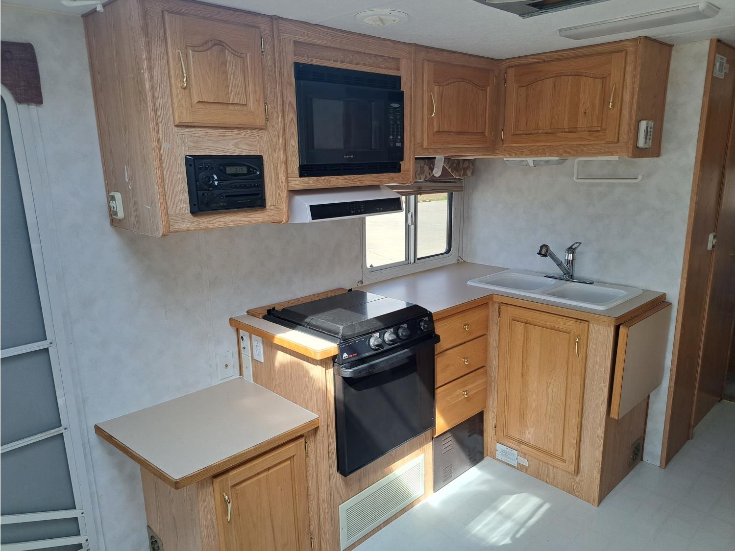 Sleeps 5, stove, fridge, microwave, full bath, master bedroom, 1 slide, manual awning, torsion suspension, 225/75R15 tires