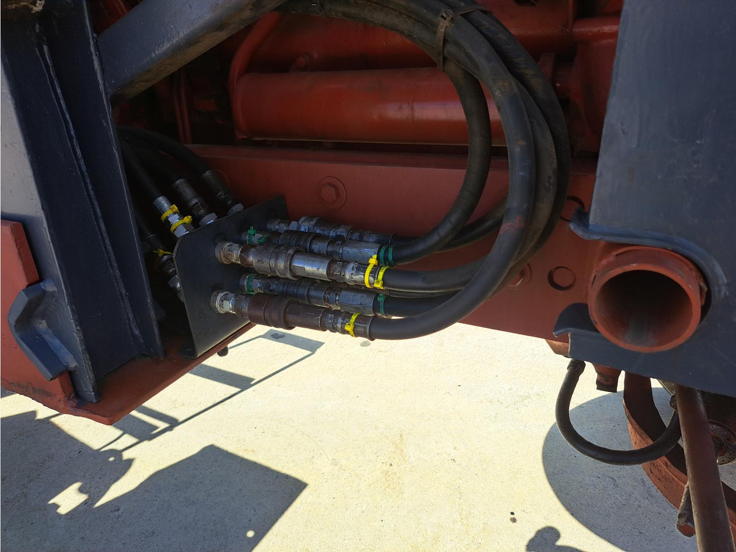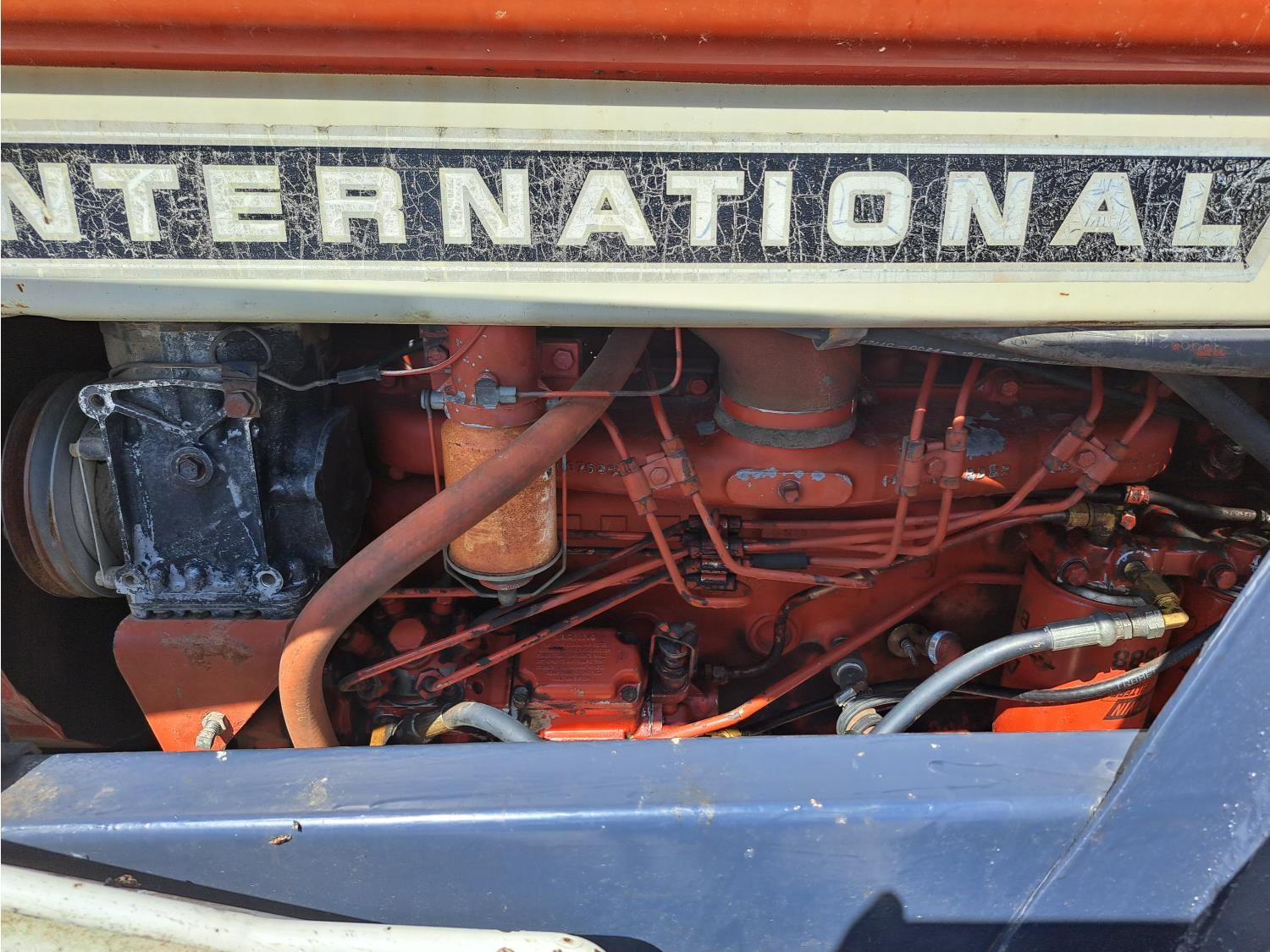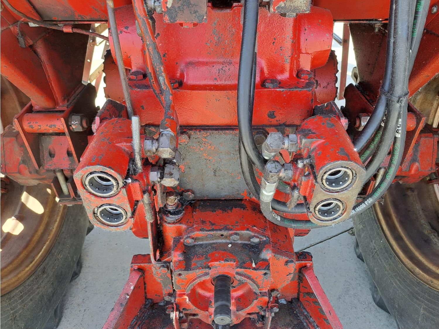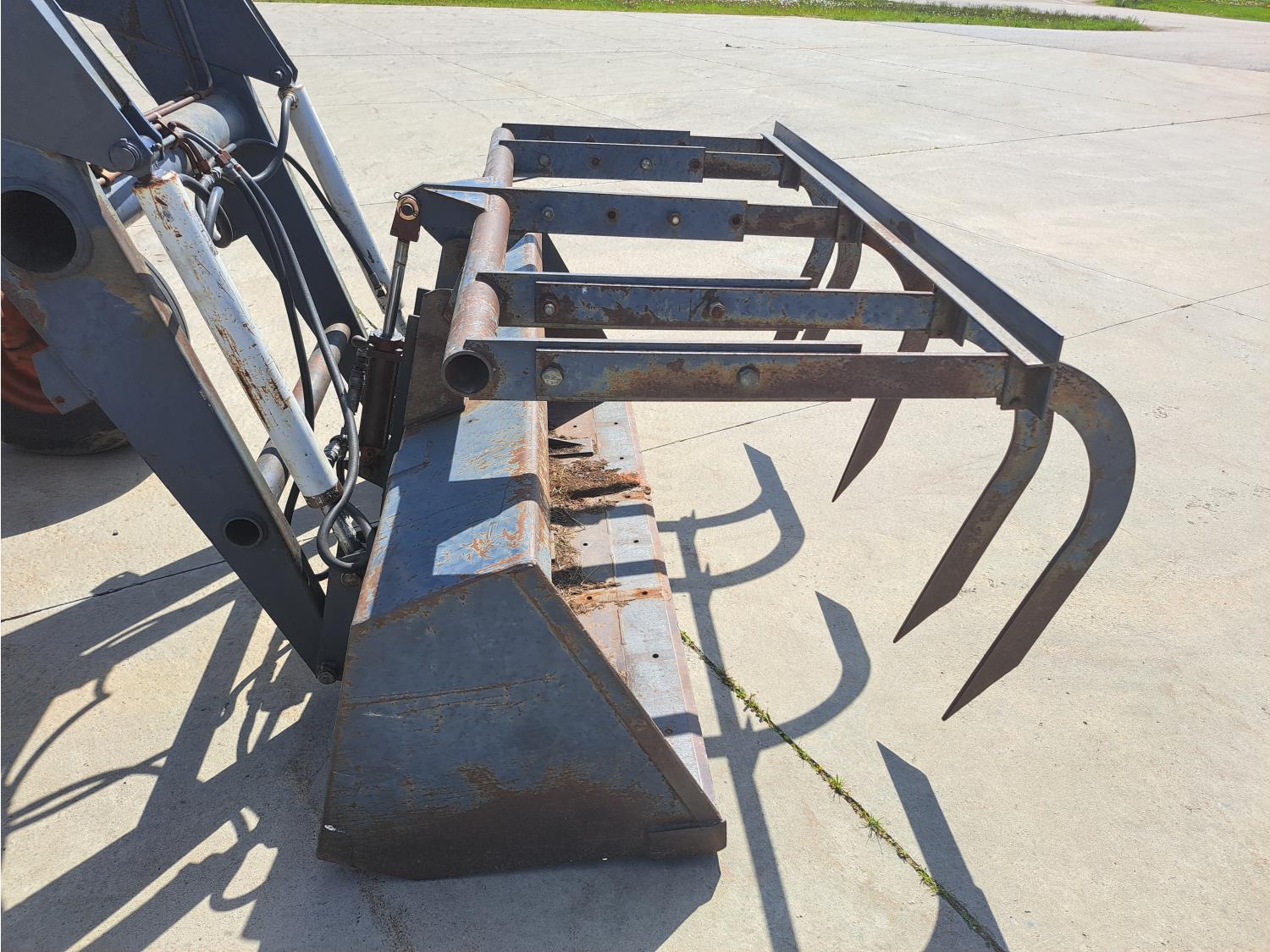 Allied 784 loader, 84 inch bucket, grapple, International HARVESTER 5.9 L 6 cylinder 88 HP, diesel engine, 85 PTO HP, 8 speed partial power shift transmission, cab, 540/1000 PTO, 2 rear hydraulic outlets, 12.5L-16 front tires, 18.4/15-34 rear tires
