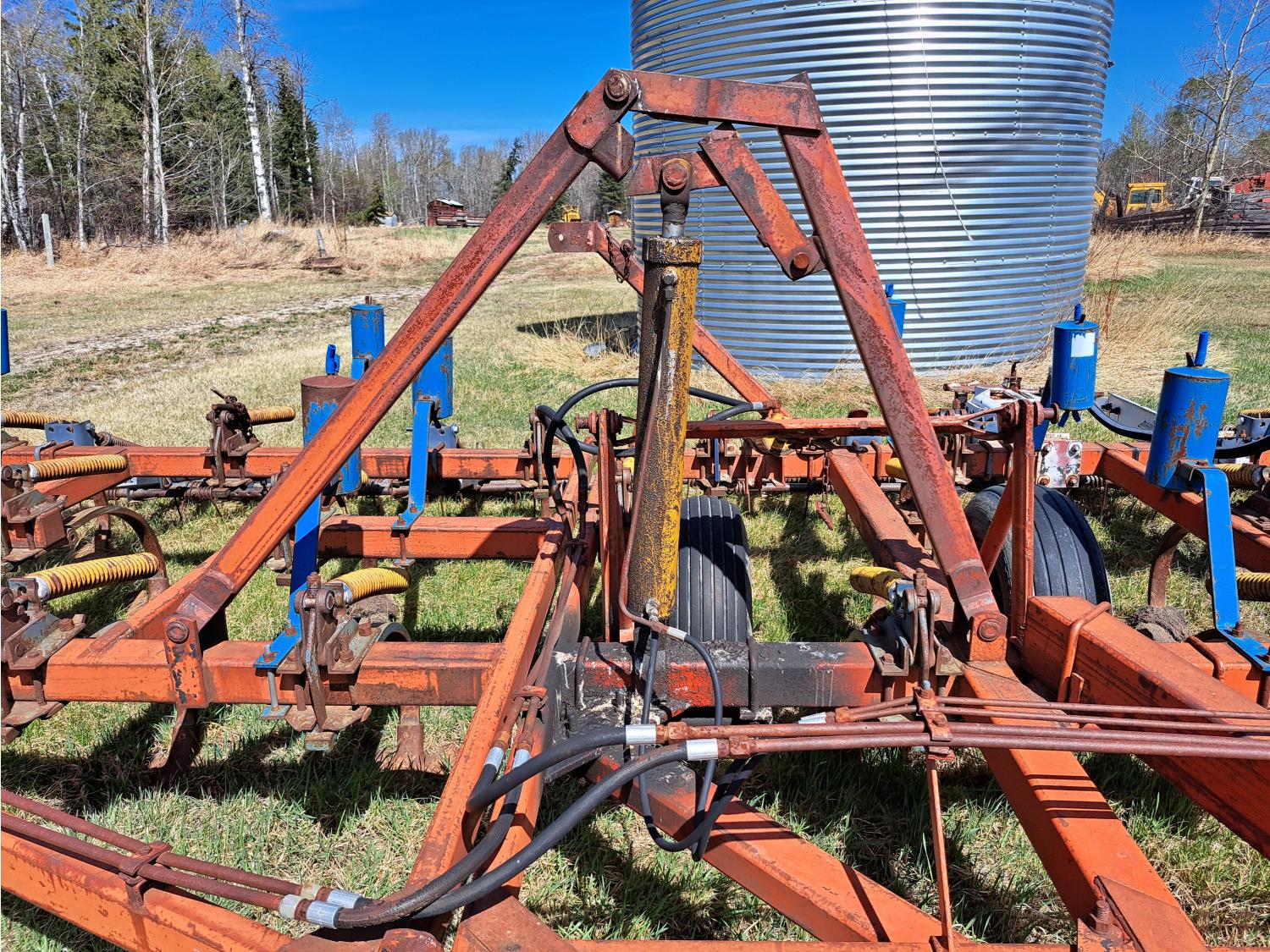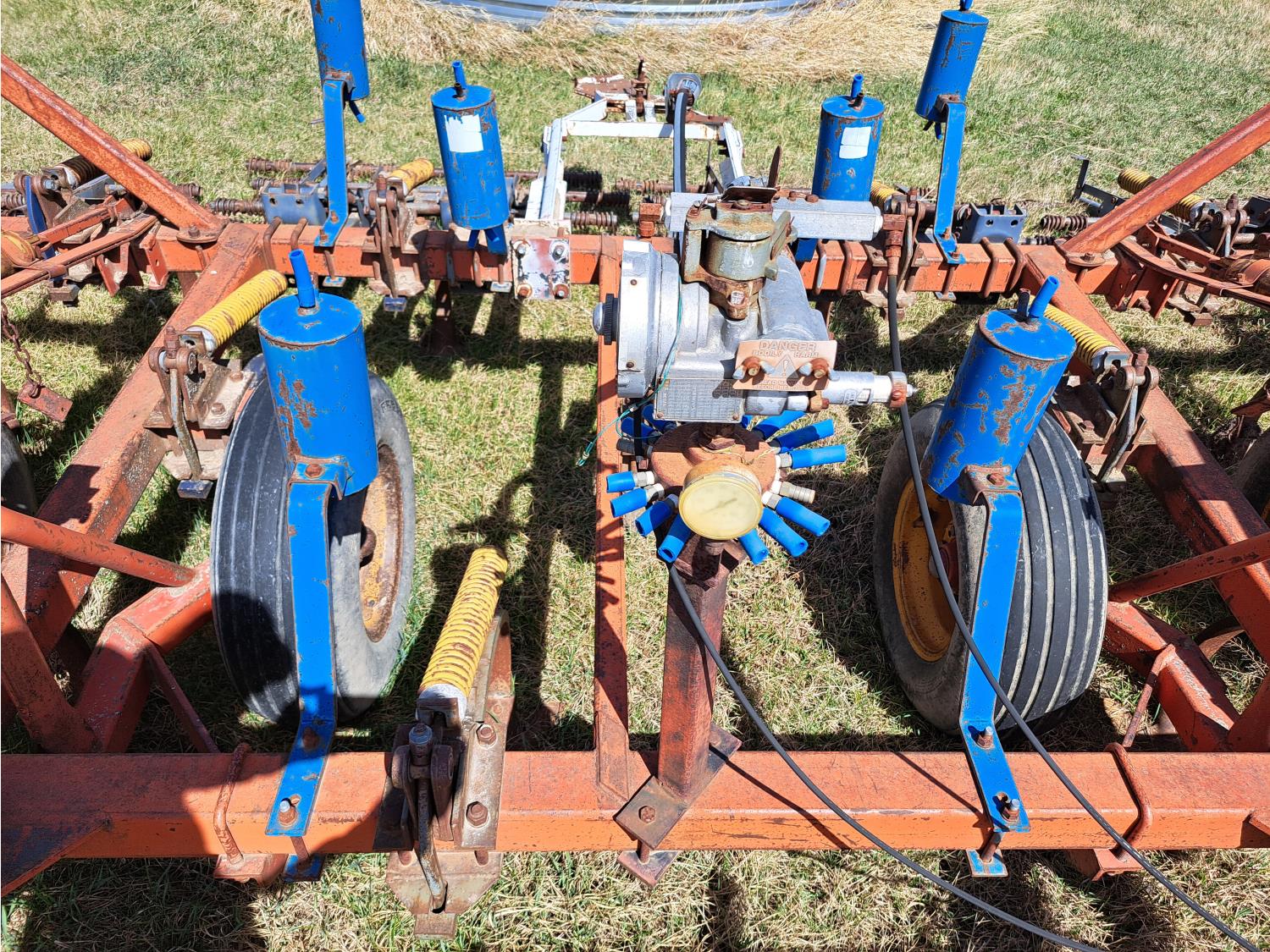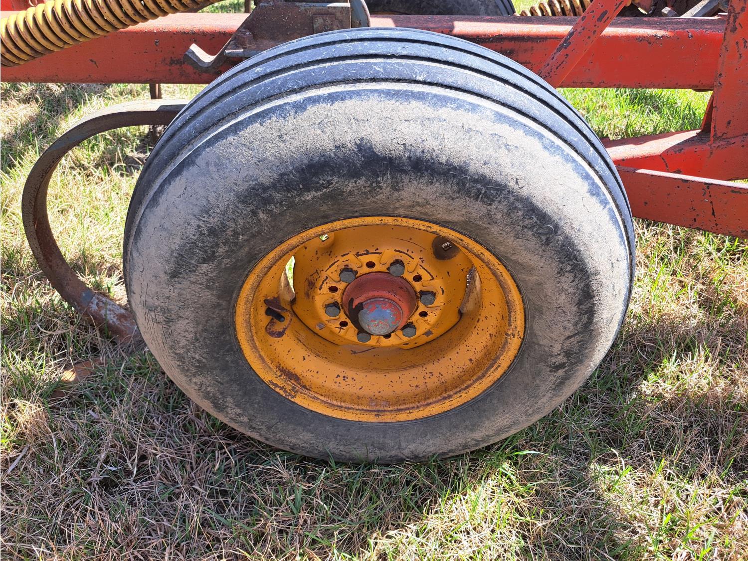 12 inch spacing, 12 inch sweeps, spring tooth harrows, rear hitch, 9.5L-15 tires