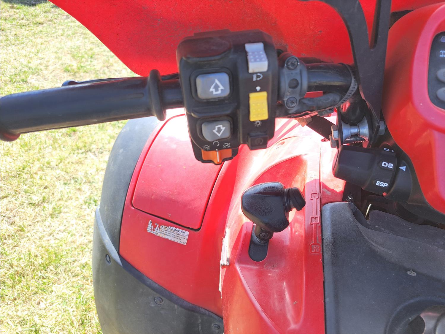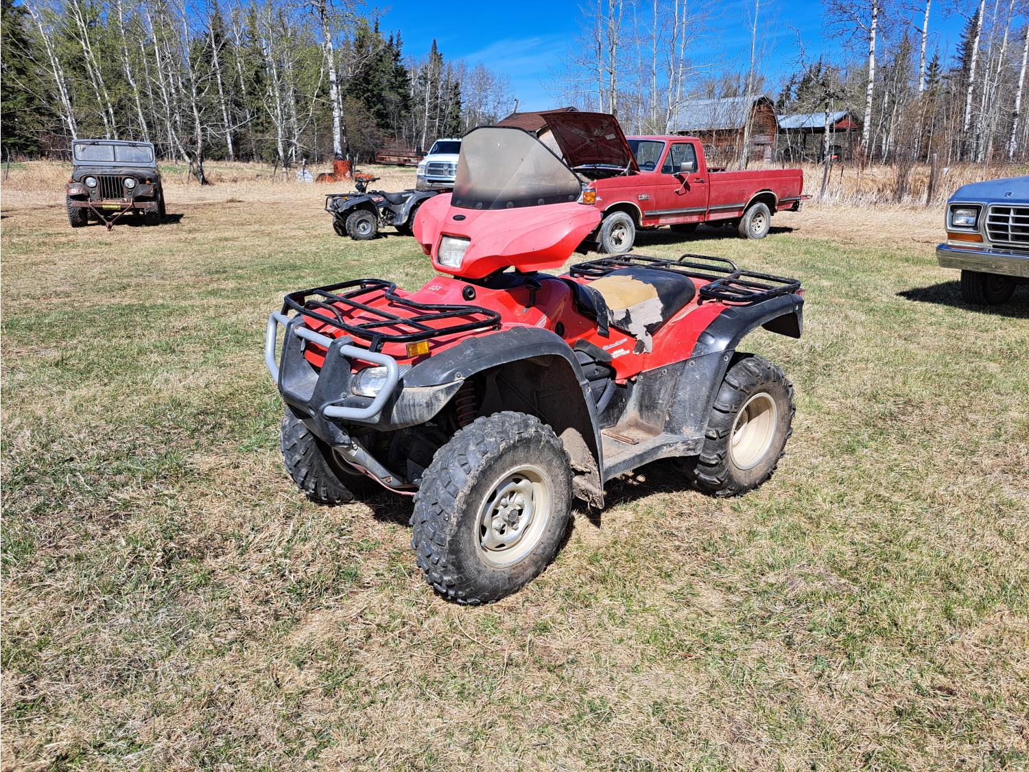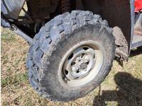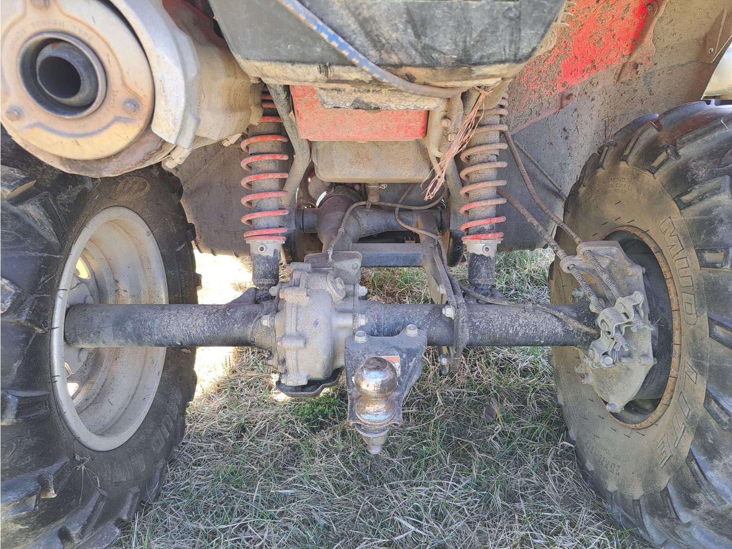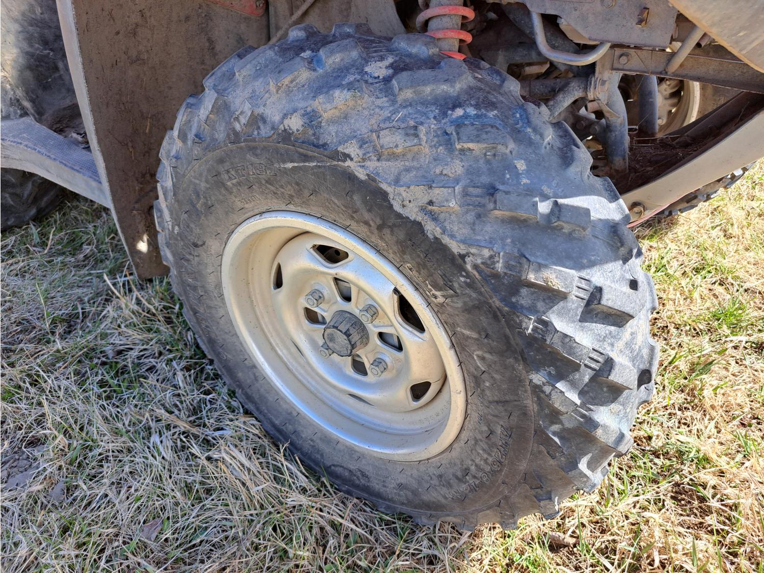 engine, automatic transmission, electric shift, reverse, hitch, front and rear racks, 25X8.00-12 front tires, 25X12.00-12 rear tires