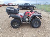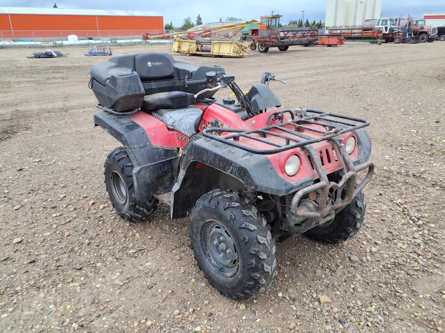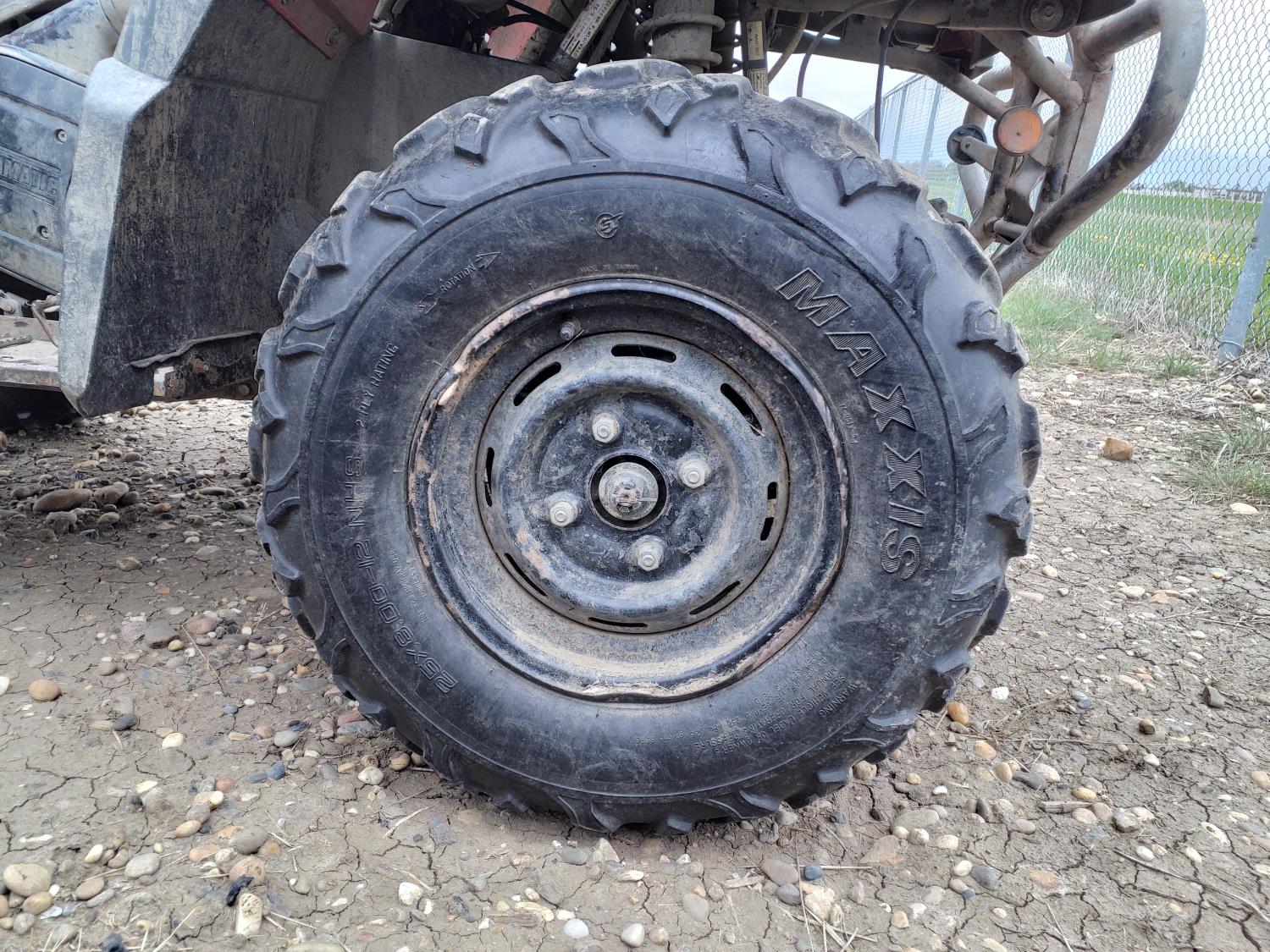 600 cc engine, automatic transmission, Hi/Lo range, reverse, hitch, front and rear racks, buddy seat, tool box, front winch, 25X8-12 front tires, 25X10-10 rear tires