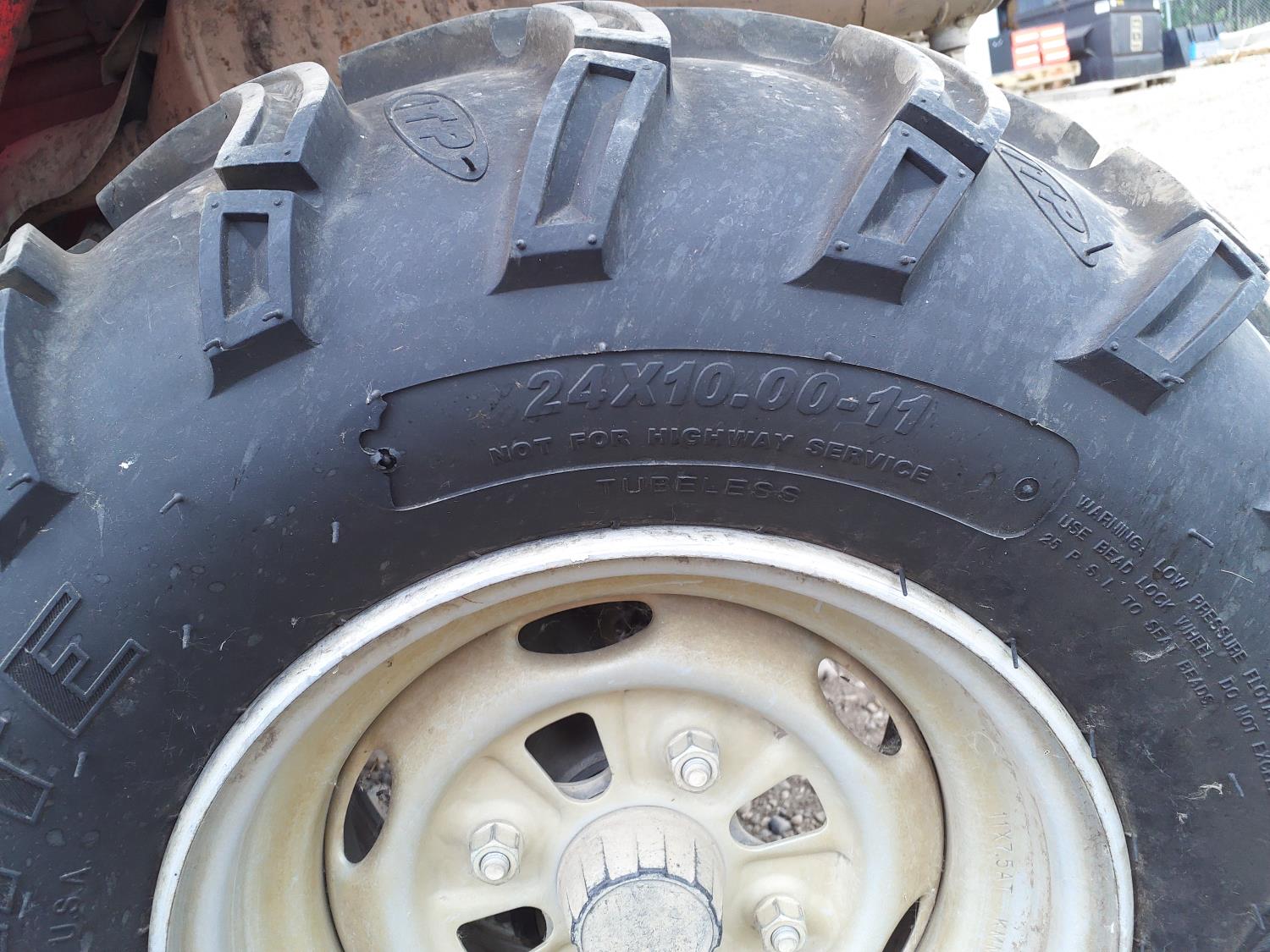 420 cc engine, reverse, hitch, front and rear racks, 24X8-12 front tires, 24X10.00-11 rear tires