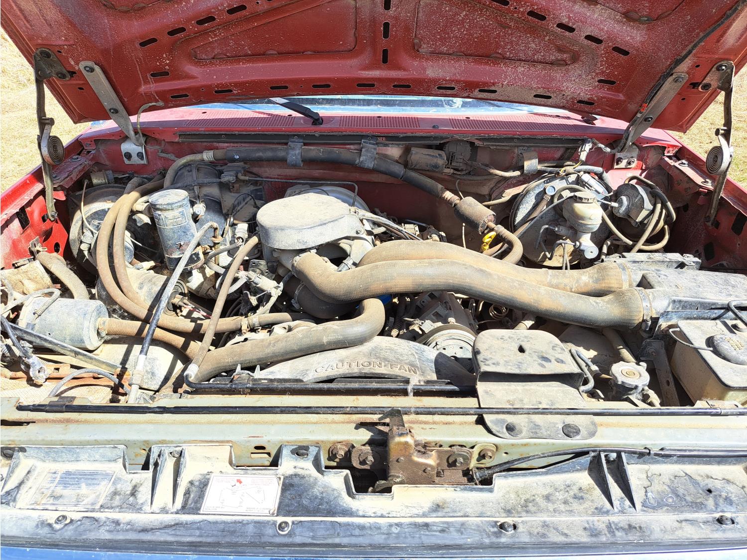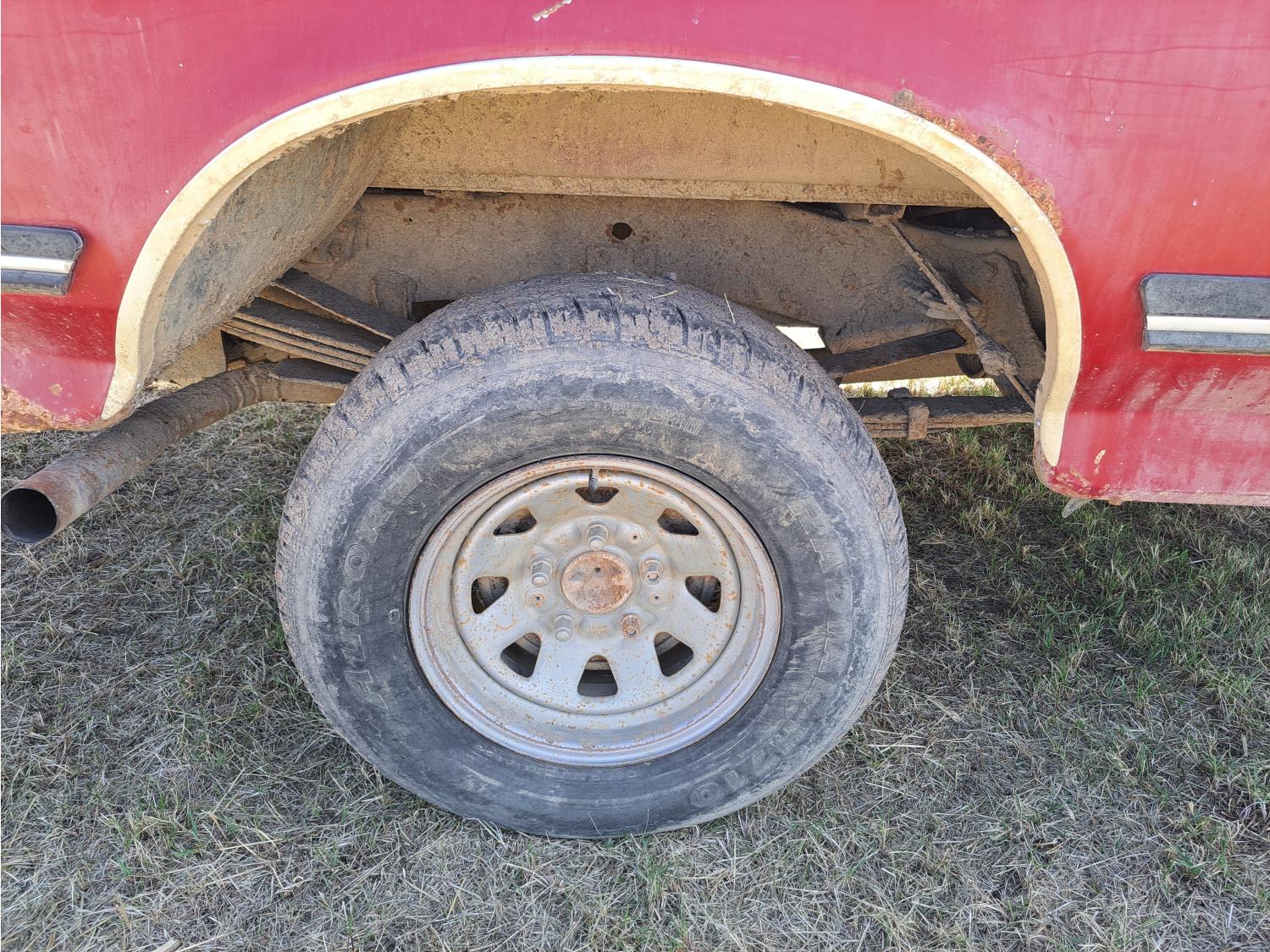 5 L, V8, gas, 4 speed automatic transmission, 8 ft box, 235/75R15 tires