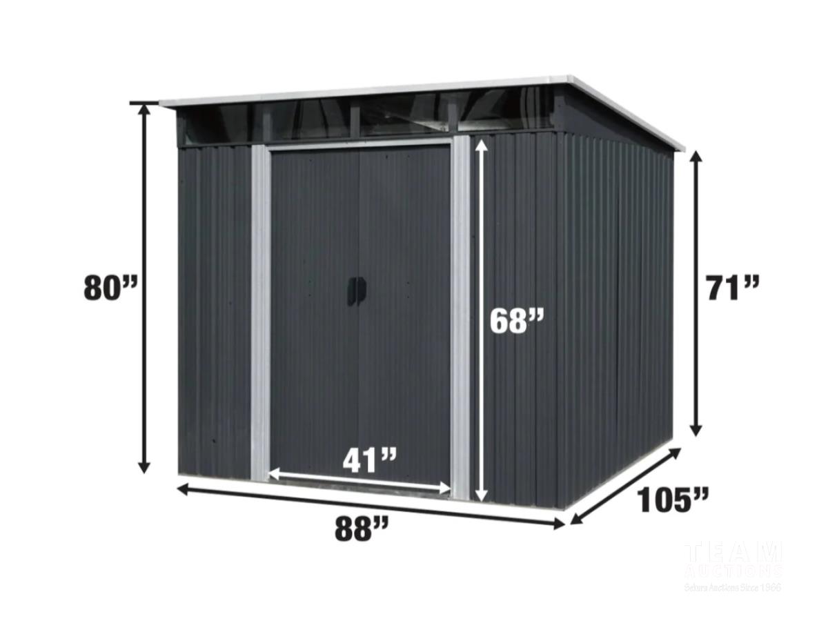 465 TMG Industrial MS0809P 8 Ft X 9 Ft Galvanized Metal Pent Shed W/Skylight (Unused)