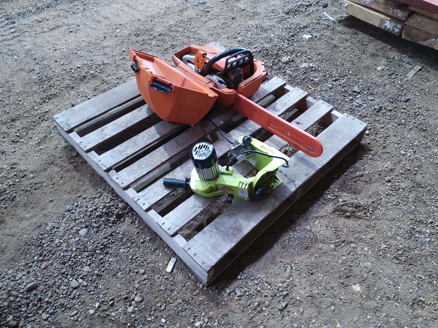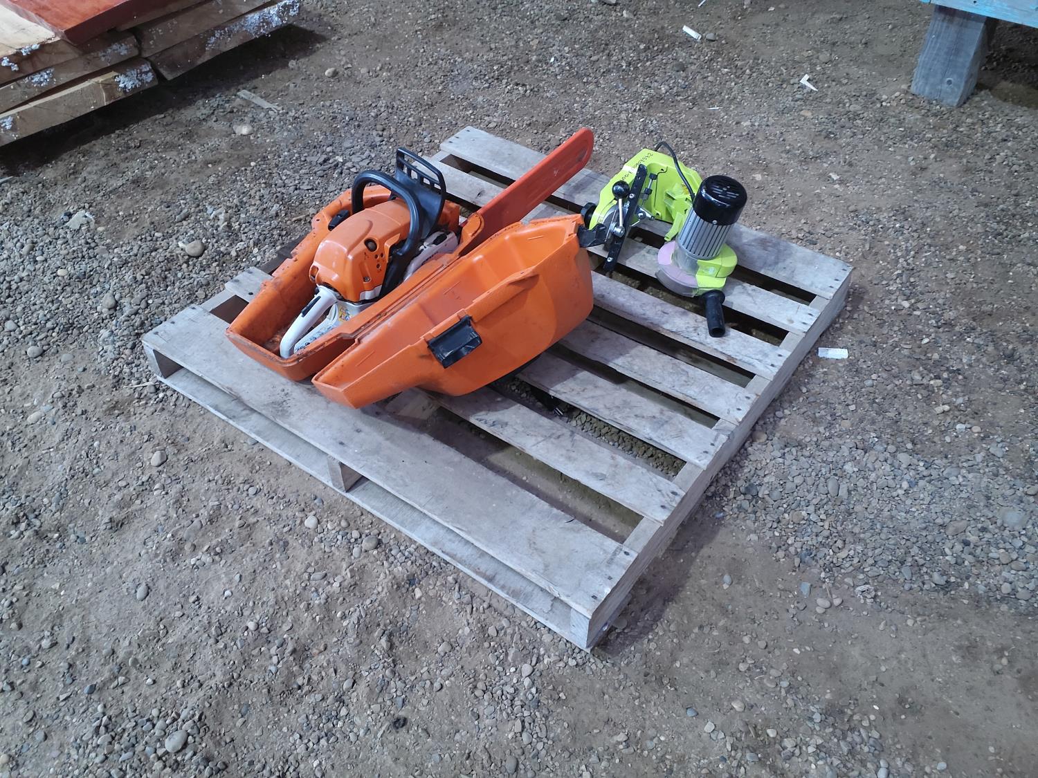 34 Green Chain Sharpener and Stihl Chainsaw 291C with Case