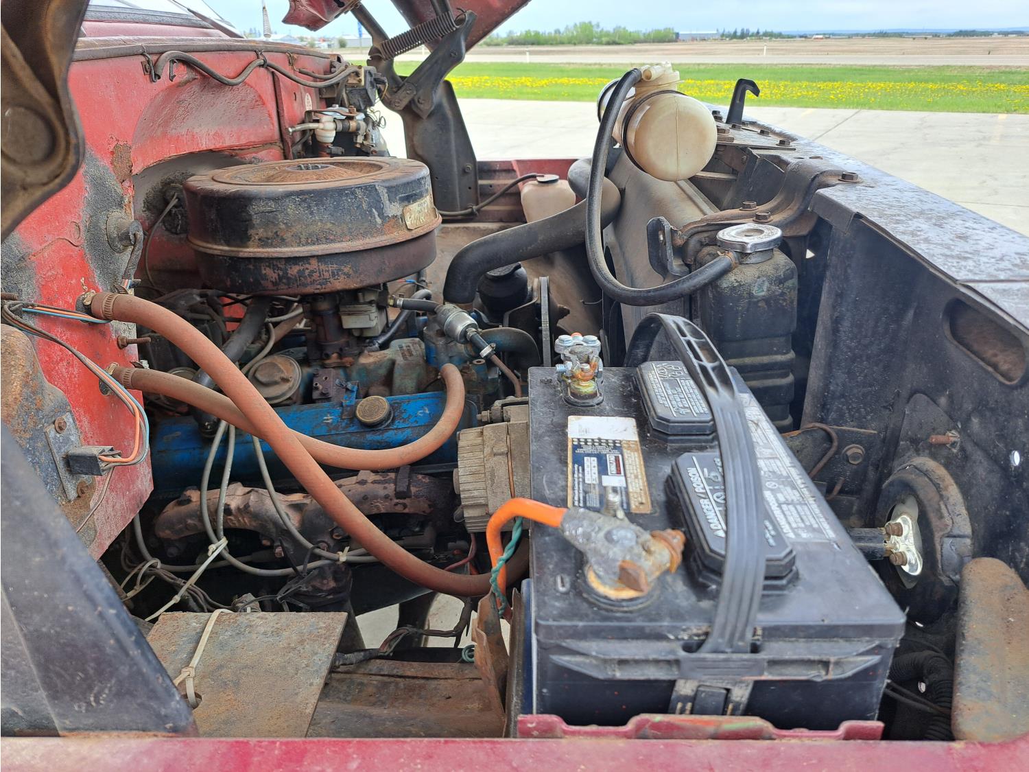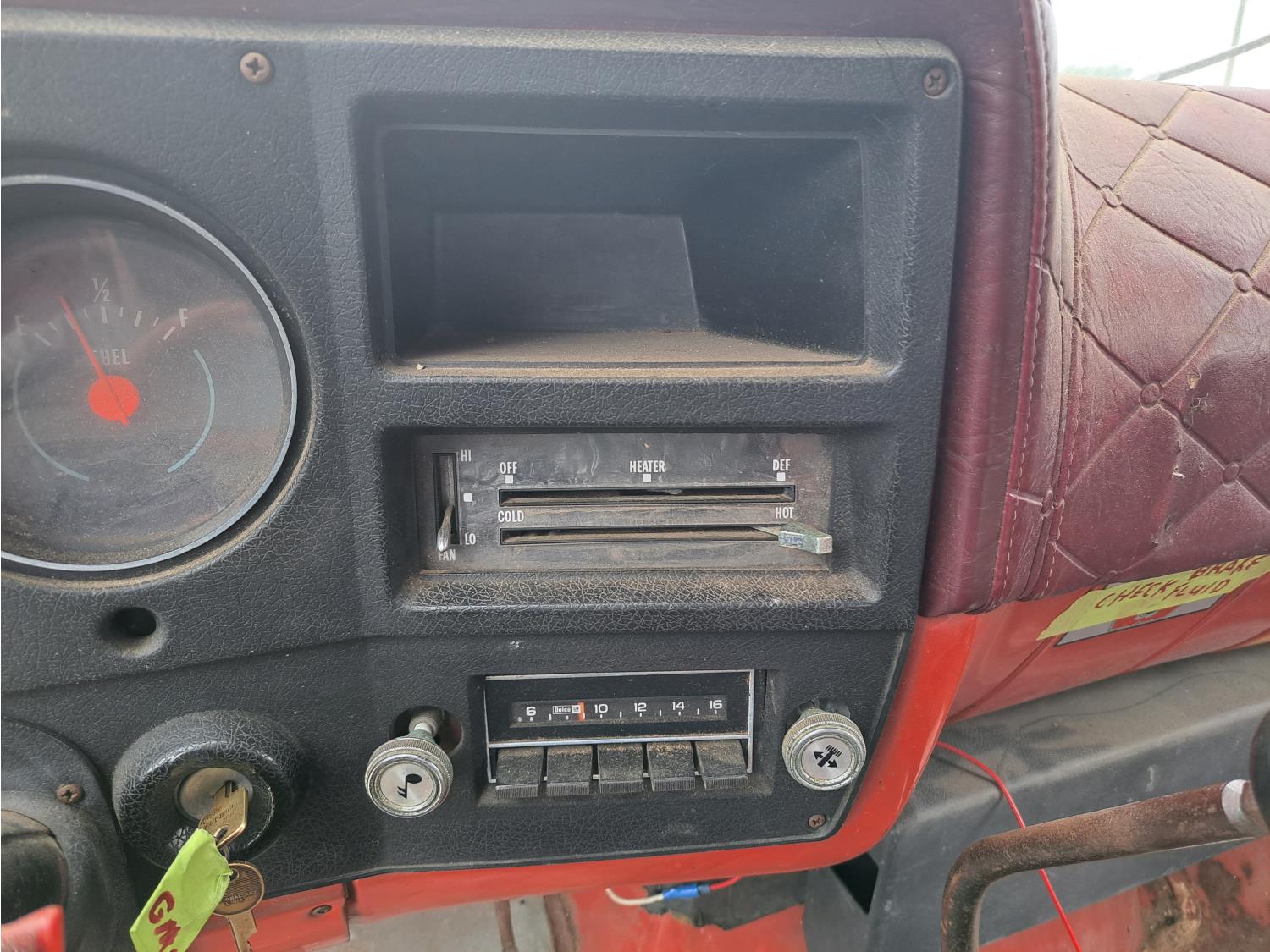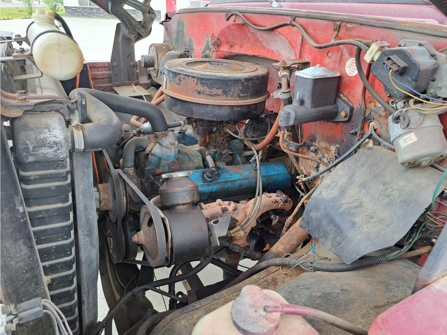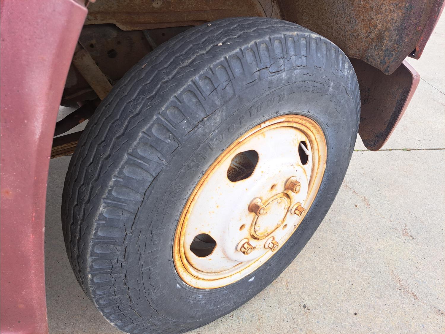 gas engine, 4 speed manual transmission, radio, 12 ft box, spring suspension, 5,000 lb front axle, 13,500 lb rear axles, 8.25-20 front tires, 9.00-20 rear tires