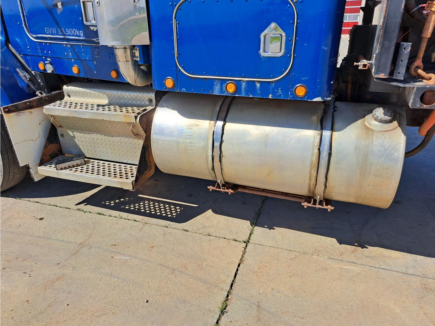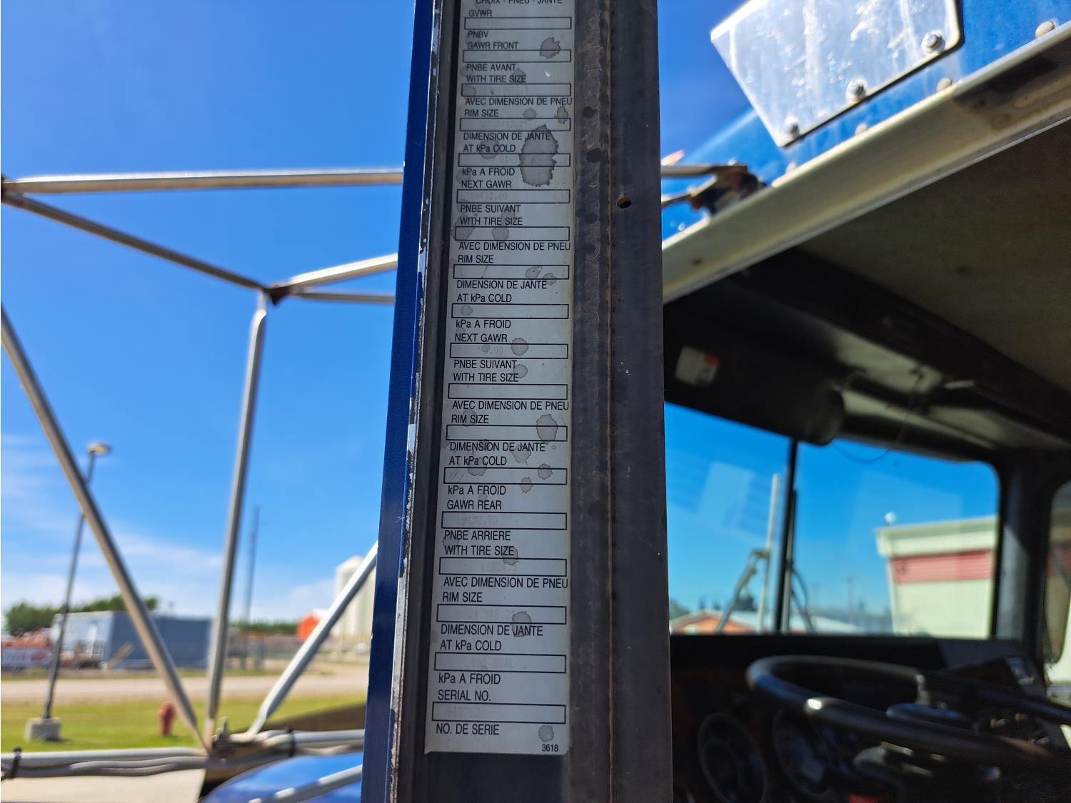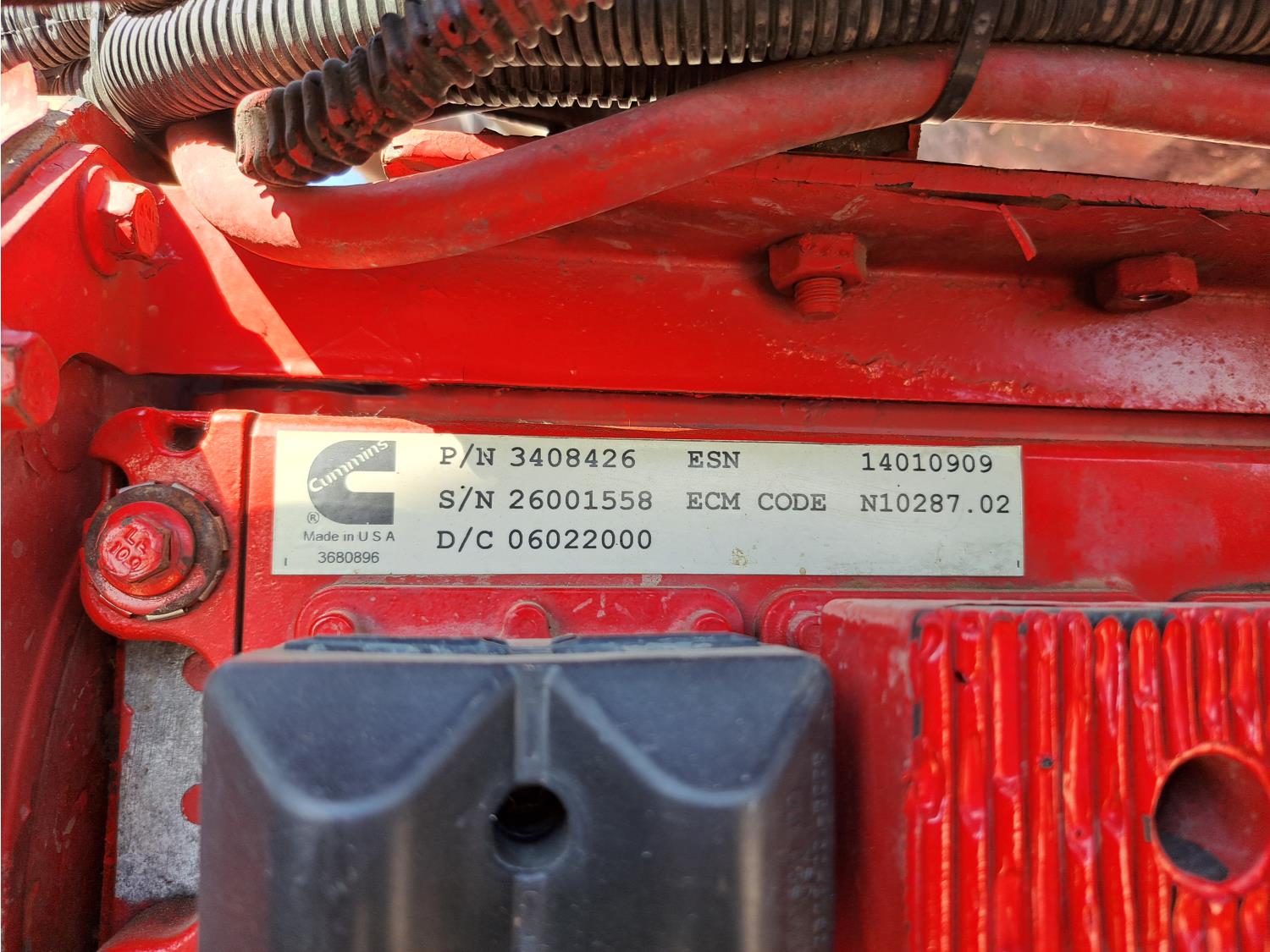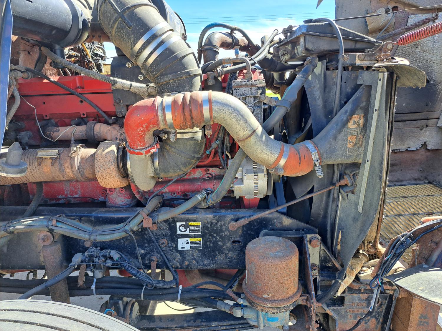 Cummins 475 HP diesel engine, engine brake, Eaton FULLER 18 speed manual transmission, A/C, cruise control, leather interior, stereo, moose bumper, headache rack, beacons, chain holders, hydraulic winch, diff lock, 11R24.5 tires