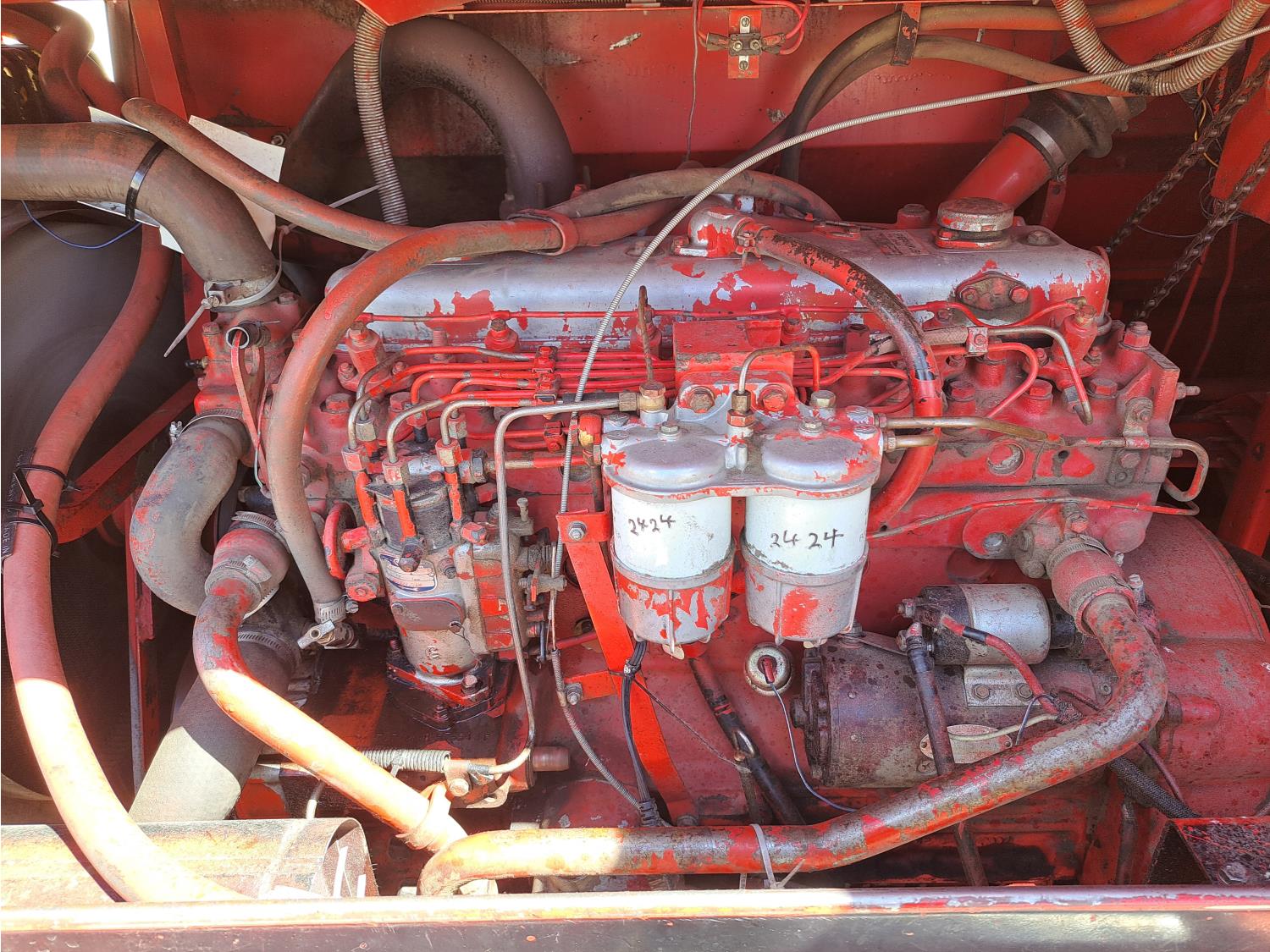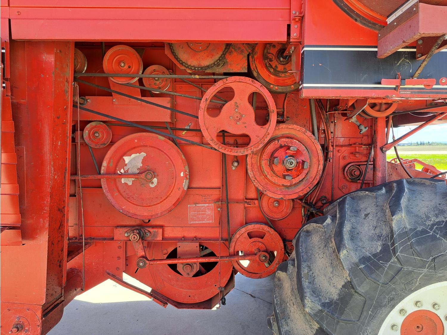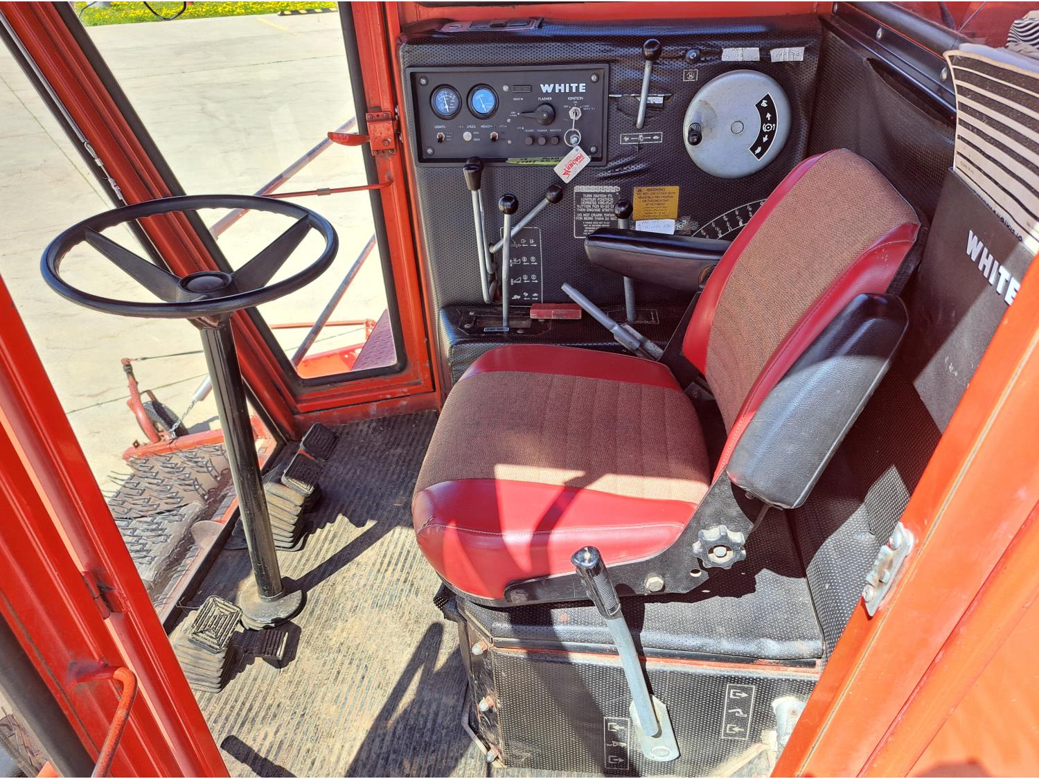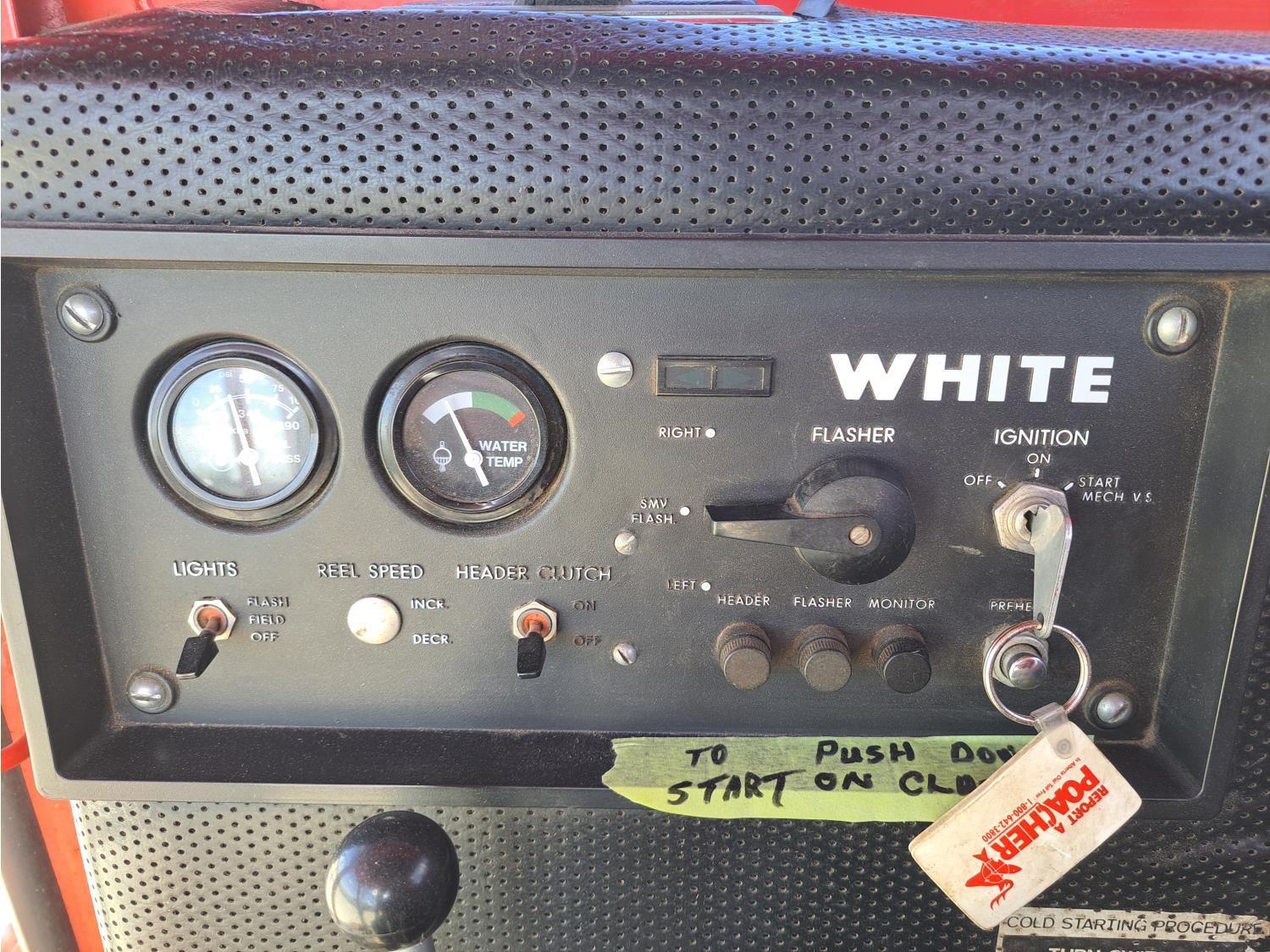 White 990 12 ft pick-up header, rock trap, chopper, 14 ft auger, A/C, radio, 23.1-26 front tires, 16.5L-16.1S rear tires