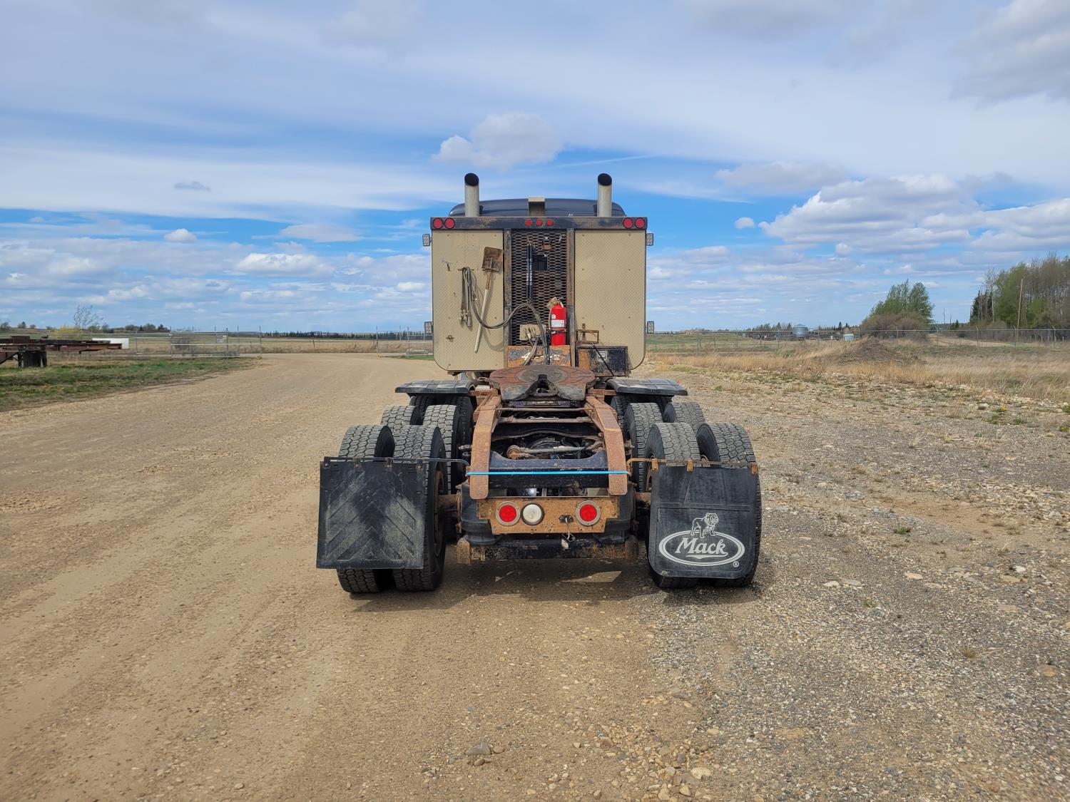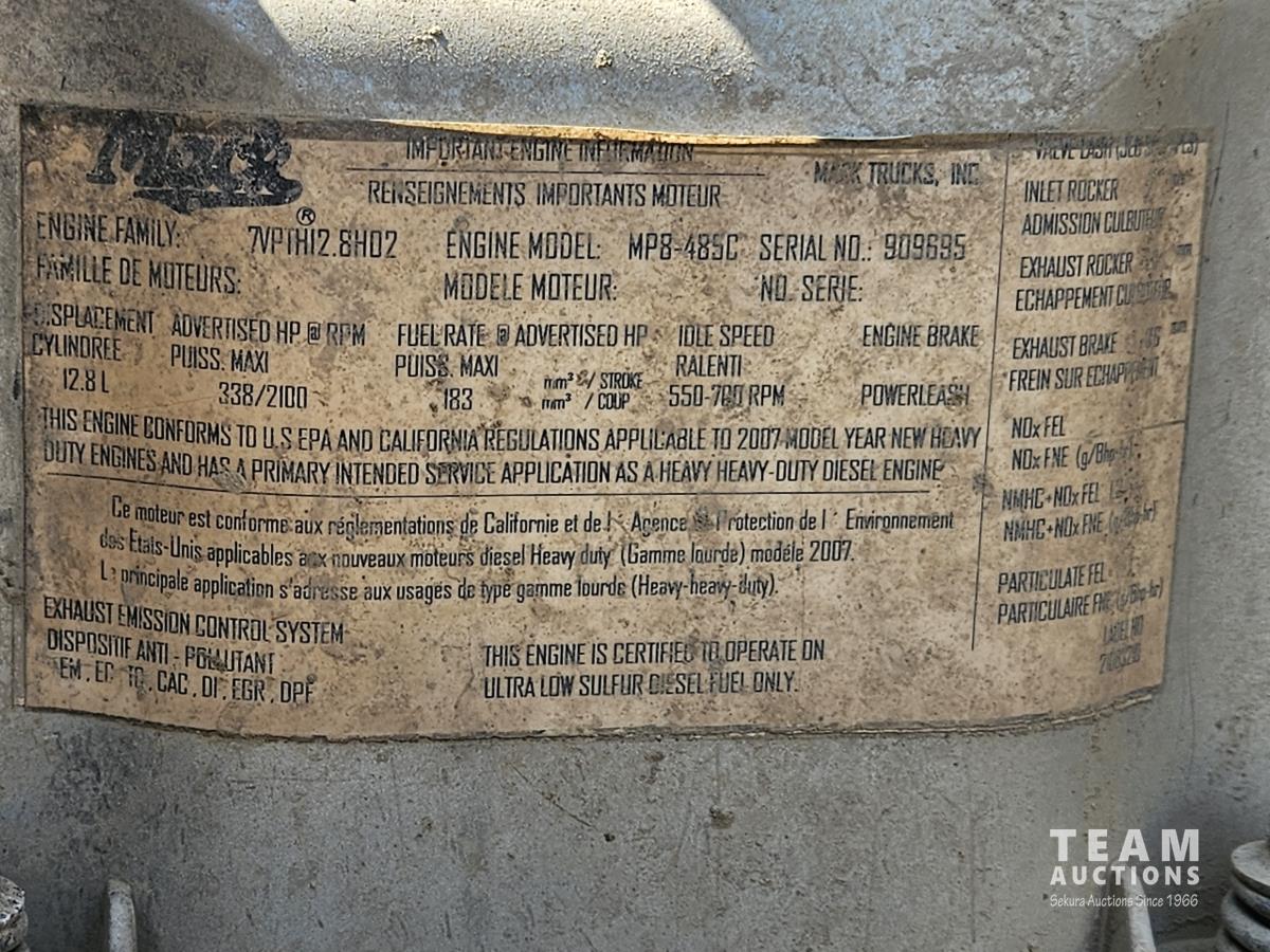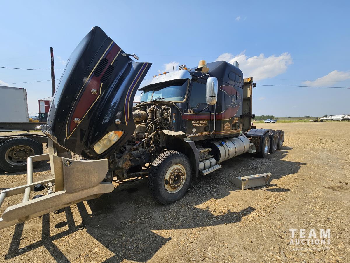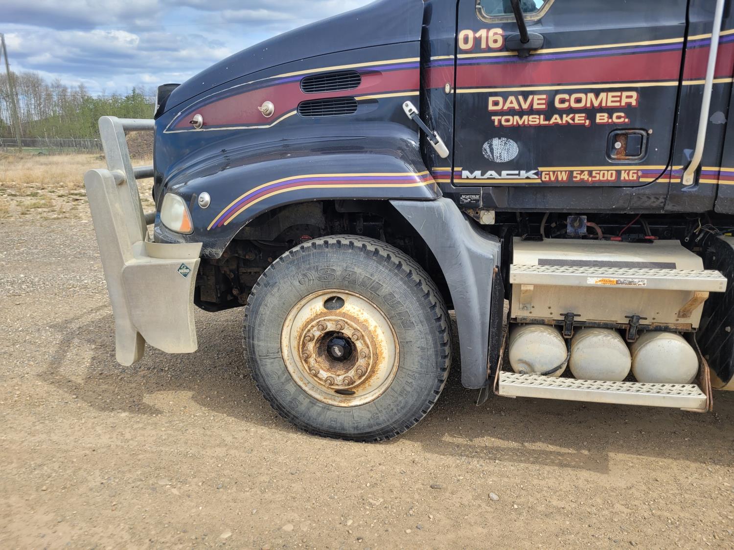 Mack MP8 485 505 HP diesel engine, emissions deleted, 18 speed transmission, sleeper, fridge, A/C, cruise control, leather interior, air ride seats, stereo, moose bumper, headache rack, Arctic HR, FGI rigging, PTO, air ride suspension, diff lock, Sliding 5th, all aluminum wheels, 11R24.5 rear tires