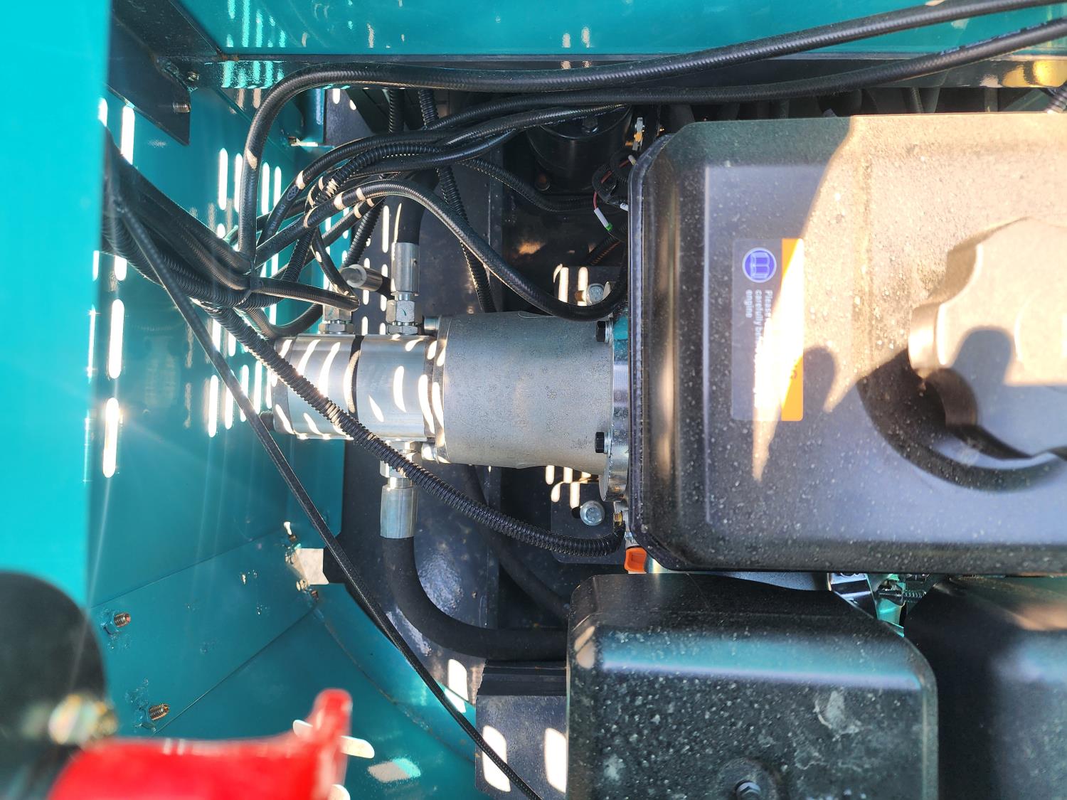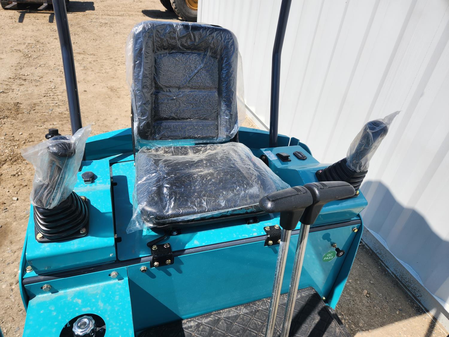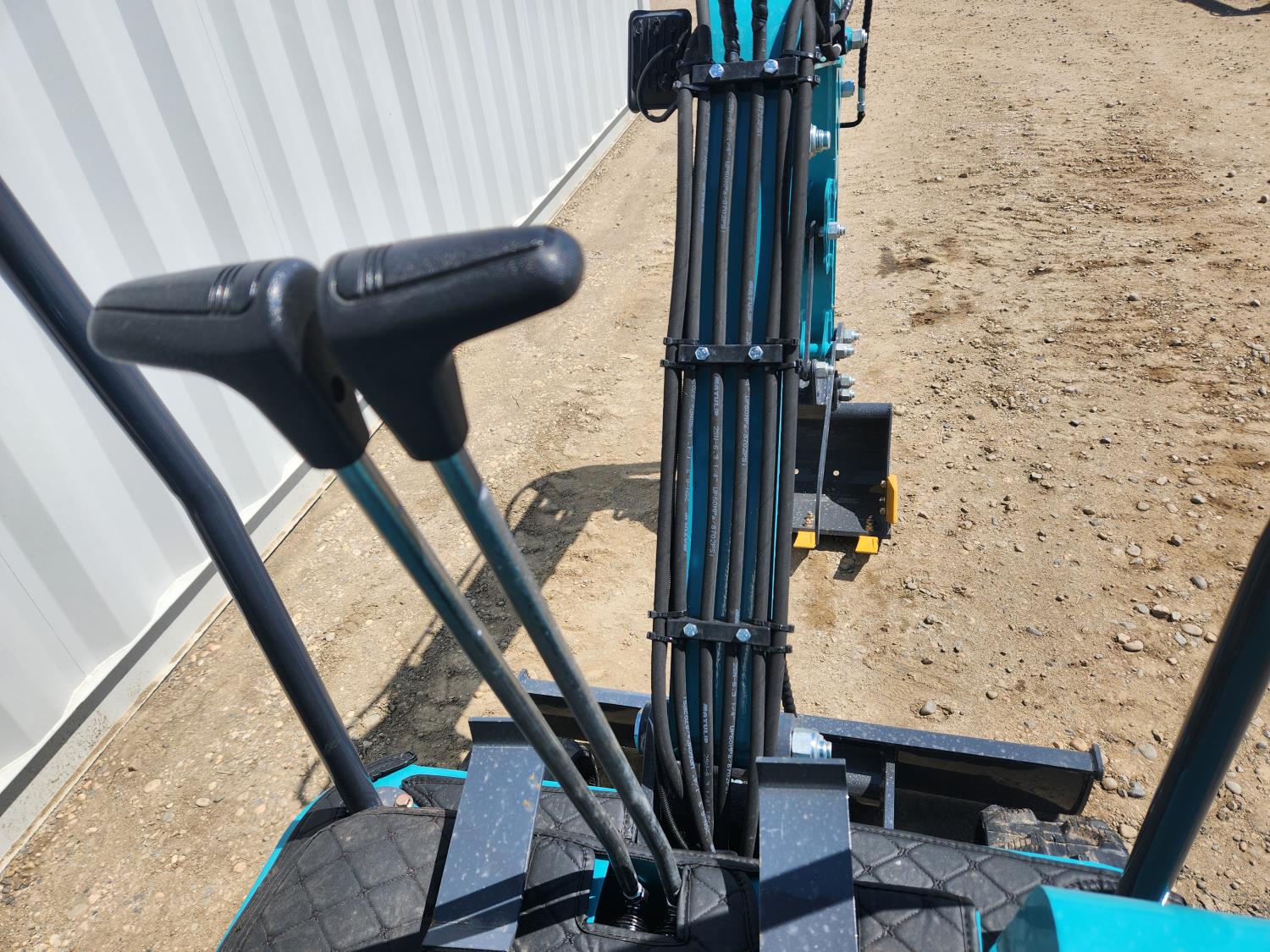 Open station, gas engine, 16 inch dig bucket, manual coupler, manual thumb, 31 inch stick, backfill blade, 7 inch rubber tracks
