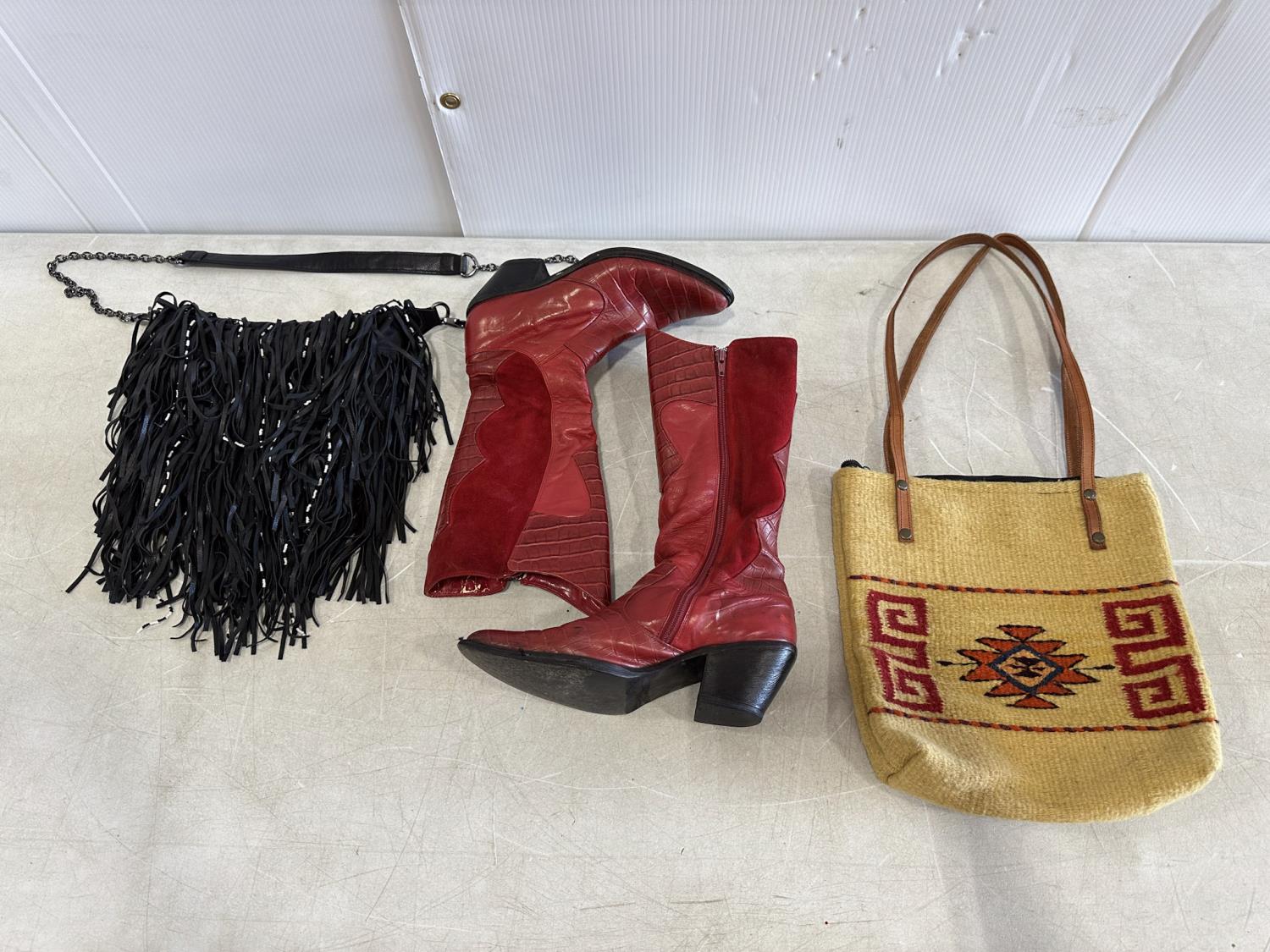 1258 (2) Western Purses and Women's Size 8 Red Cowboy Boots