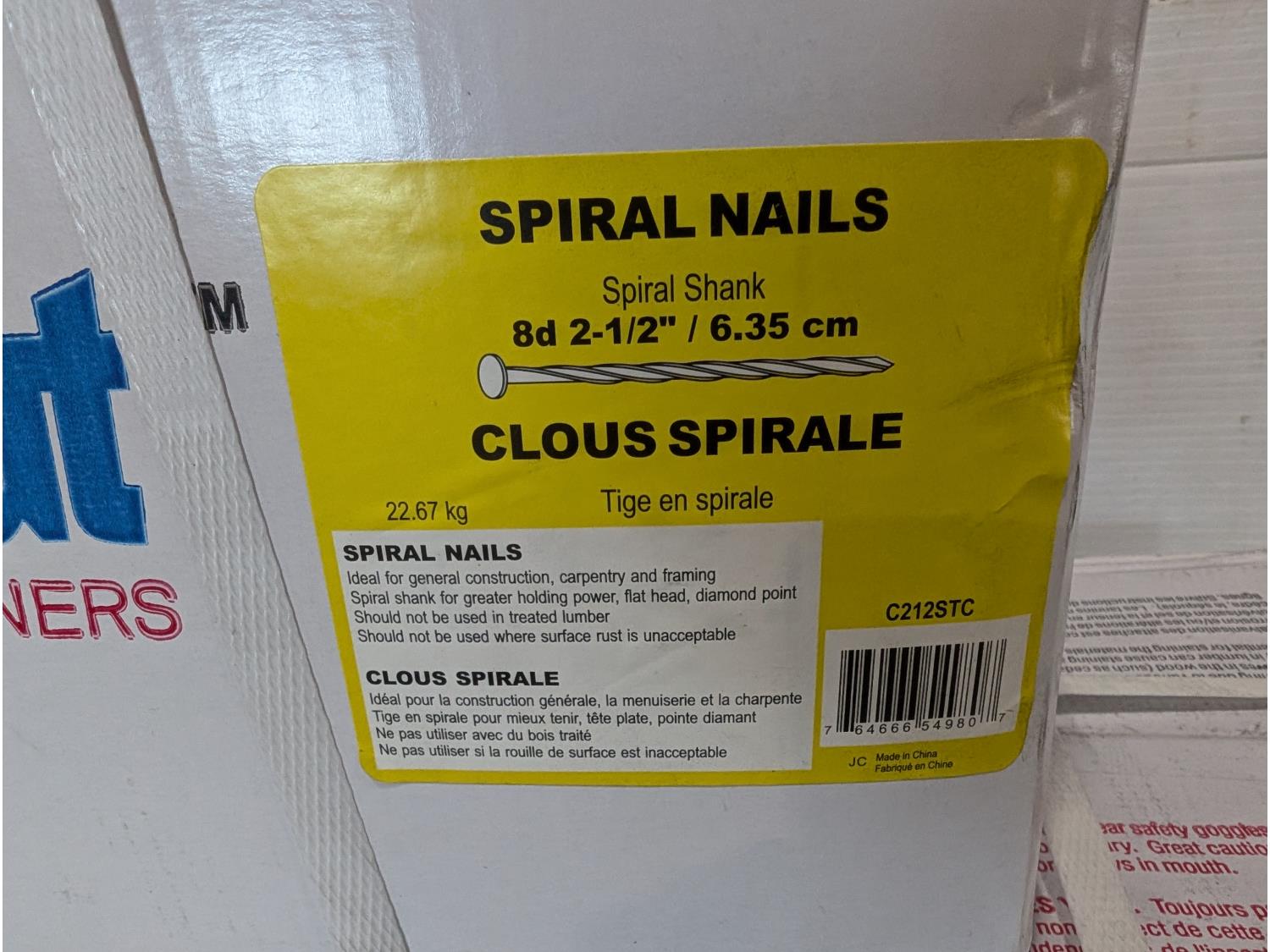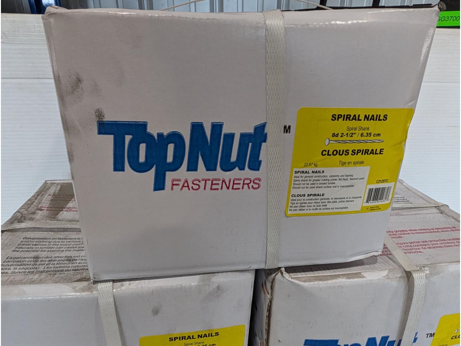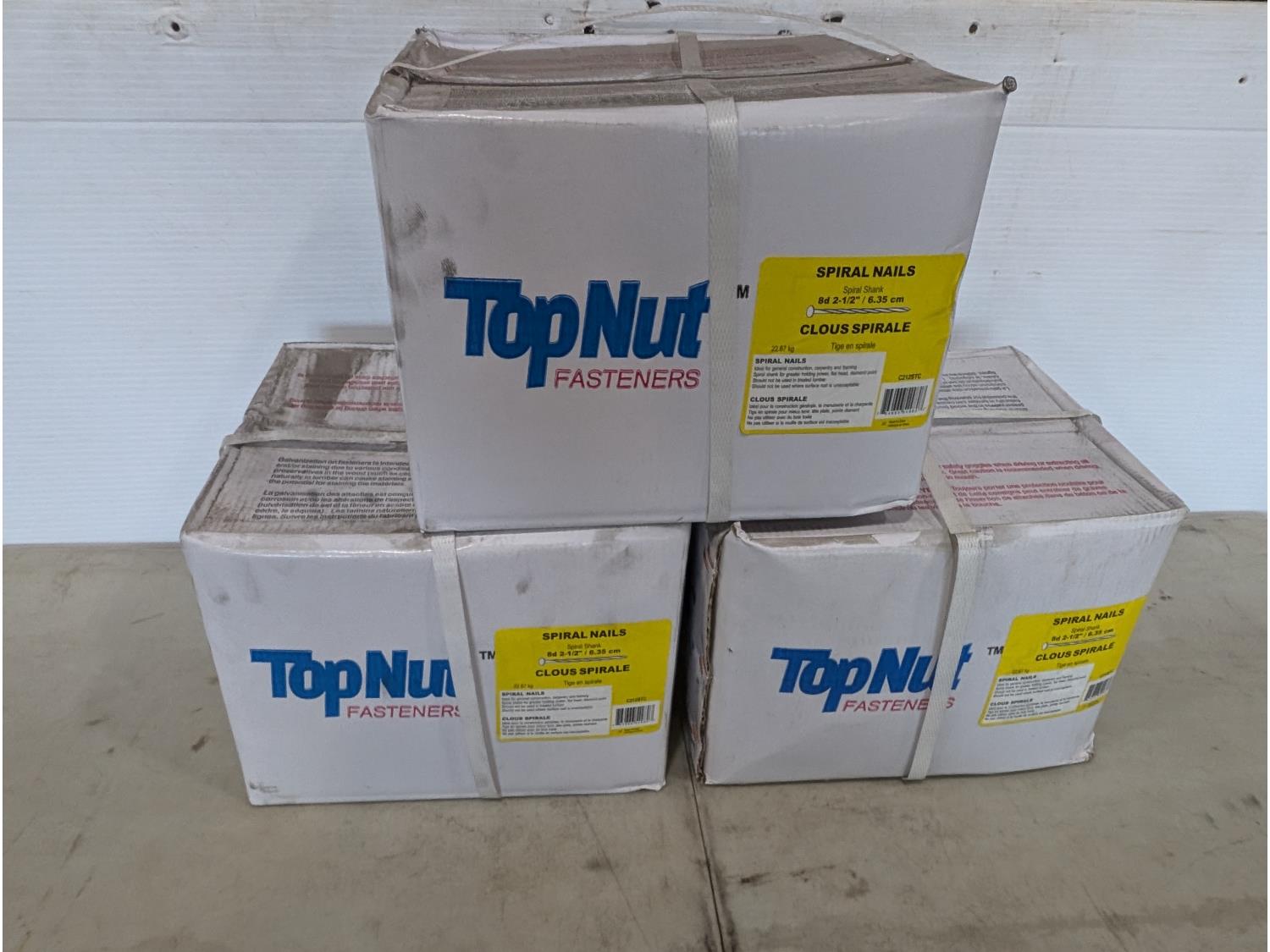 1810 (3) Cases of Topnut 2-1/2 Inch 8D Spiral Nails (Unused)