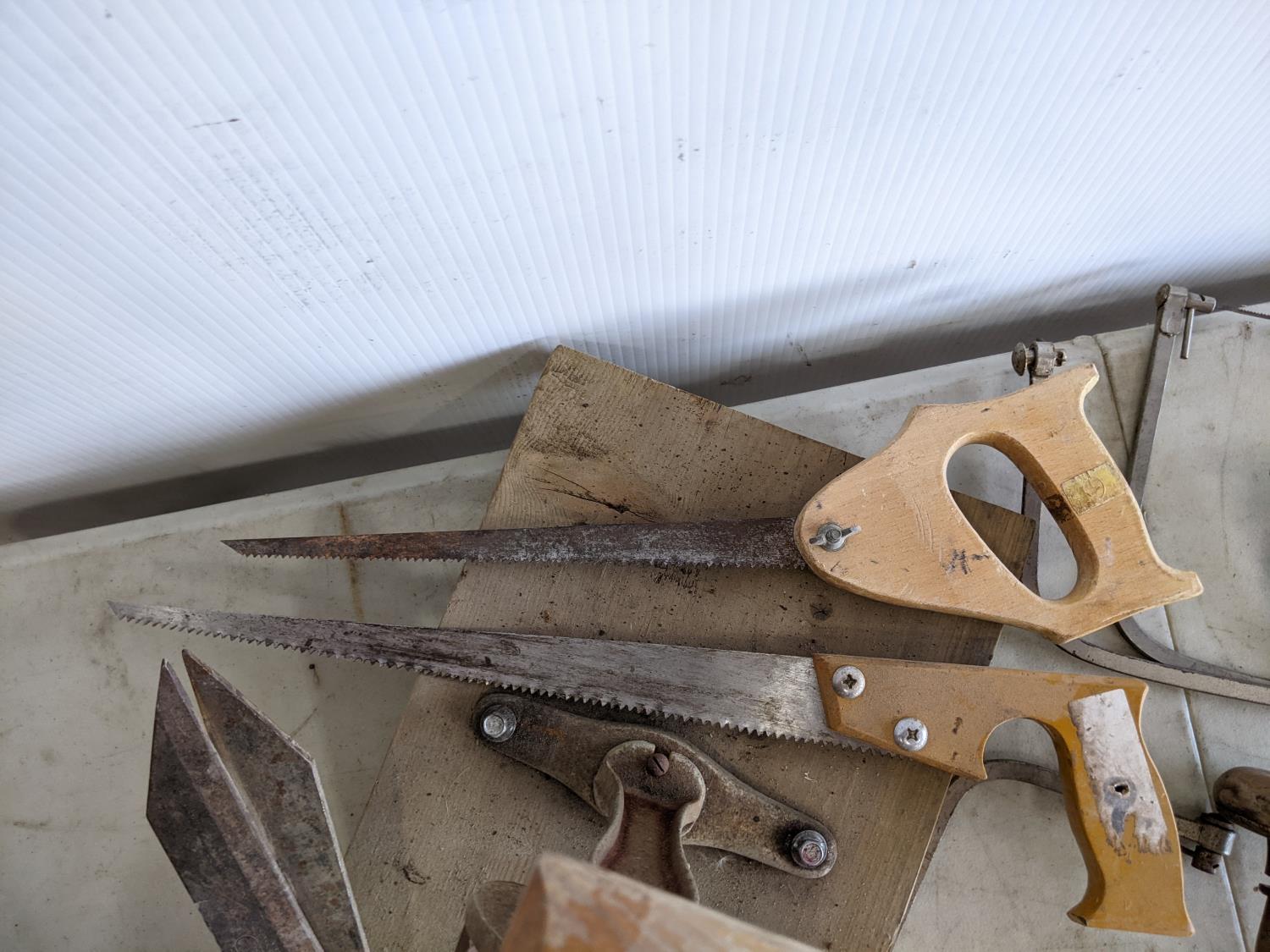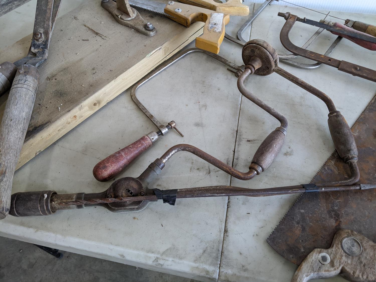 hands saws, drills, shears, stand