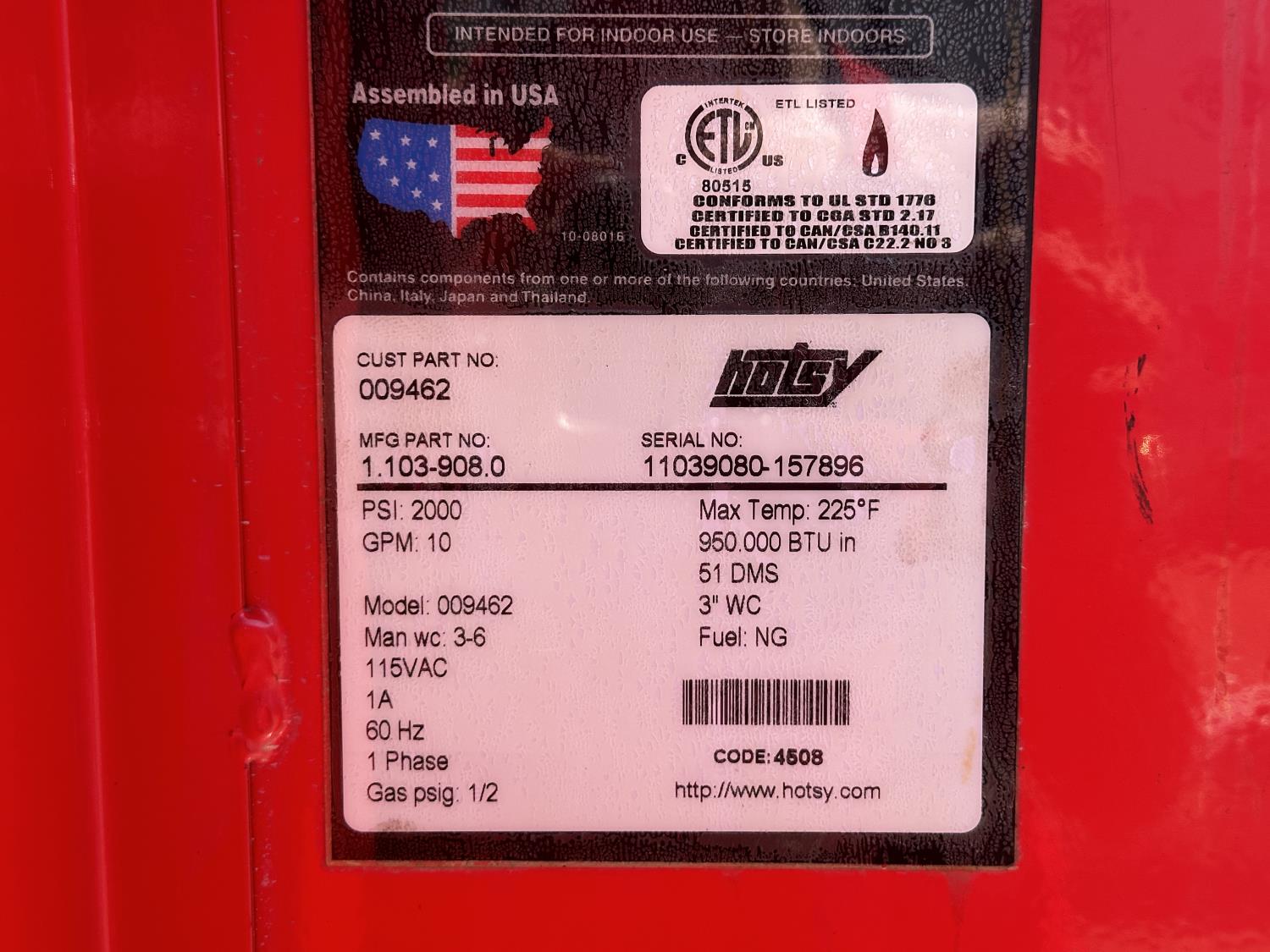 2302 Hotsy 009462 Natural Gas Fired Steamer