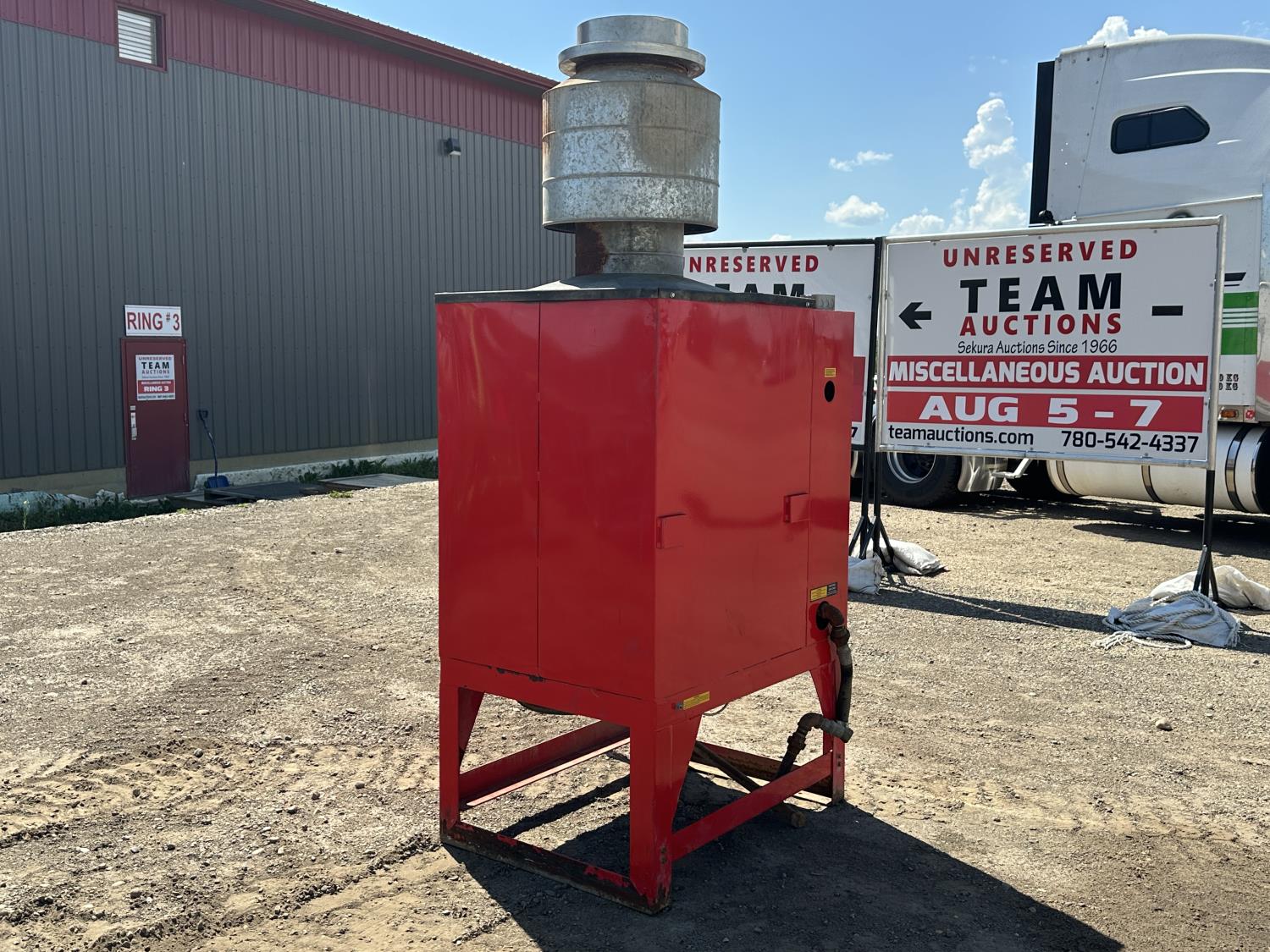 - Equipment located at Team Auctions Drayton Valley consignment yard can be loaded out Aug 1 - 2 & Aug 5-7 from 8:30 AM - 4:30 PM, extended sale hours include Sat, Aug 3 from 9 AM - 4 PM, closed Sun, Aug 4 & Heritage Day Mon, Aug 5 and all subsequent weekends. Offsite loadout will be by appointment by calling the listed contact at the phone number provided. Buyer or his transporter will require a paid invoice to have items released.