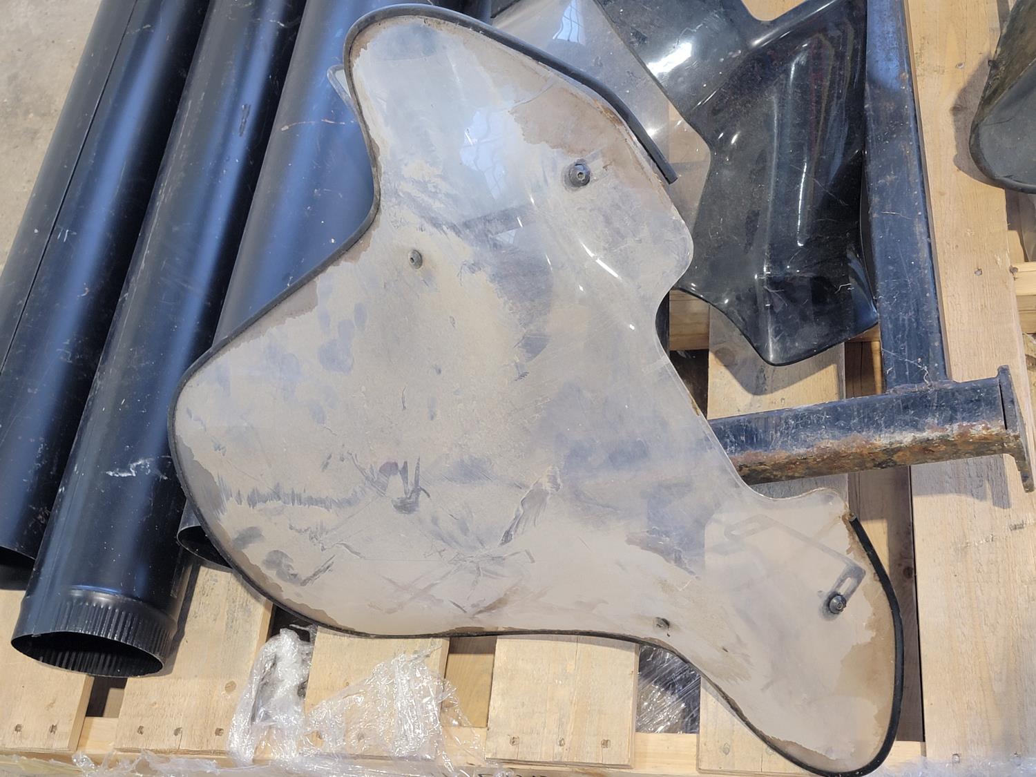 1416 Qty of 6 Inch Stove Pipe, Metal Frame and Snowmobile Windshield