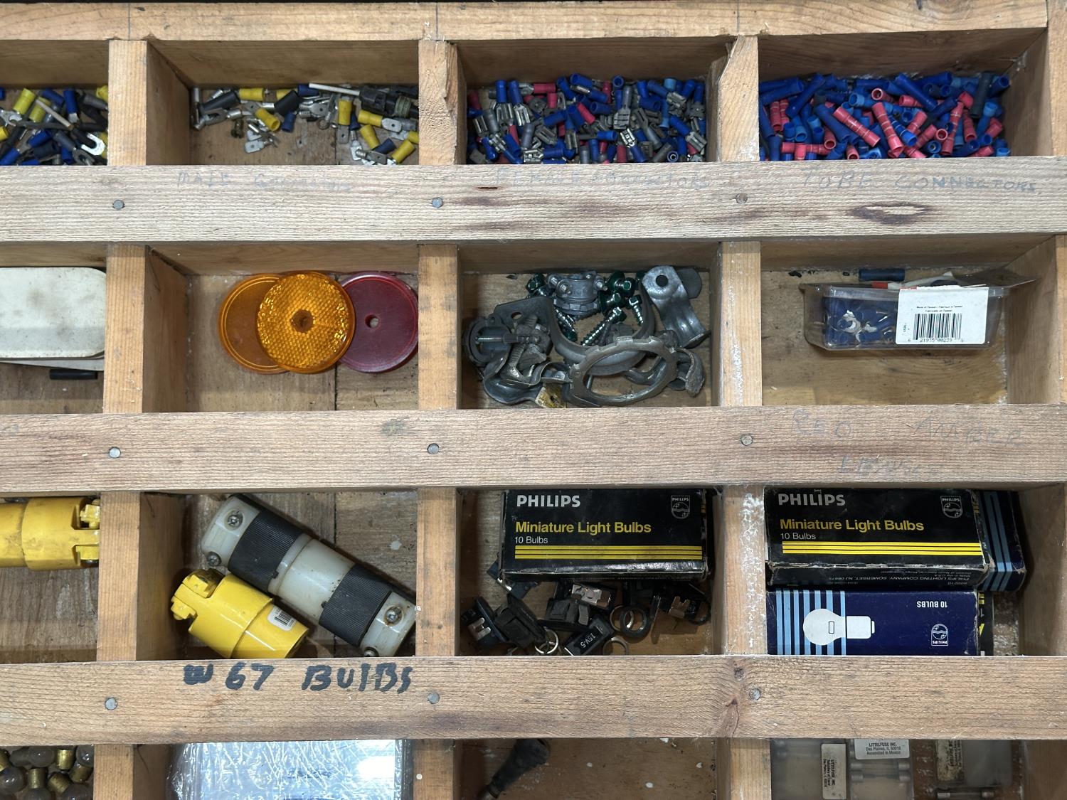 1182 60 Compartment Bolt Bin with Contents and (9) Jobmate Utility Bins
