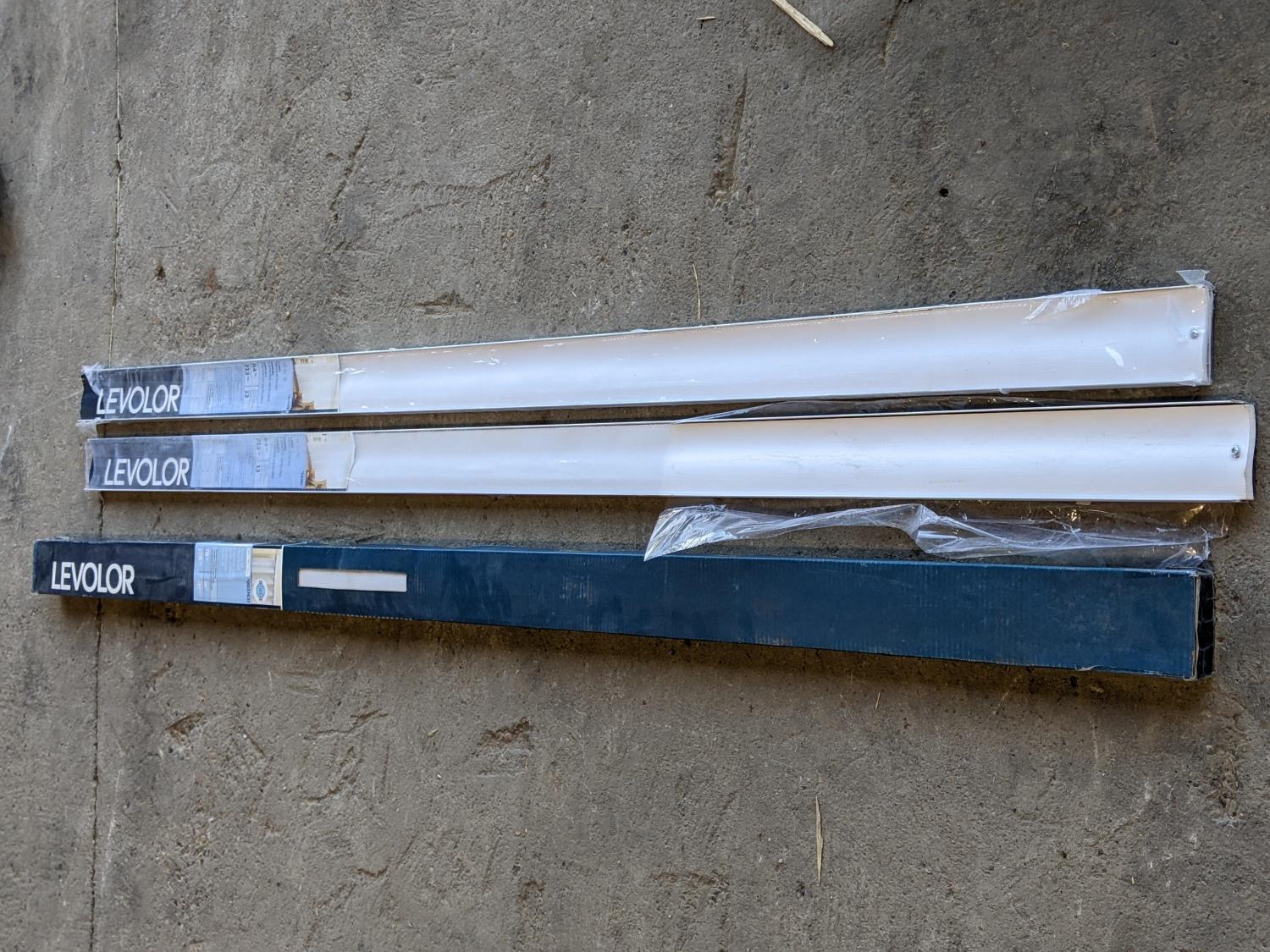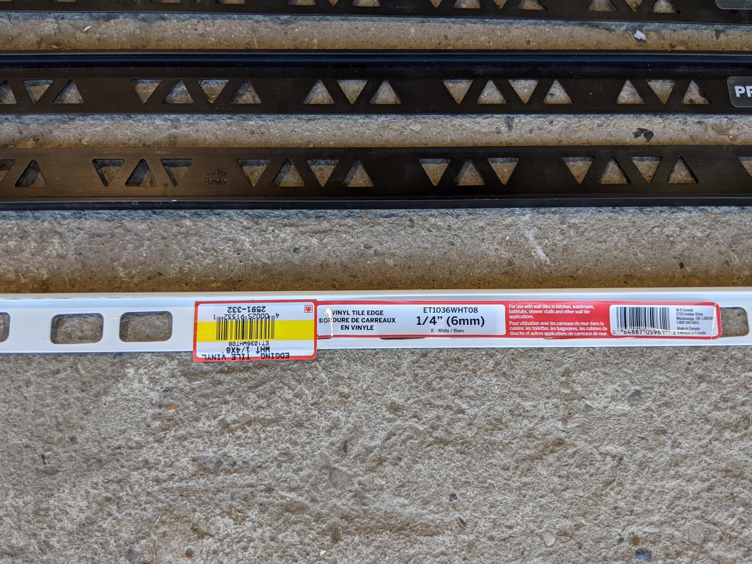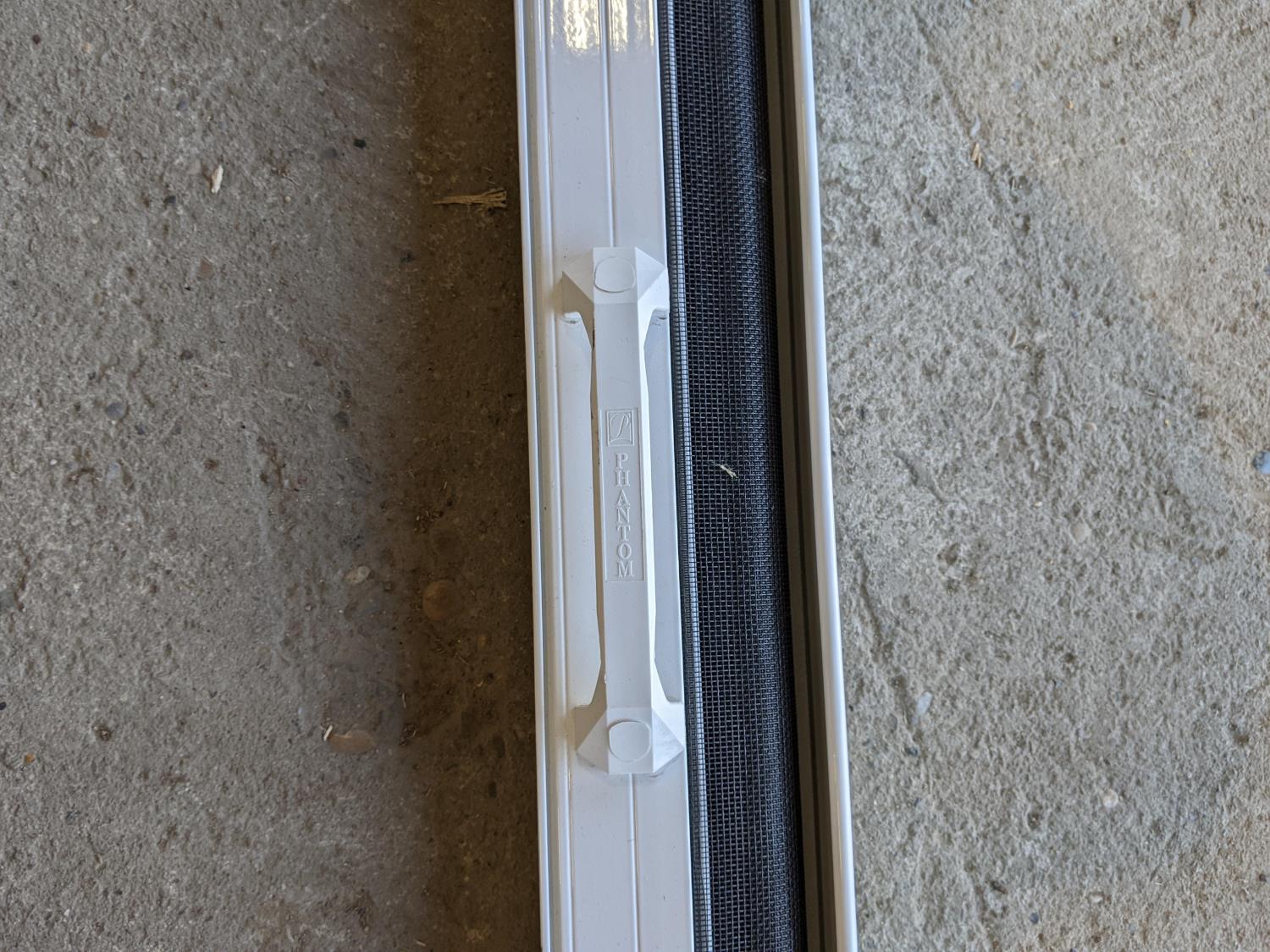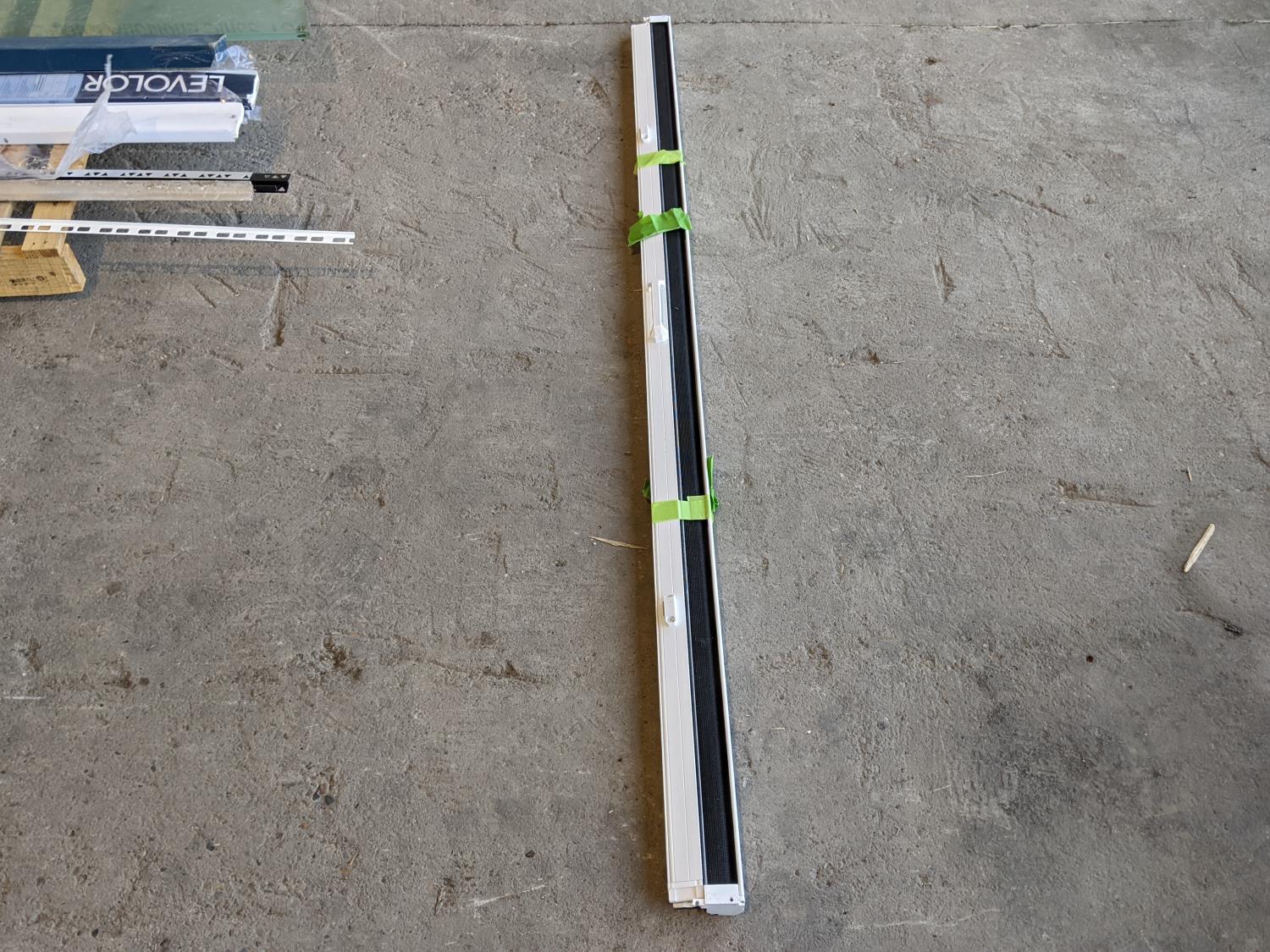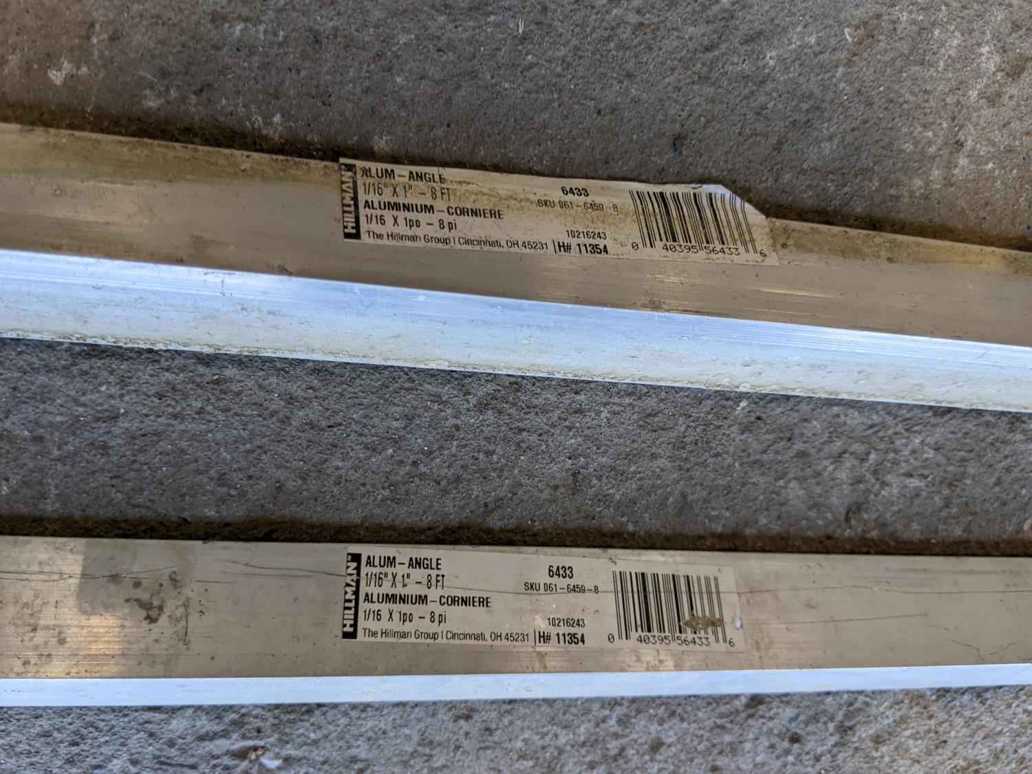 Retractable screen door 80-1/2 inch h, vertical blind headrail, vertical blinds, glass bar top 85-3/4 inch l x 14 inch w x 3/4 inch thick, (2) 1/16 inch x 1 inch x 8 ft long aluminum angle, tile edging