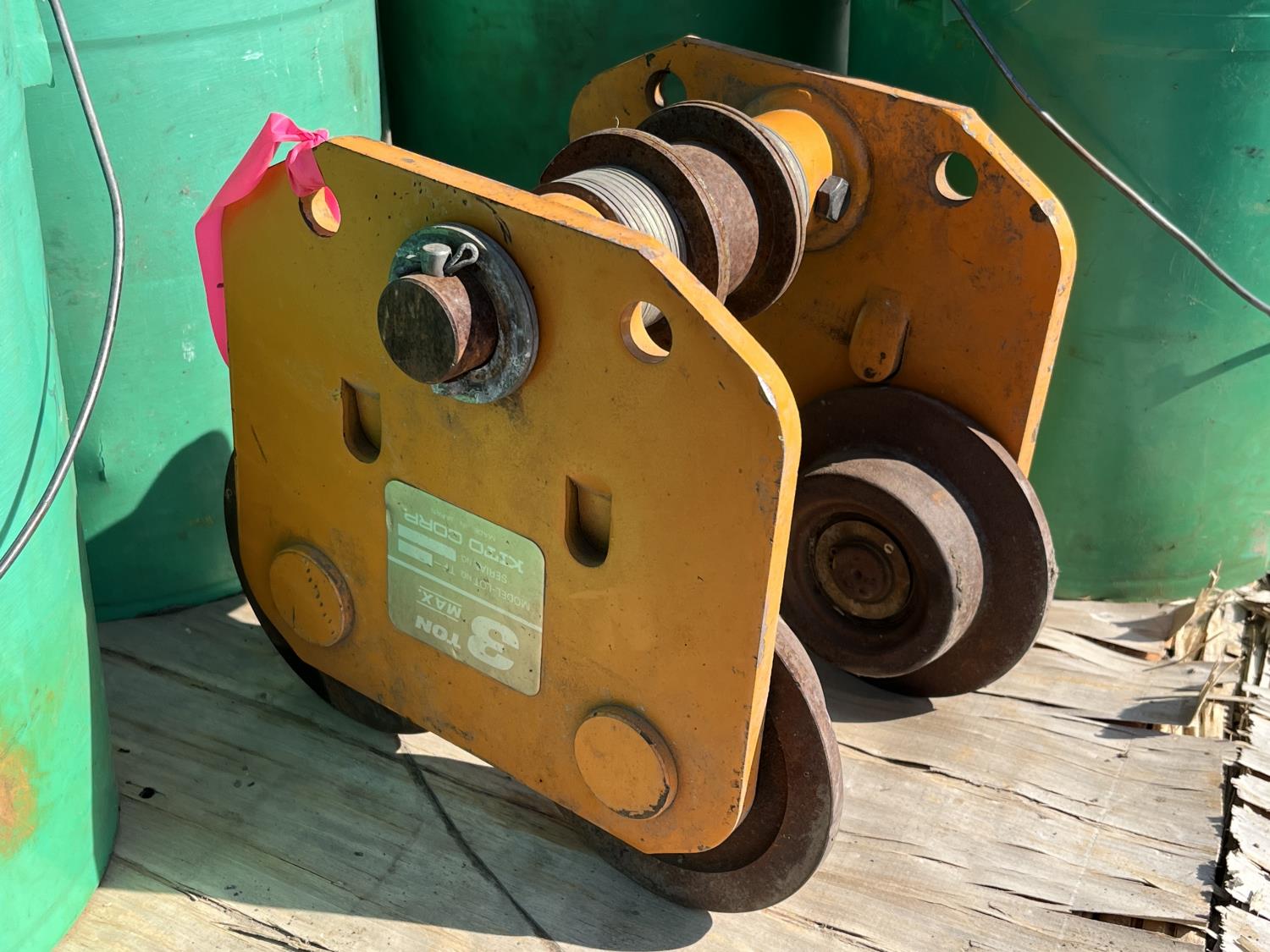 hydraulic on/off valves, hydraulic unloading valves, pinch valves, handles, clevises, 9 ton crane trolley, flow meter, air regulator, air cylinder