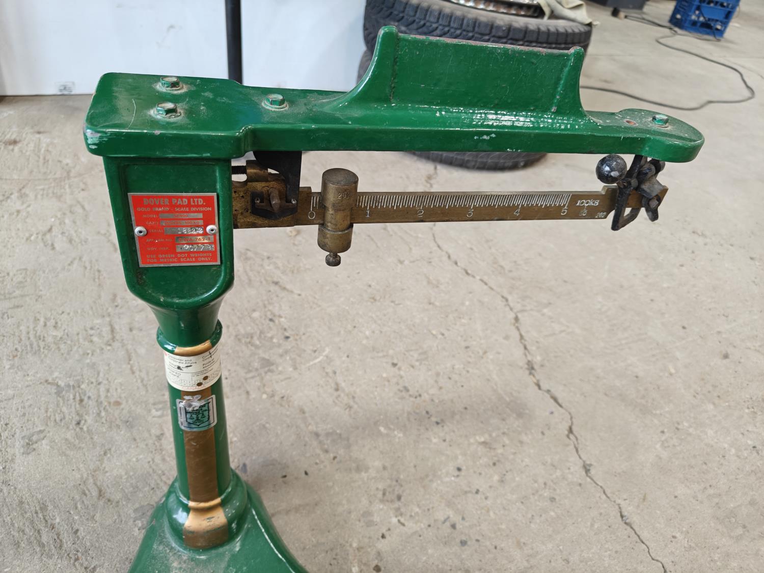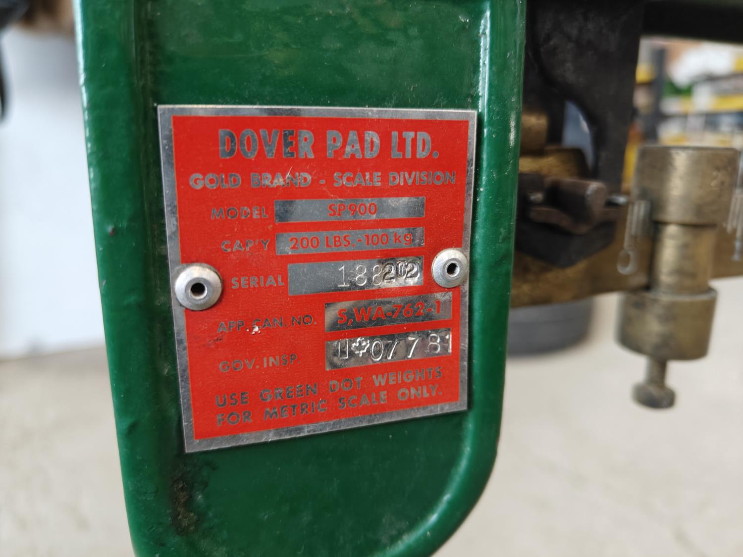 antique Dover Pad 200 lb scale, assorted hunting supplies, straps, wire