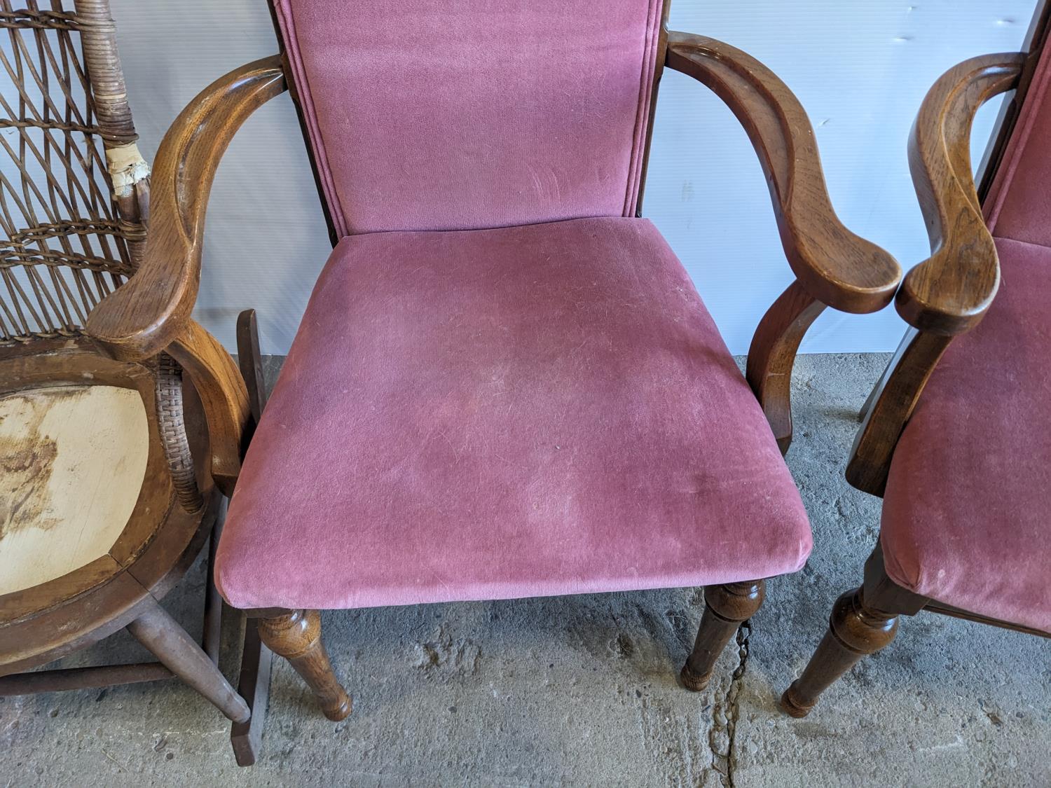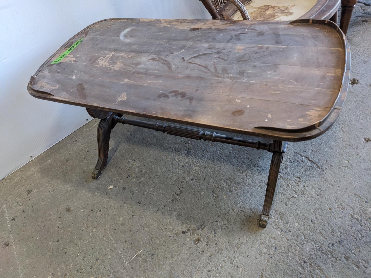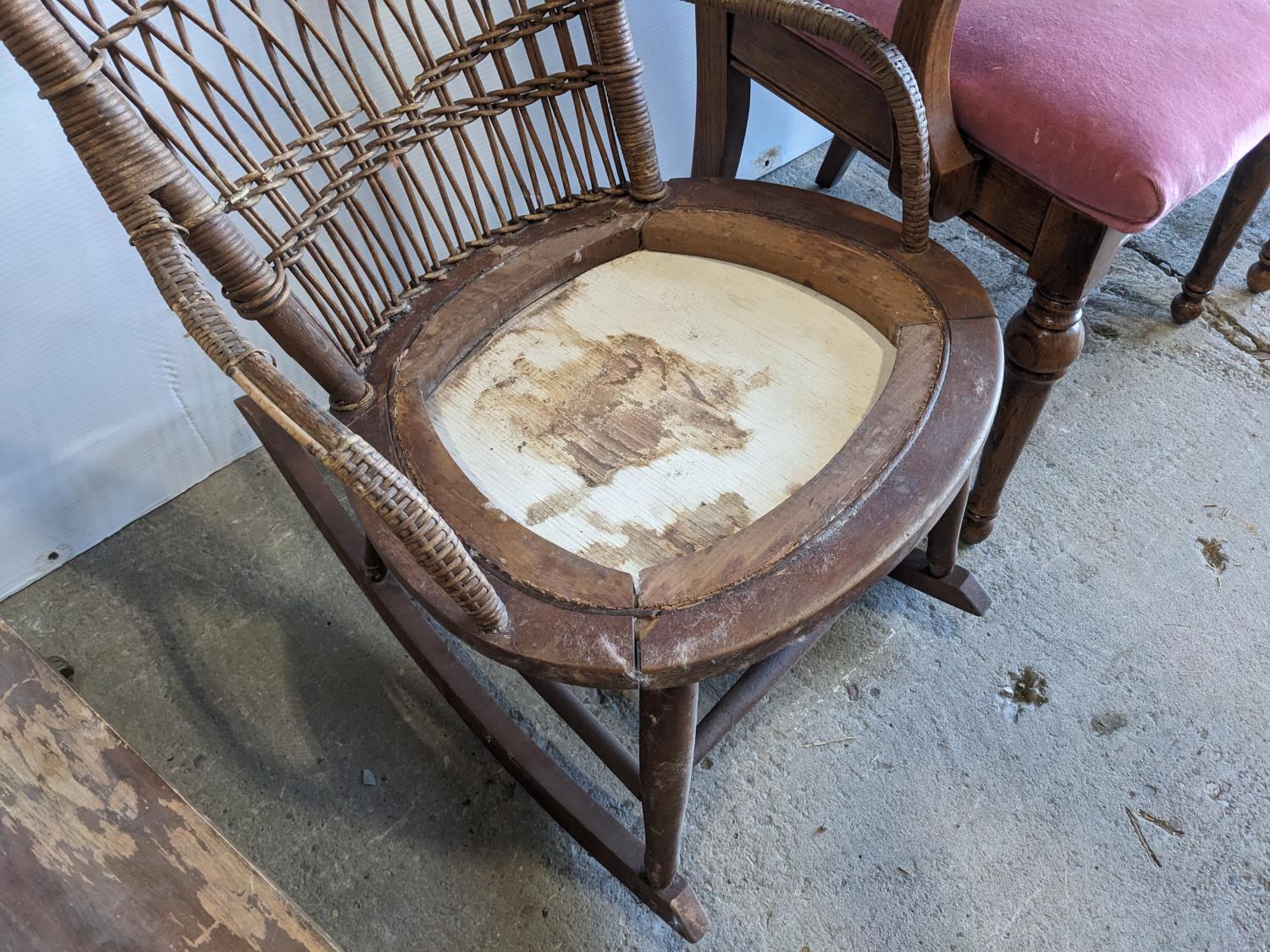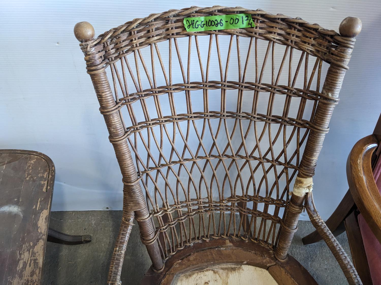 1468 Wooden Coffee Table, Antique Wicker Rocking Chair (2) Arm Chairs