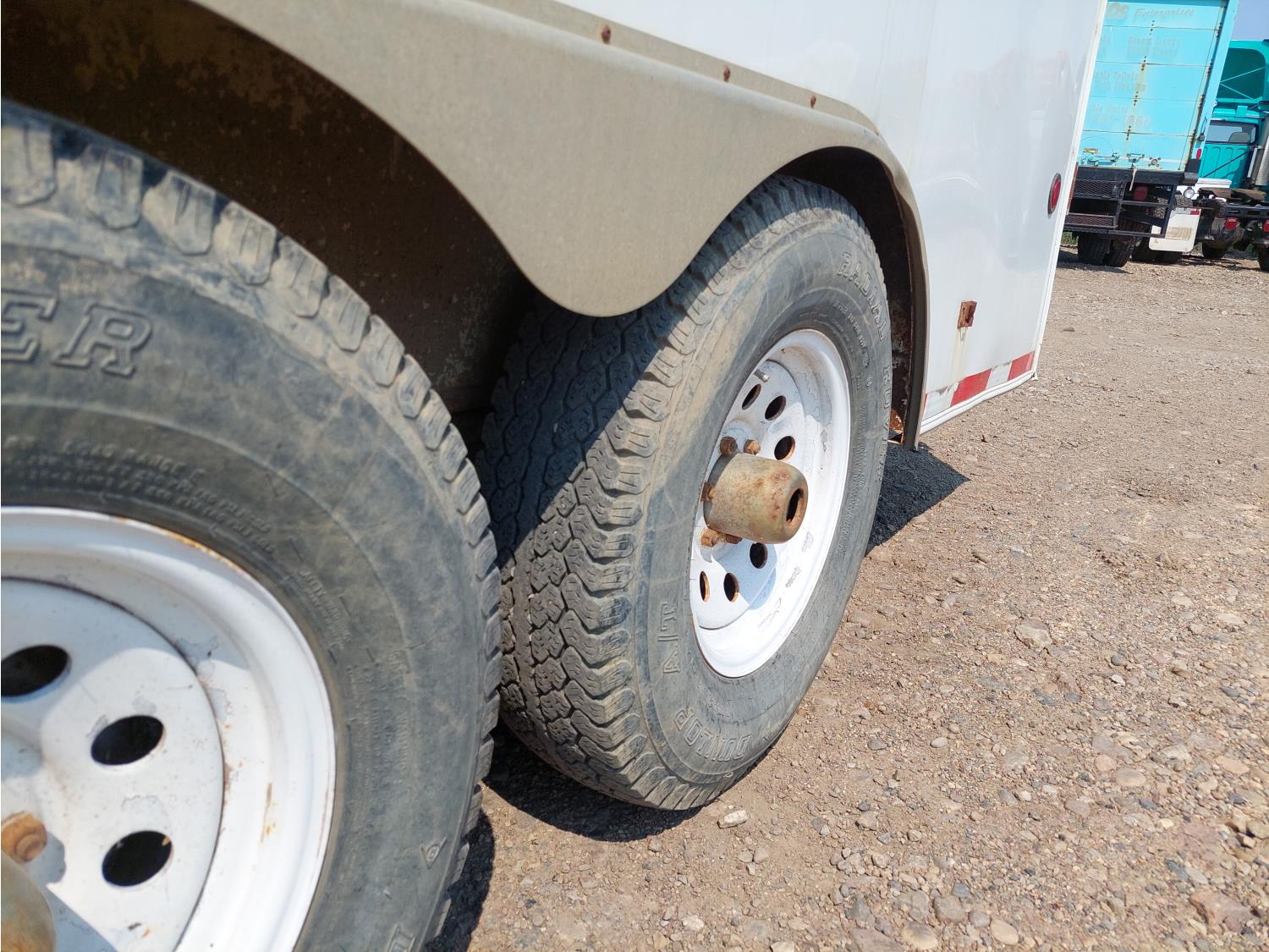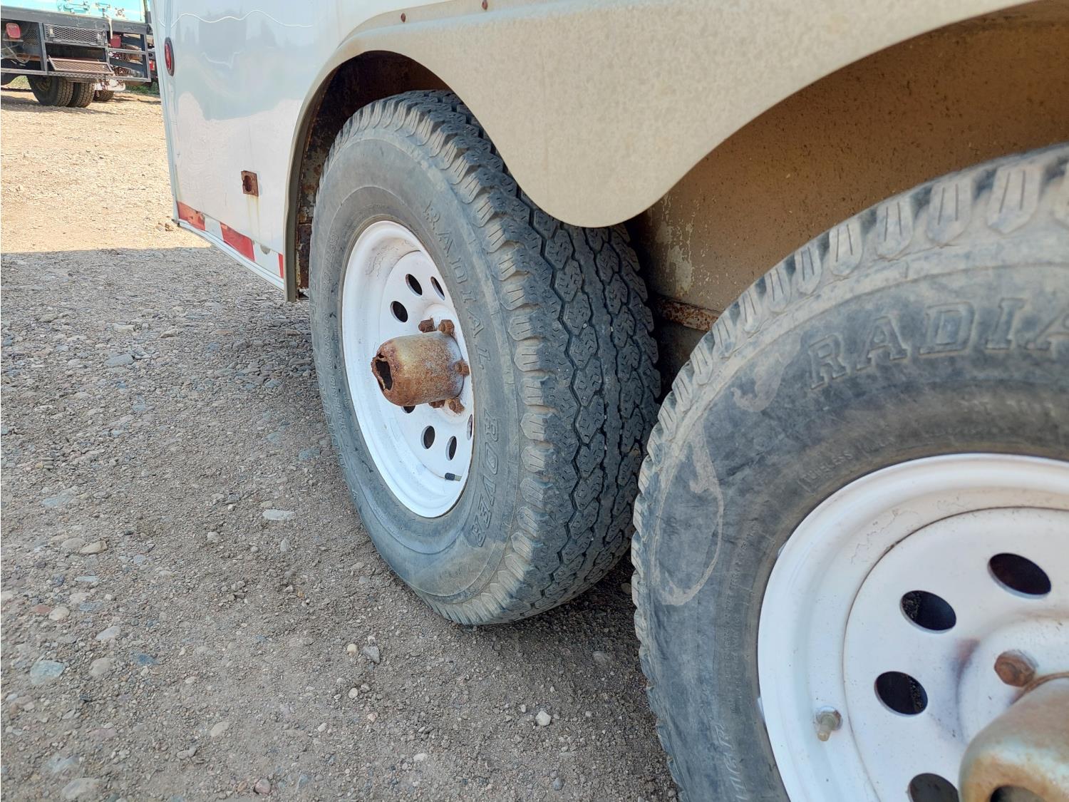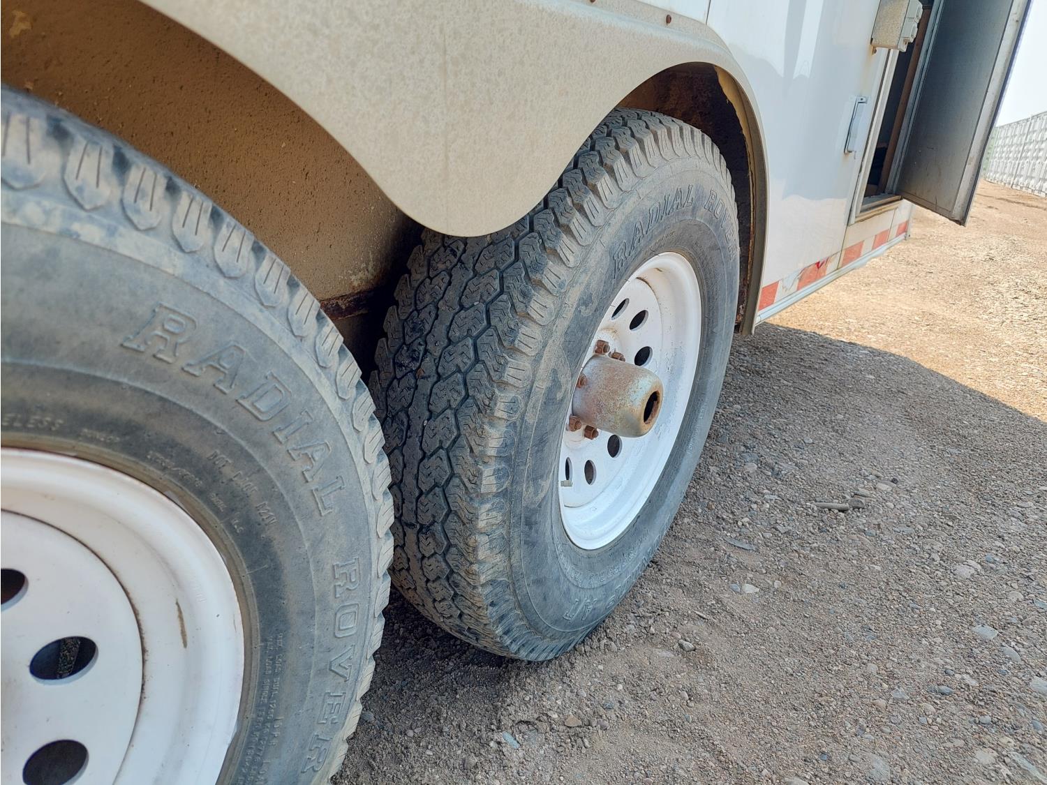 96 inch interior width, 81 inch interior height, ball hitch, side door, barn doors, electric brakes, spring suspension, 6613 lb axles, LT235-85R16 tires