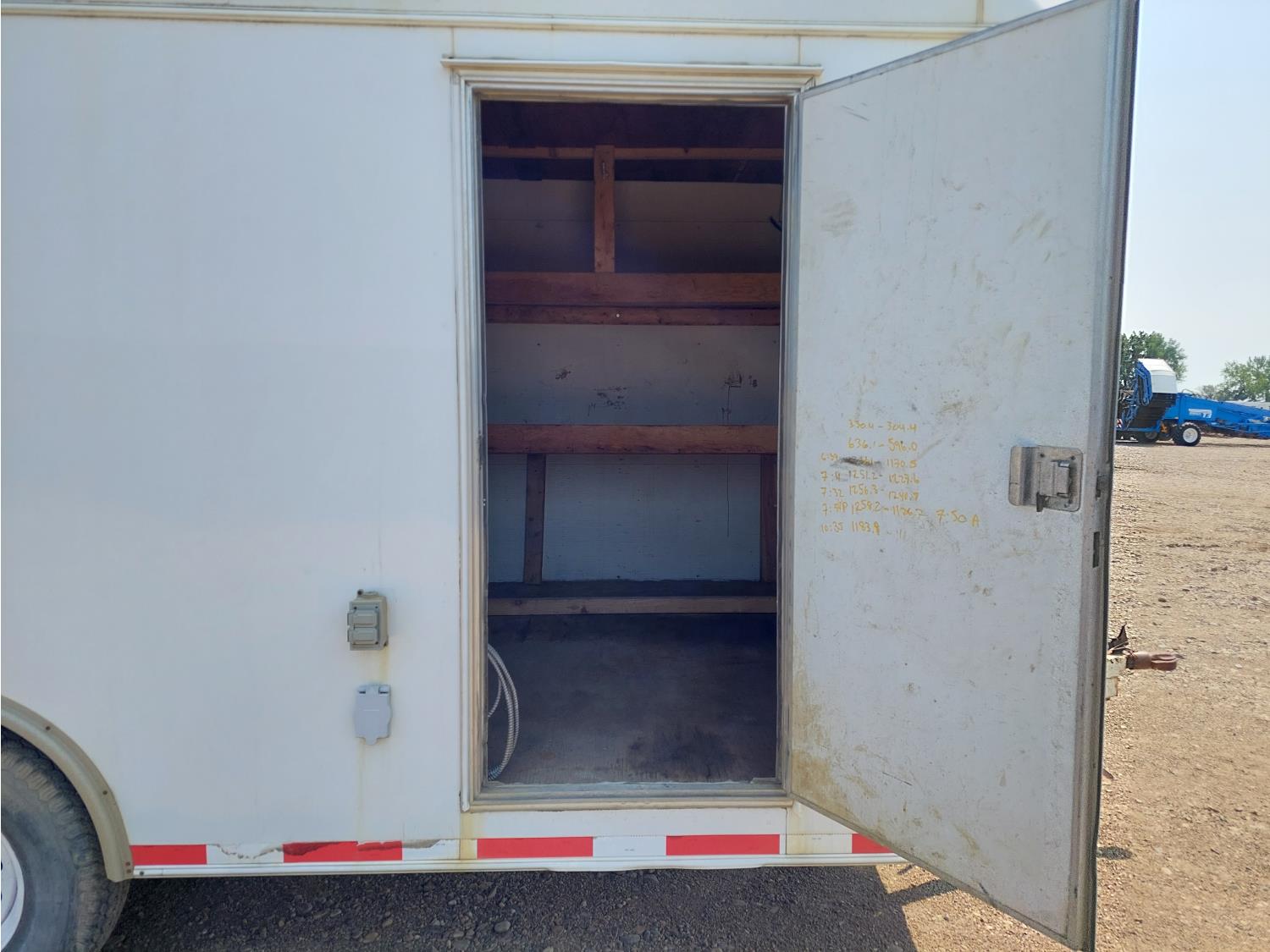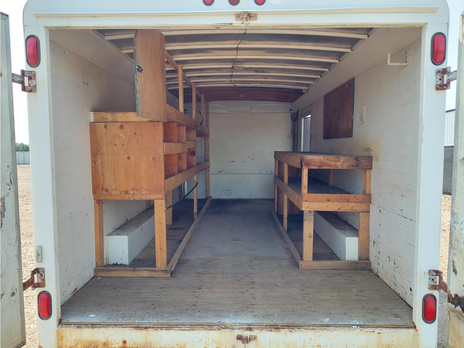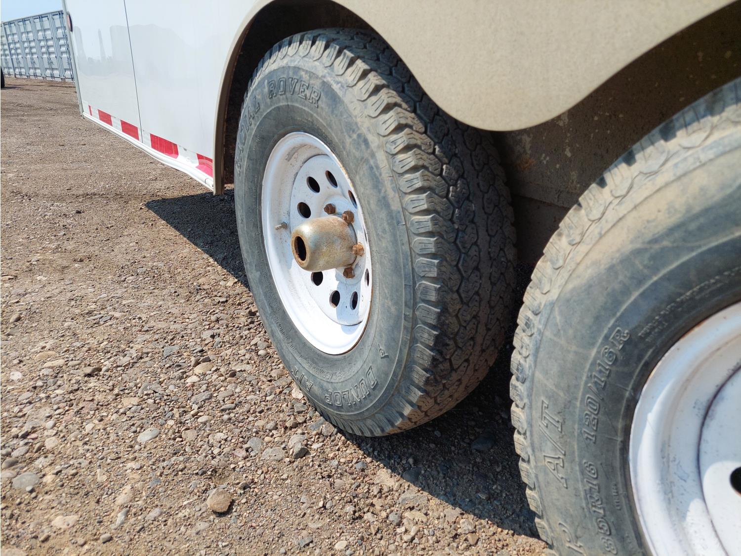 96 inch interior width, 81 inch interior height, ball hitch, side door, barn doors, electric brakes, spring suspension, 6613 lb axles, LT235-85R16 tires