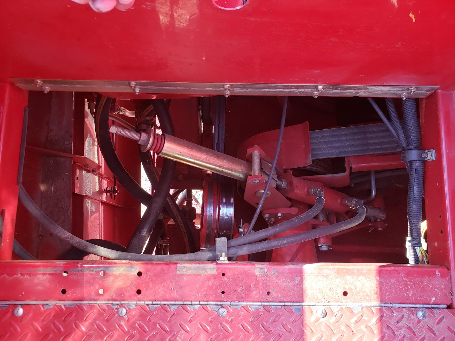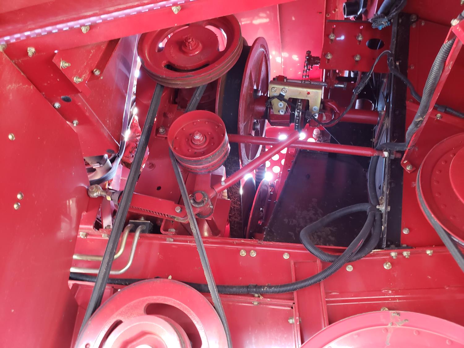 variable speed reel, auto header height, fore & aft, reverser, lateral tilt, yield & moisture, chaff spreader, chopper, grain tank extensions, A/C, buddy seat, 30.5L-32 front tires, 14.9-24 rear tires