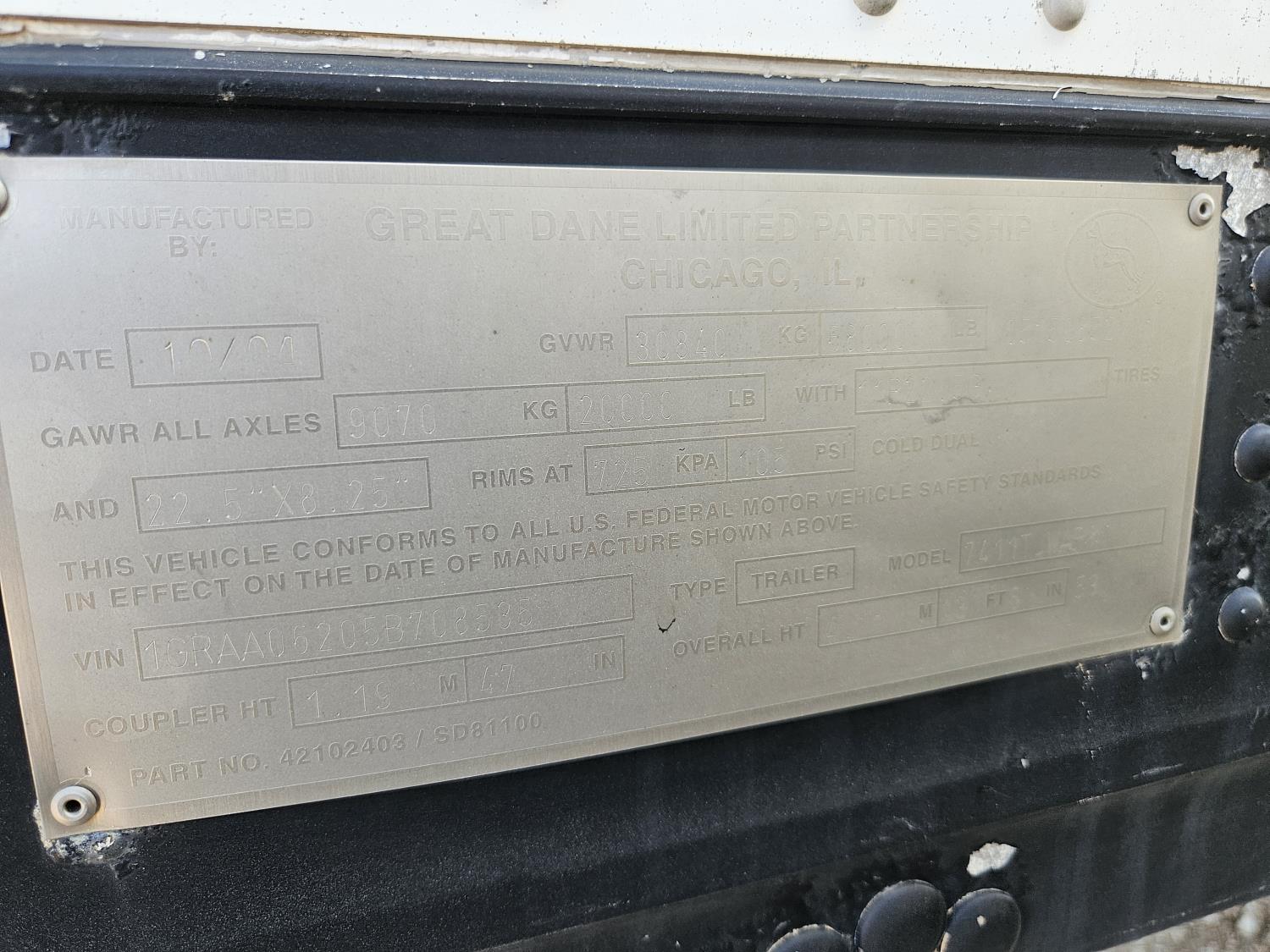 236 2005 Great Dane 53 Ft T/A Van Trailer