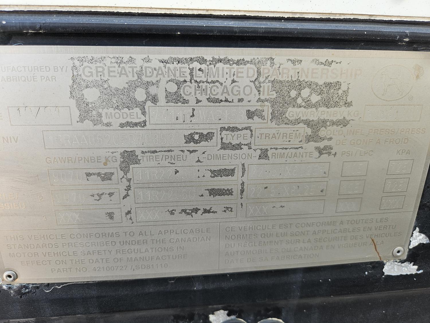 102 inch van width, 112 inch height, rear swing doors, air brakes, air ride suspension, 30,840 kg axles, 10 ft sliding axles, 11R22.5 tires