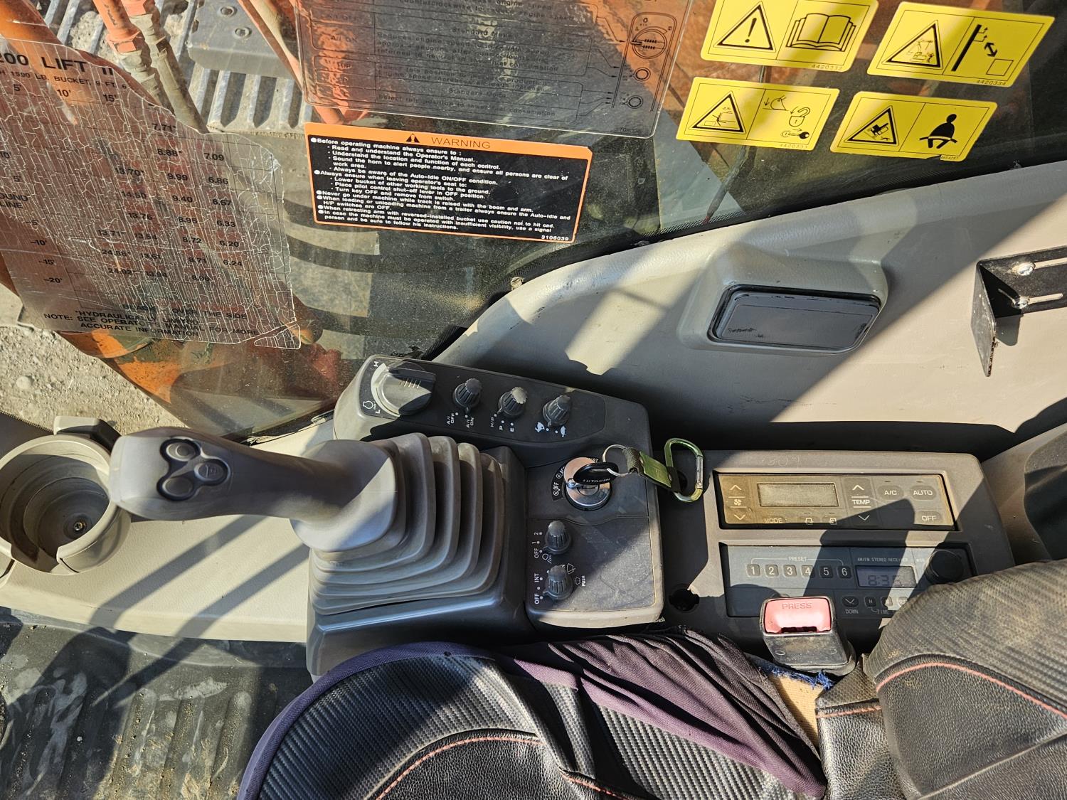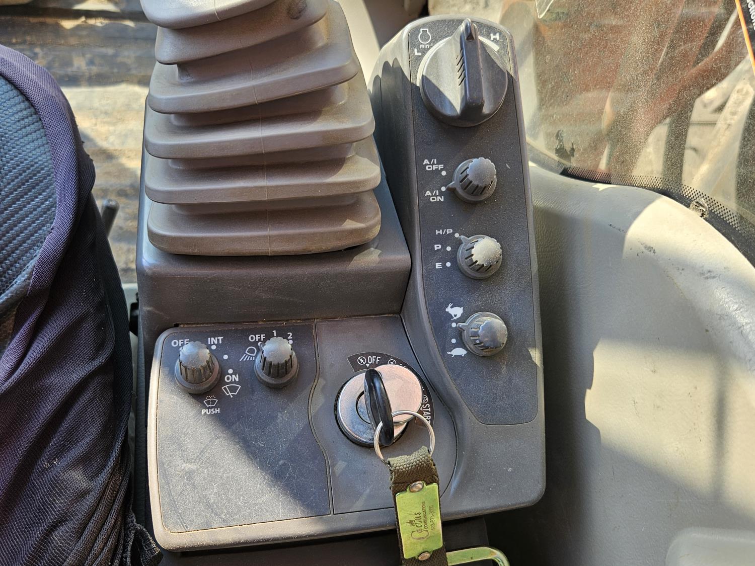 Enclosed cab, A/C, rear view cameras, 35 inch dig bucket, manual coupler, 2 auxiliary hydraulics, 12 Ft 9 inch stick, 31.5 inch track pads, triple grousers