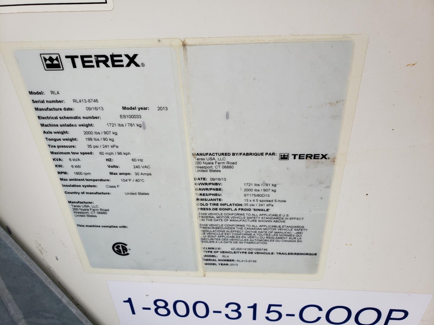272 2013 Terex RL4 6 Kw Light Tower
