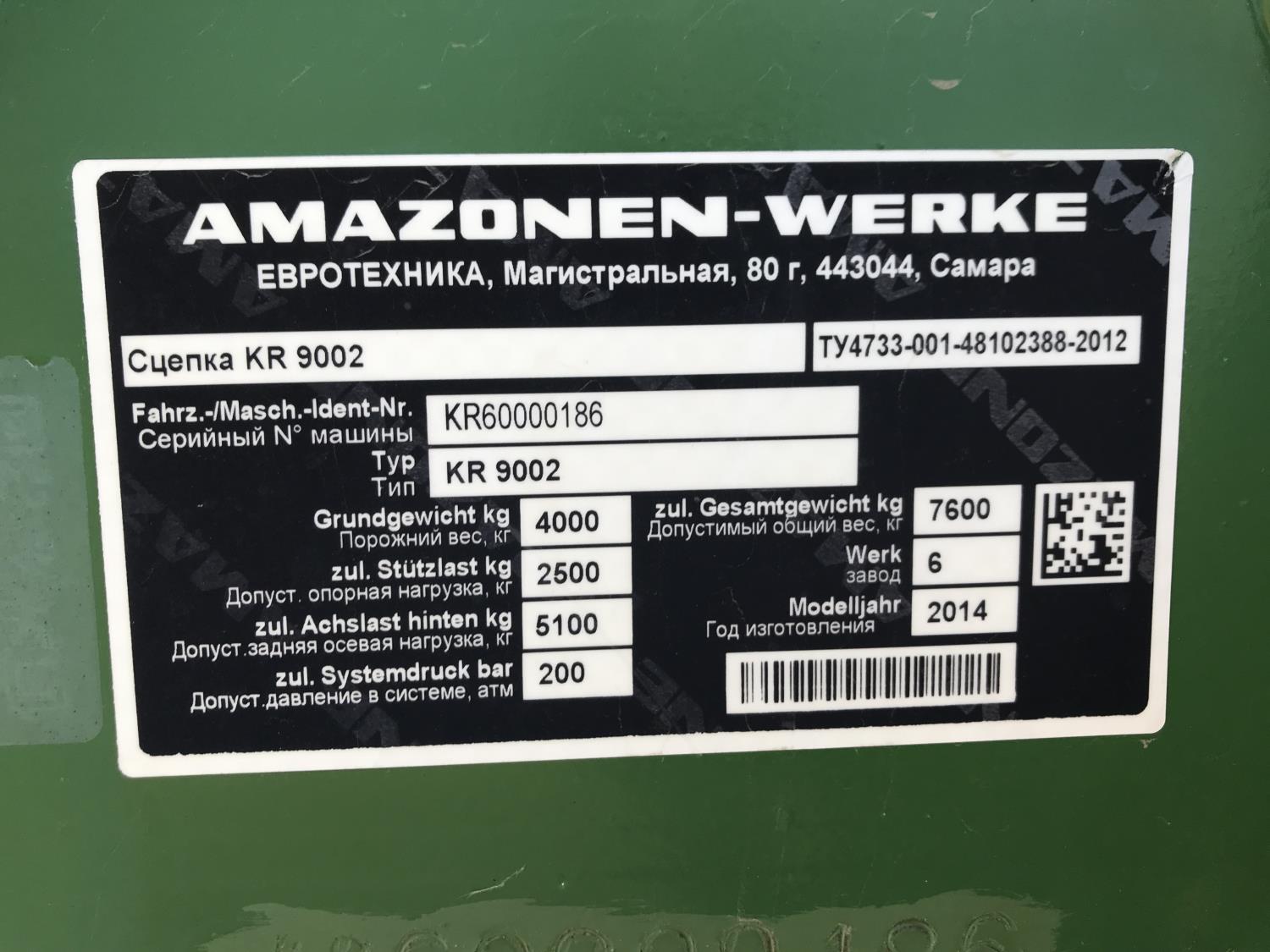 489 2014 Amazone KR 9002 Trailered Carrier System
