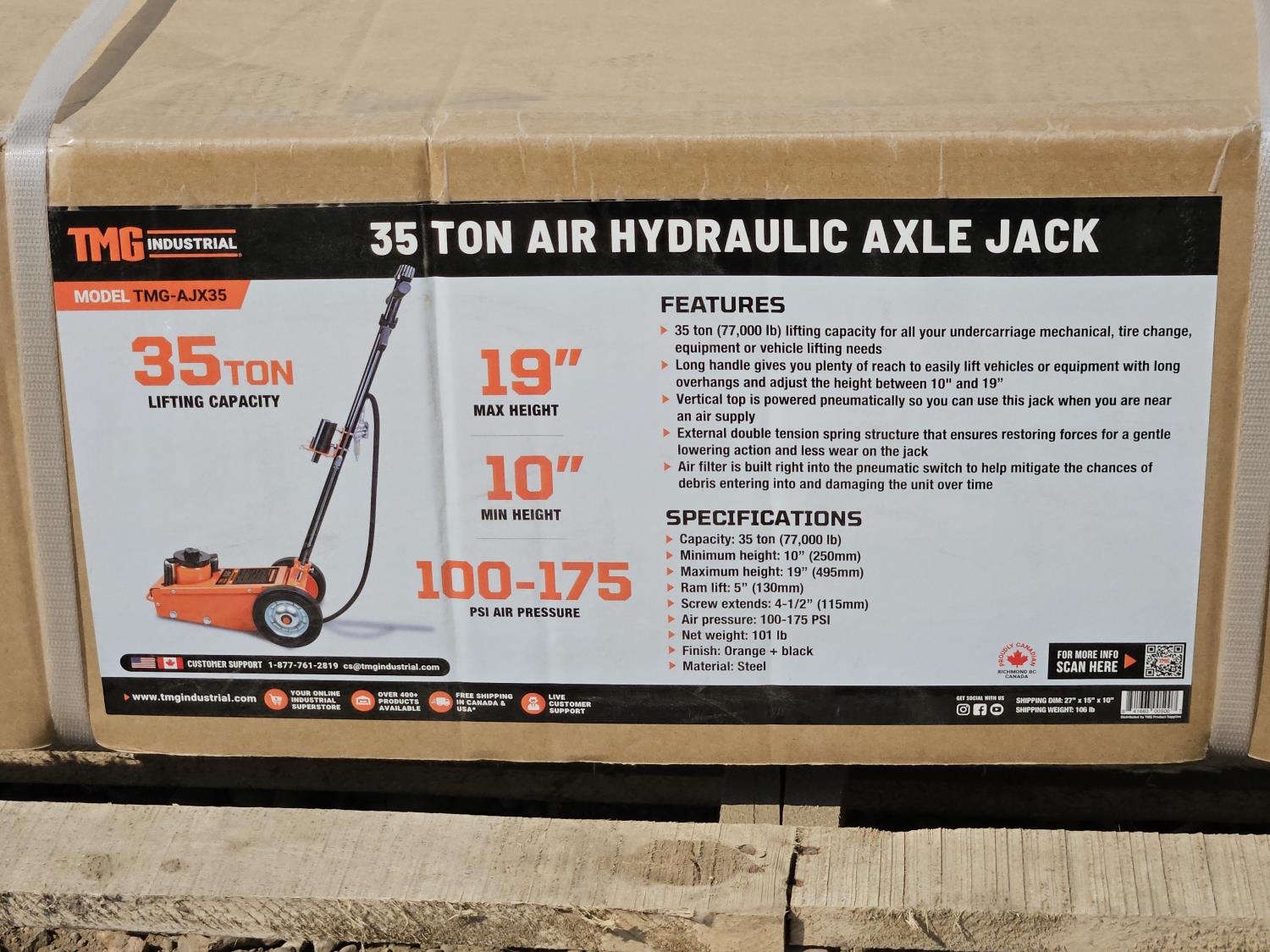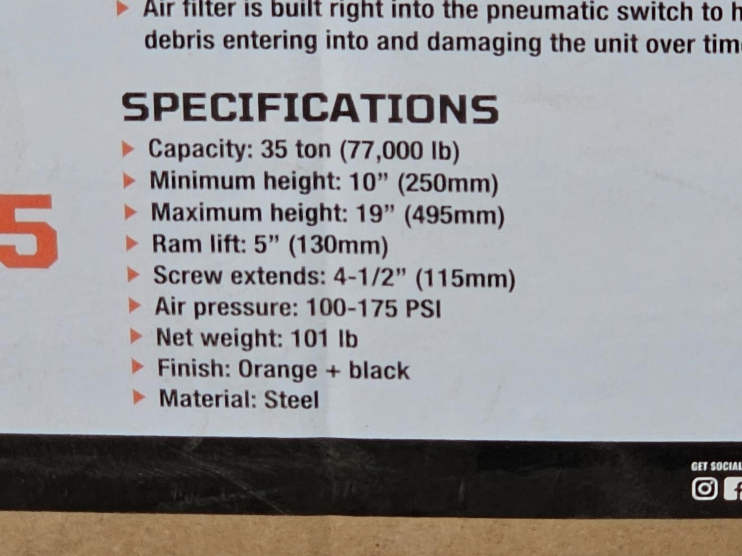 20 TMG Industrial TMG-AJX35 35 Ton Air Hydraulic Axle Jack (Unused)