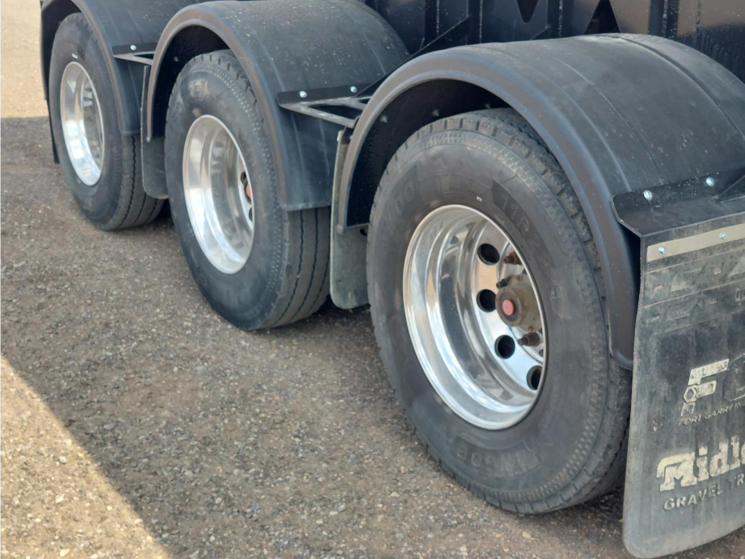 8 ft 4 inch box width, 54 inch side wall height, electric roll tarp, air brakes, air ride suspension, 22,000 lb axles, 11R22.5 tires