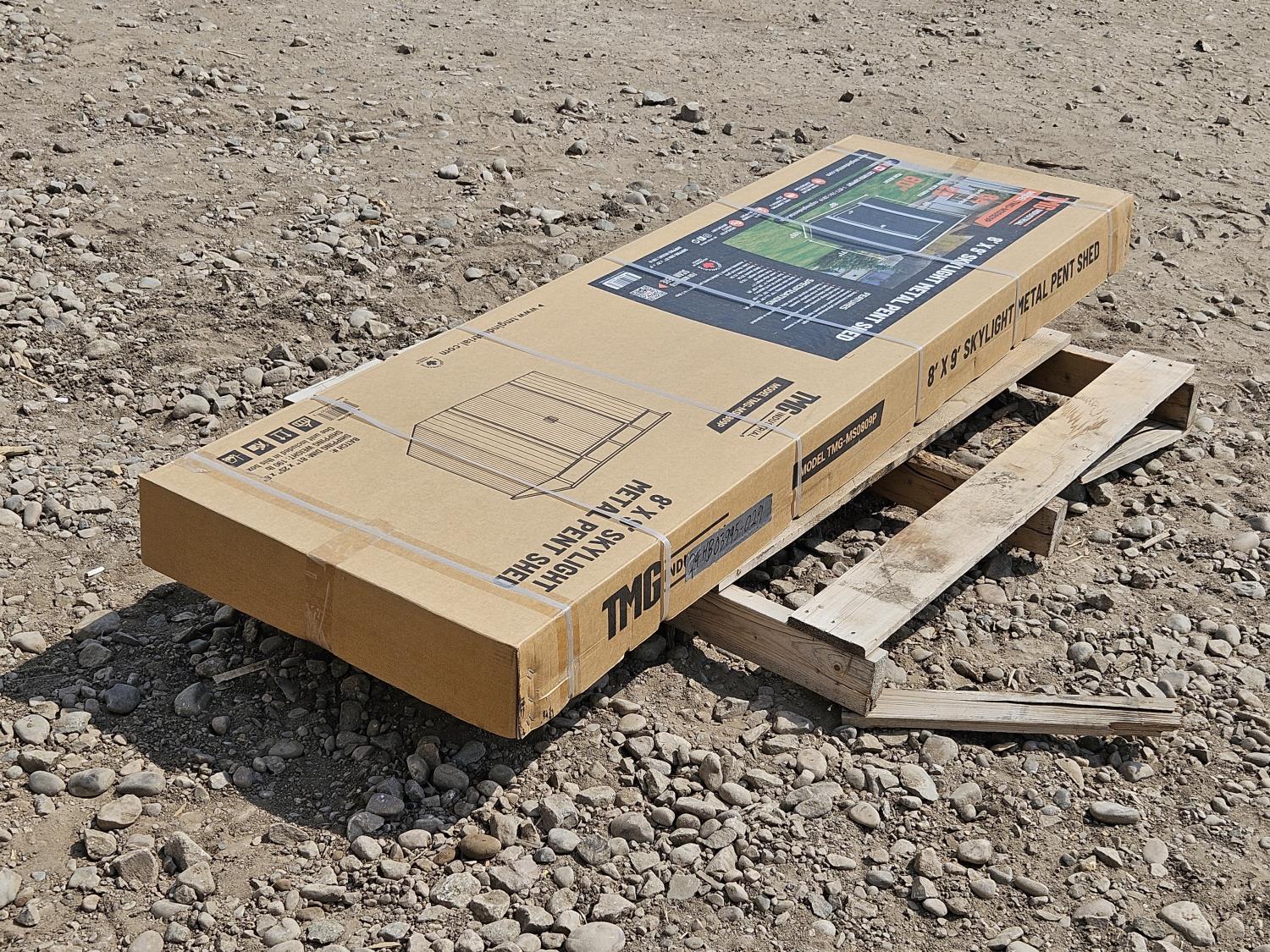 57 TMG Industrial MS0809P 8 Ft X 9 Ft Galvanized Metal Pent Shed W/Skylight (Unused)