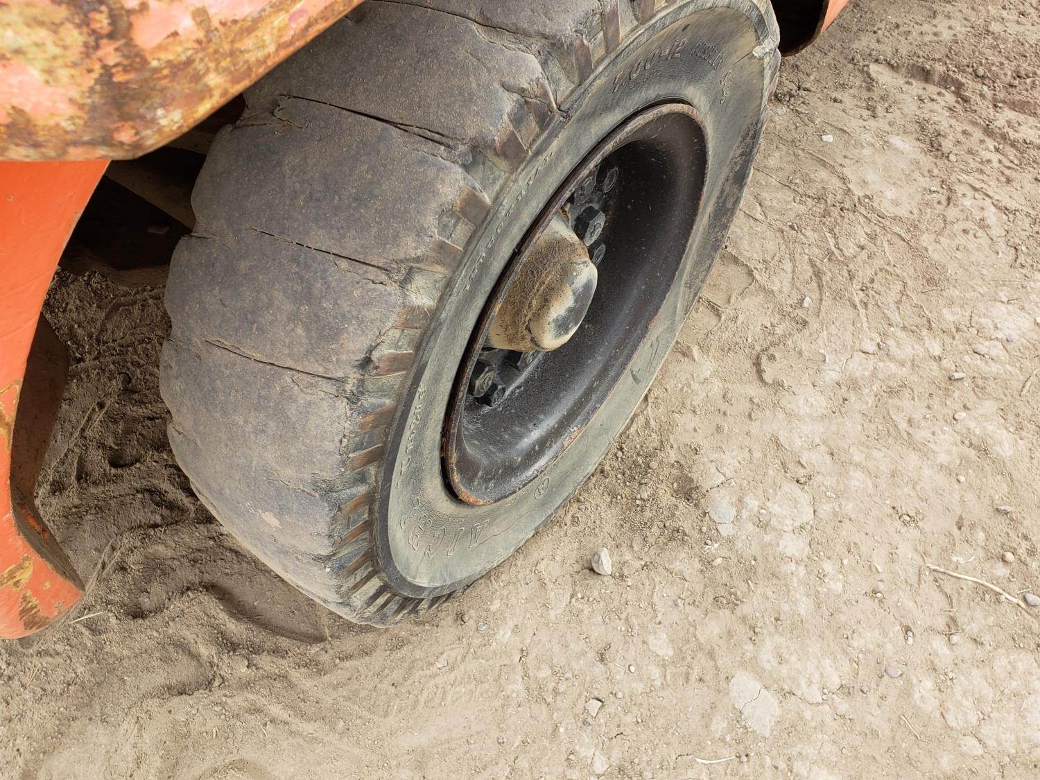 6 cylinder gas engine, 136 inch lift height, 2 stage lift, 4 ft forks, 28x12.5-15 front tires, 7.00-12 rear tires