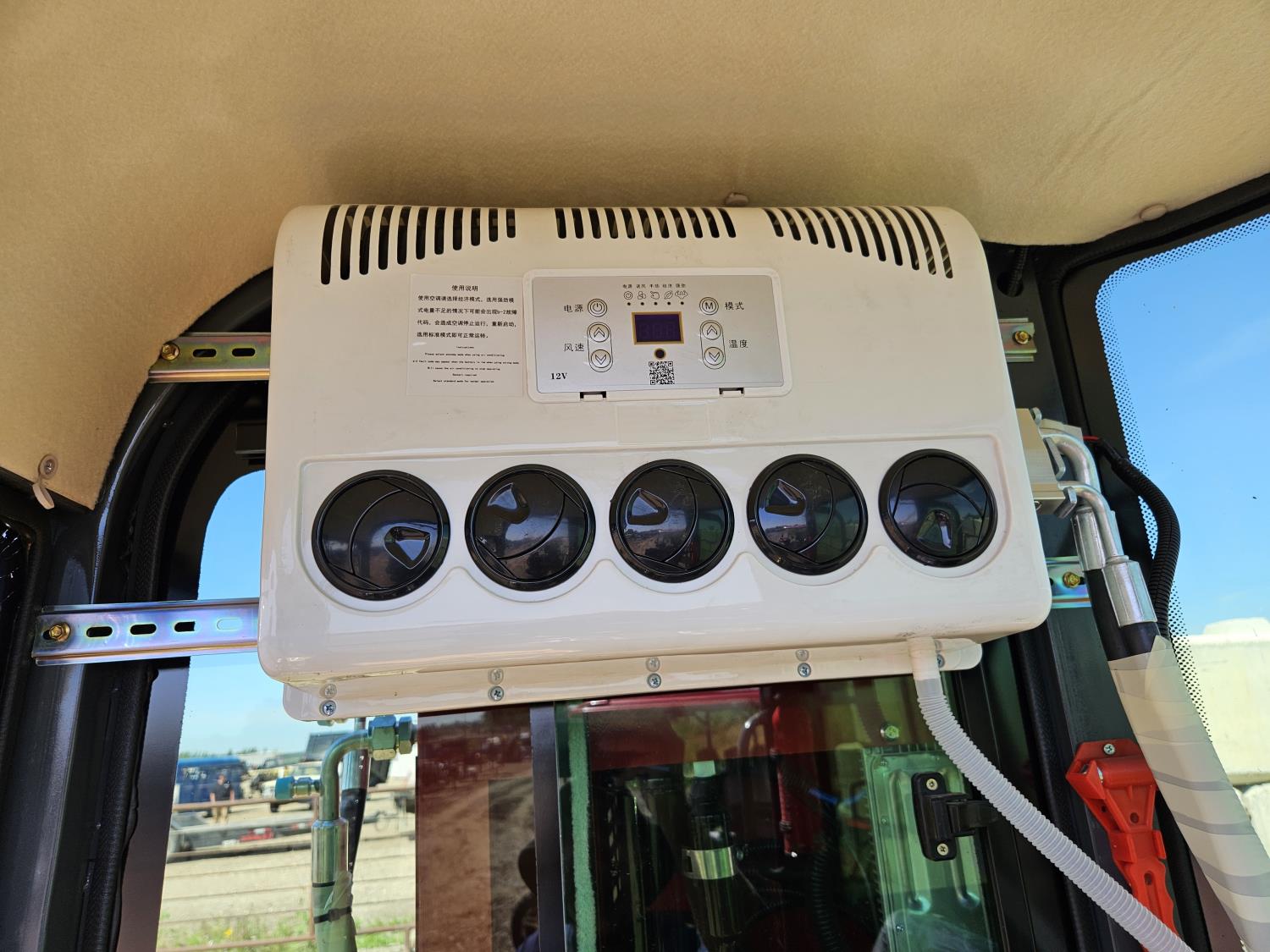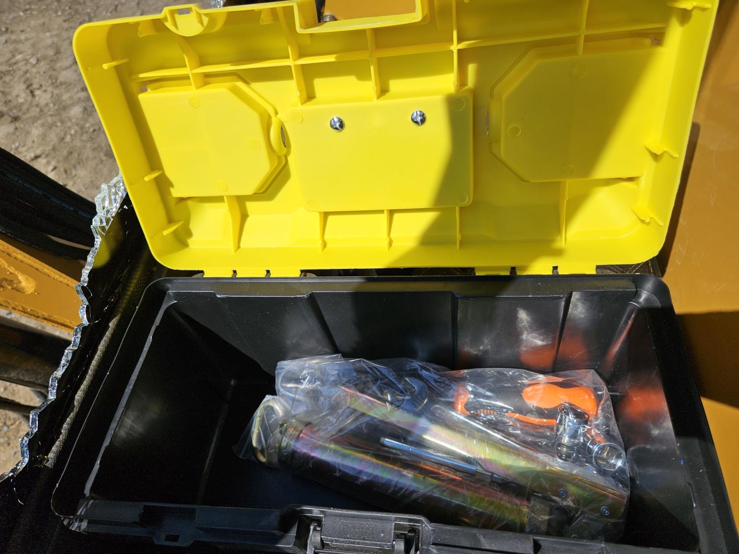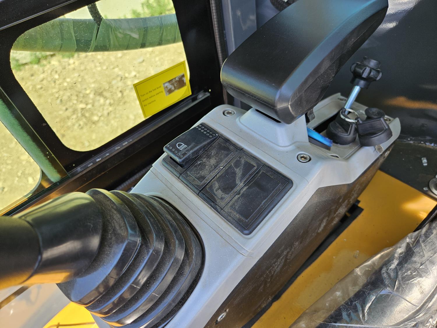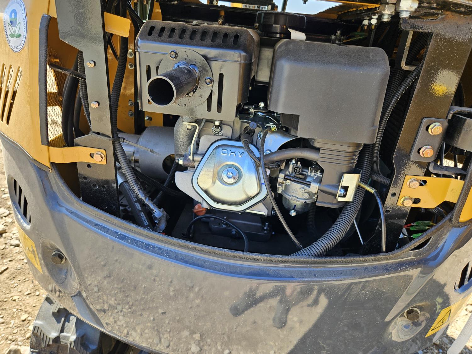 Enclosed cab, A/C, gas engine, dig bucket, manual coupler, hydraulic thumb, 7 inch rubber tracks