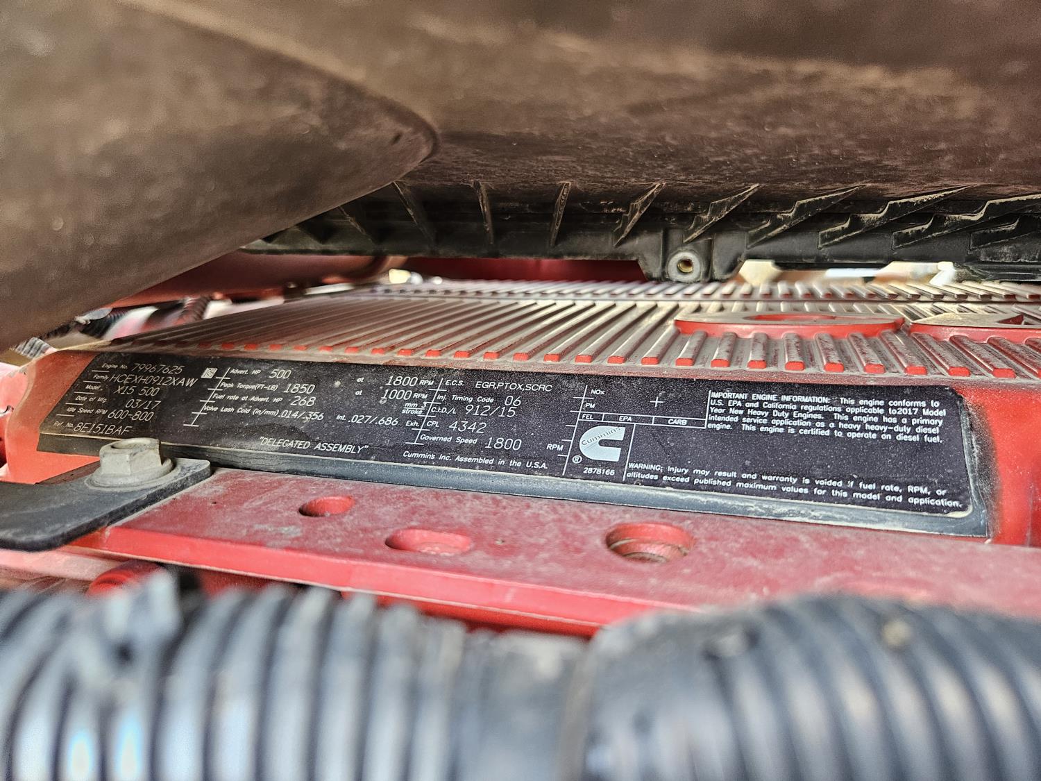 Cummins X15 500 HP engine, Webasto engine heater, Eaton Fuller 18 speed manual transmission, high rise 72 inch sleeper, fridge, A/C, cruise control, air ride driver seat, air ride suspension, 12,350 lb front axle, 40,000 lb rear axles, full lockers, 228 inch WB, 11R22.5 tires