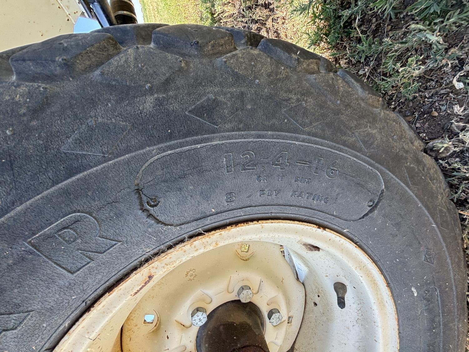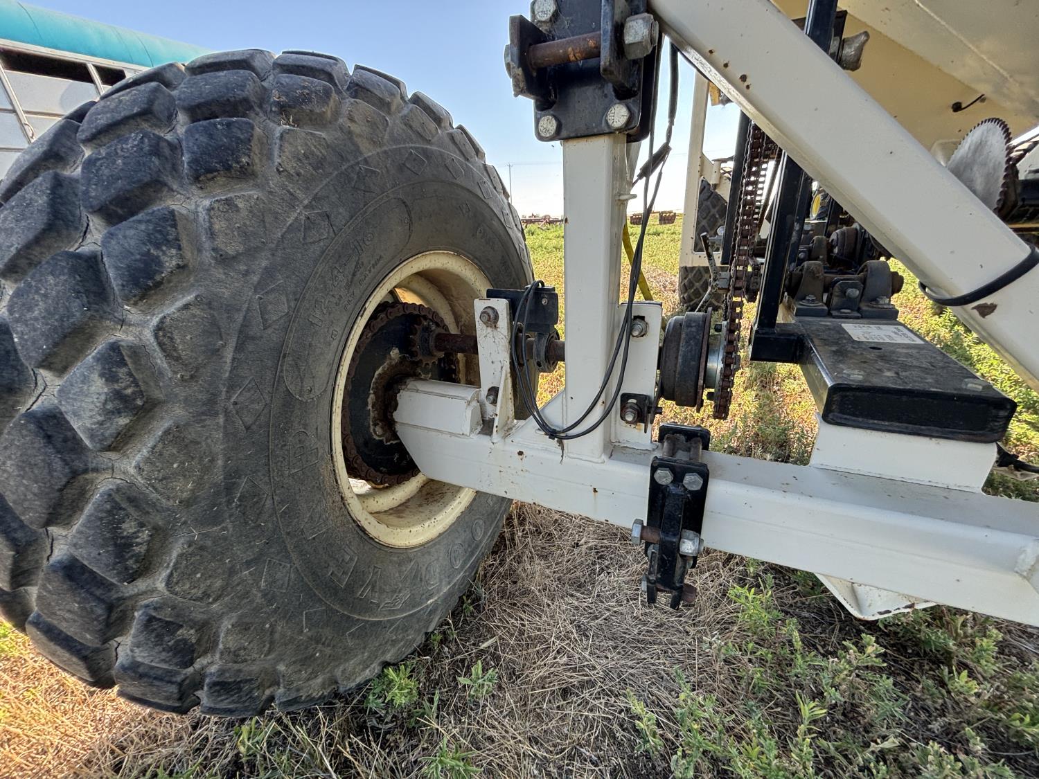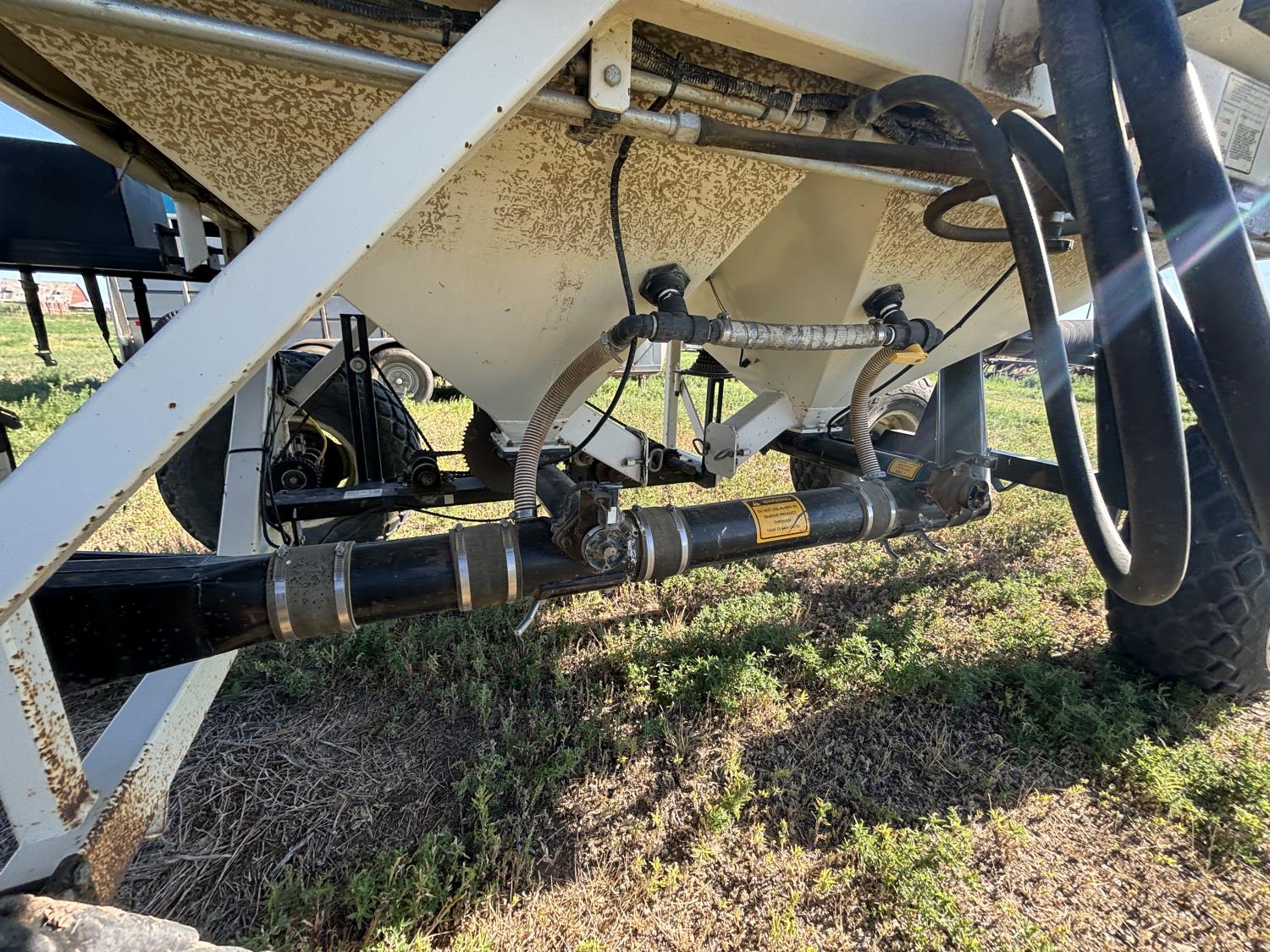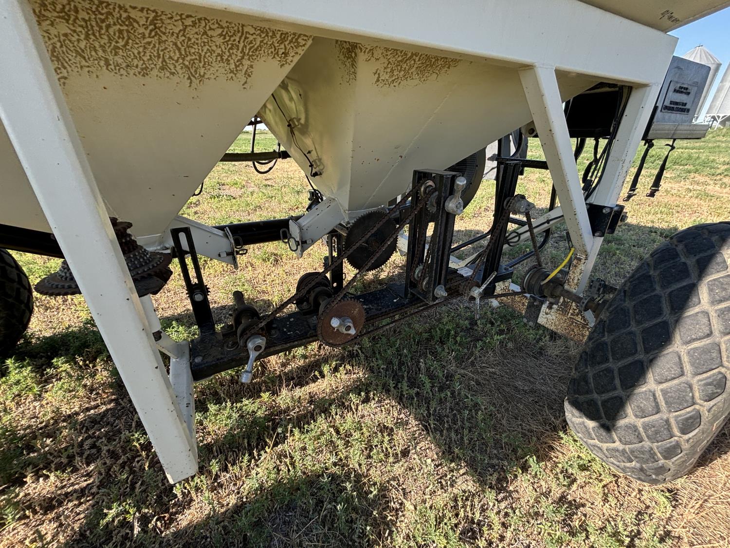 2 compartments, ground driven metering, single hydraulic driven fan, 6 inch loading auger, 12.4-6 tires