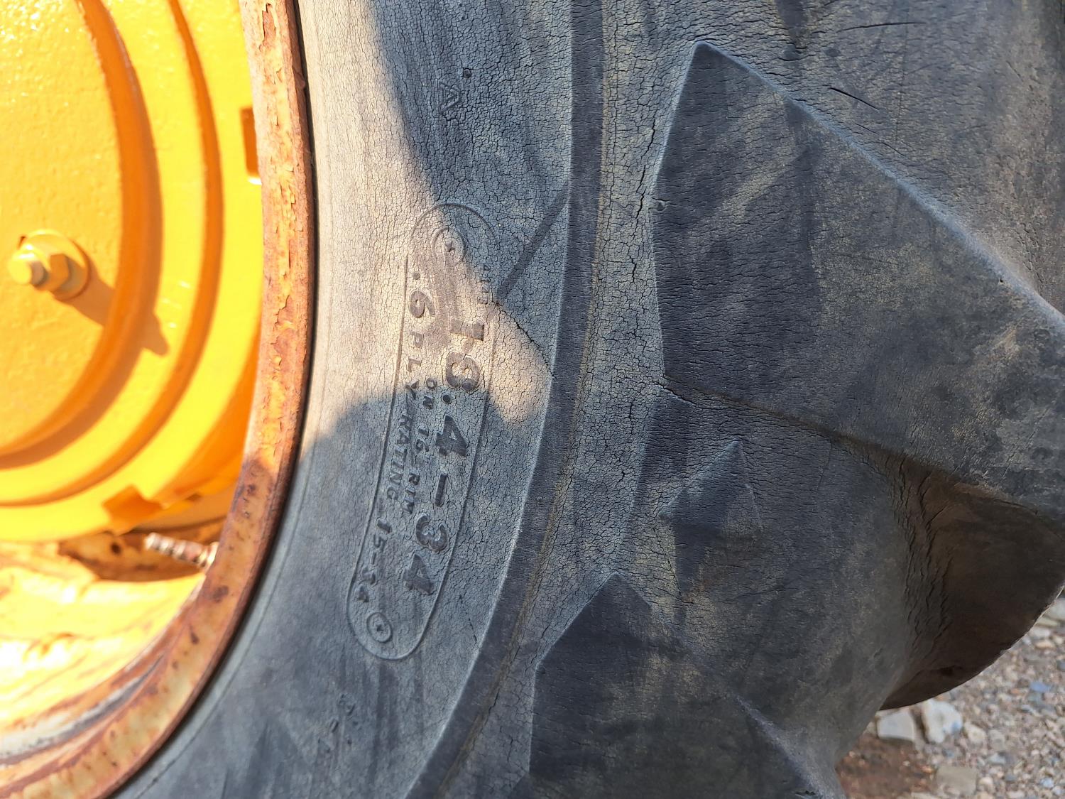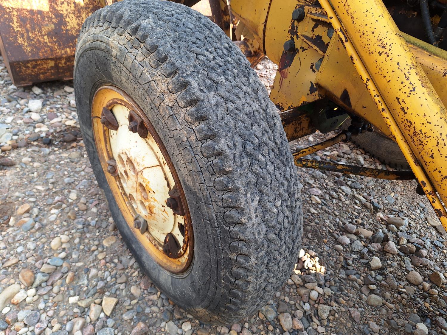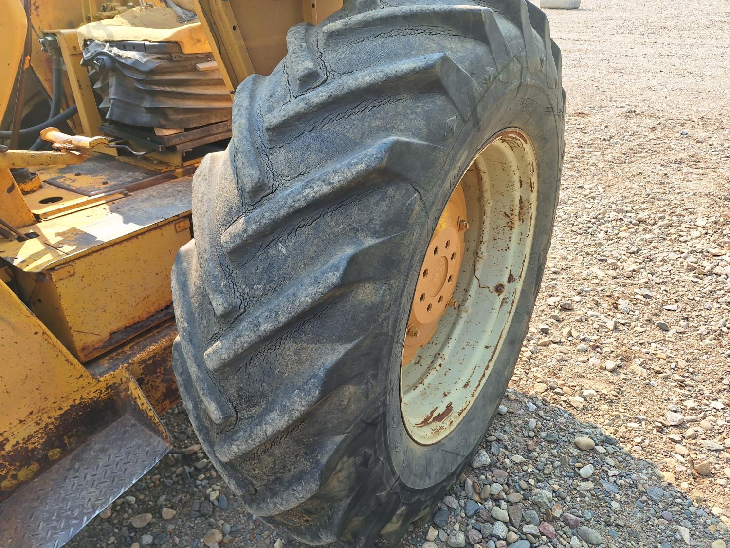 Loader, 84 inch bucket, 6 cylinder 78 HP, diesel engine, 6 speed manual transmission, open station platform, 3 point hitch, 1 rear hydraulic outlets, 8.25-20 front tires, 18.4-34 rear tires